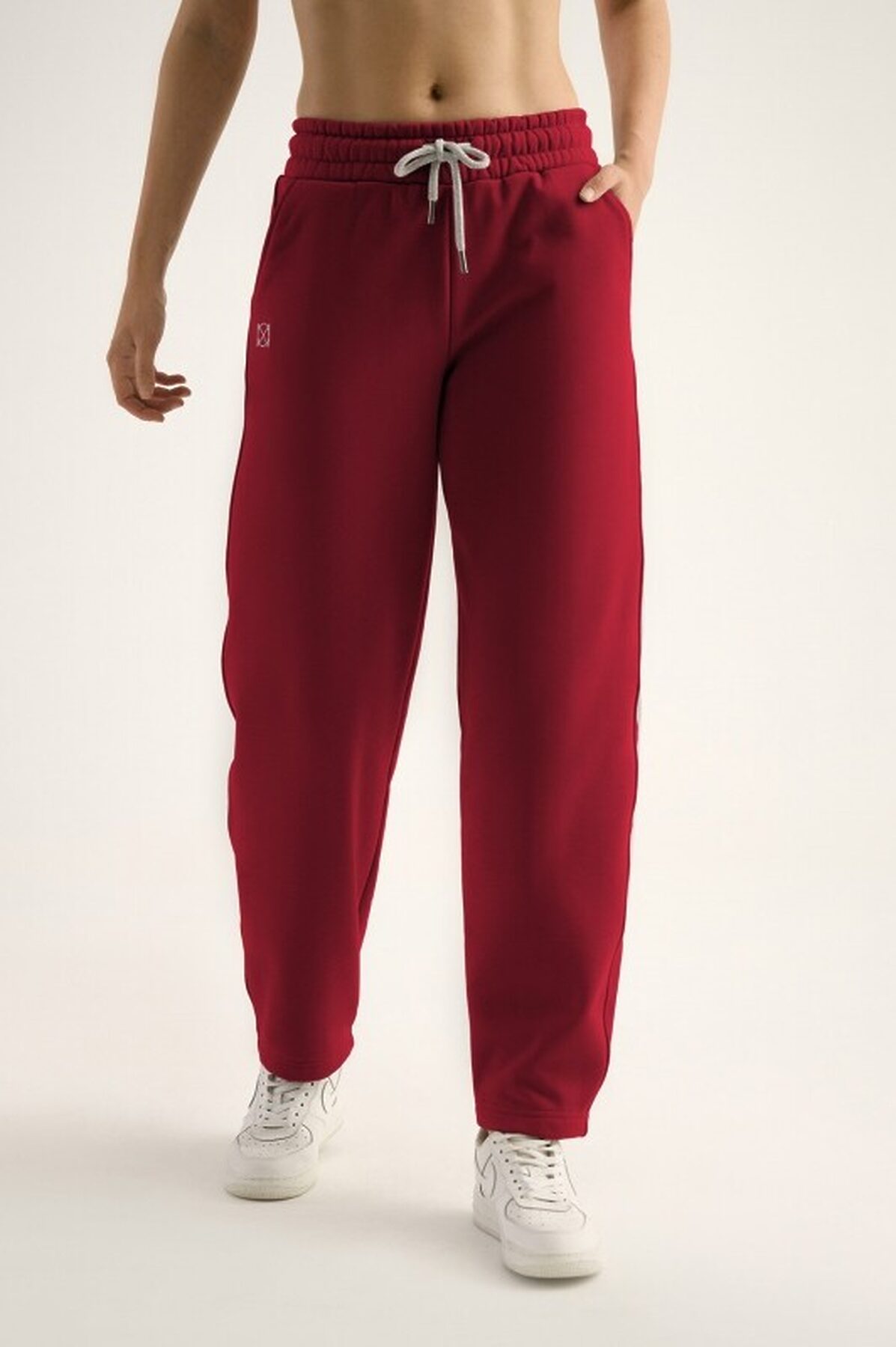 Брюки-бананы из интерсофта свободного кроя с боковыми карманами, зауженные к книзу. Широкий эластичный пояс со шнуром.