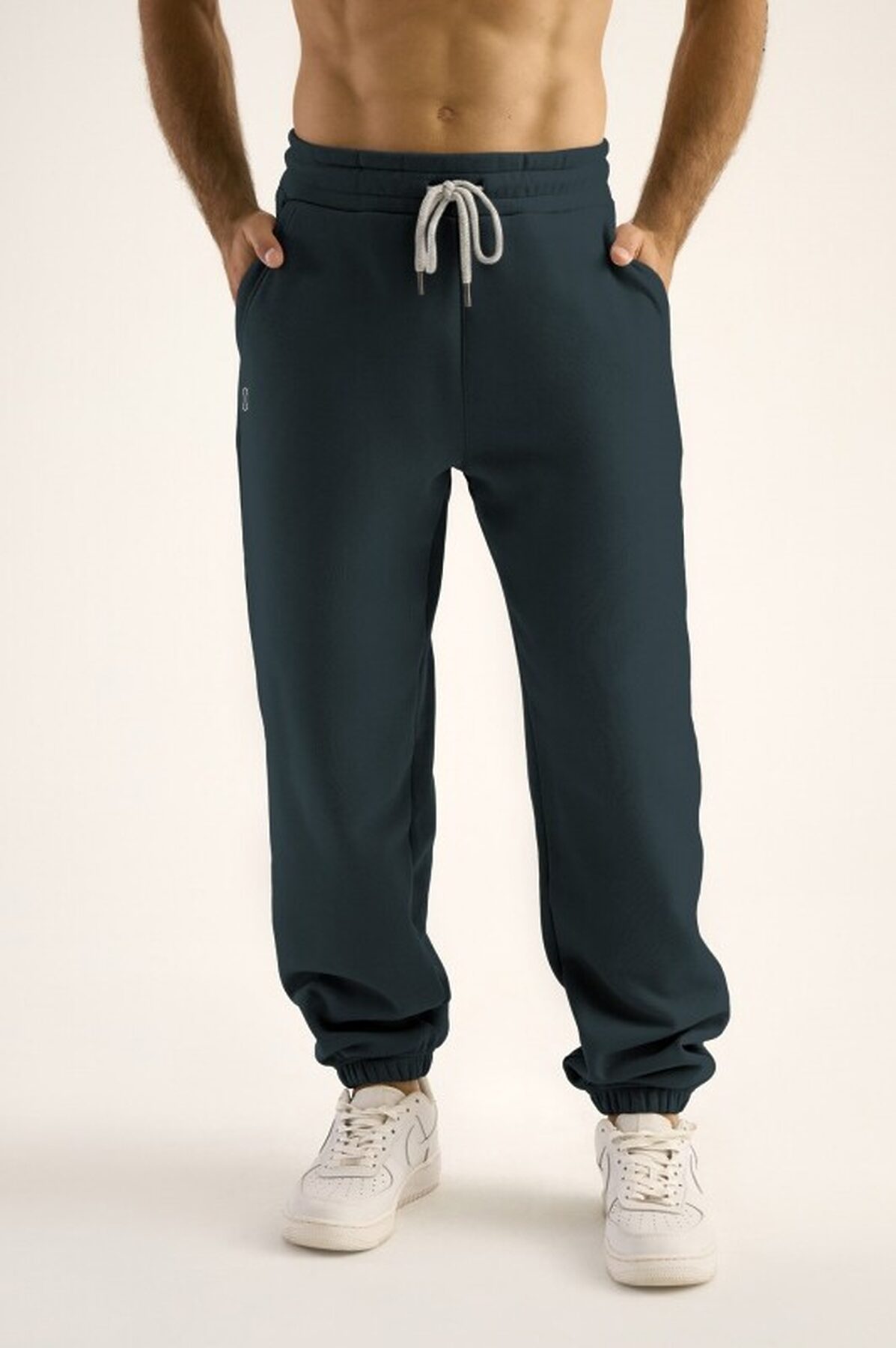 Мужские брюки, джоггеры с резинкой по низу брюк. Пояс из основной ткани, внутри резинка,со шнурком. По поясу отстрочка, петли. Боковые карманы, боковые швы отстрочены.