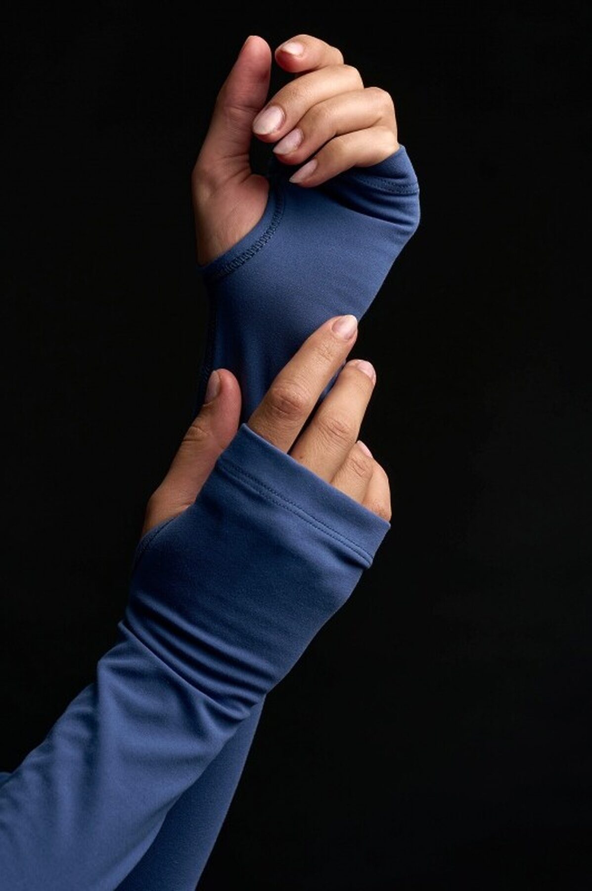 Рашгард спортивный с рукавами -реглан удлиненными и отверстием на большом пальце. На полочке и спинке рельефные швы. Полочка отрезная под грудью.
