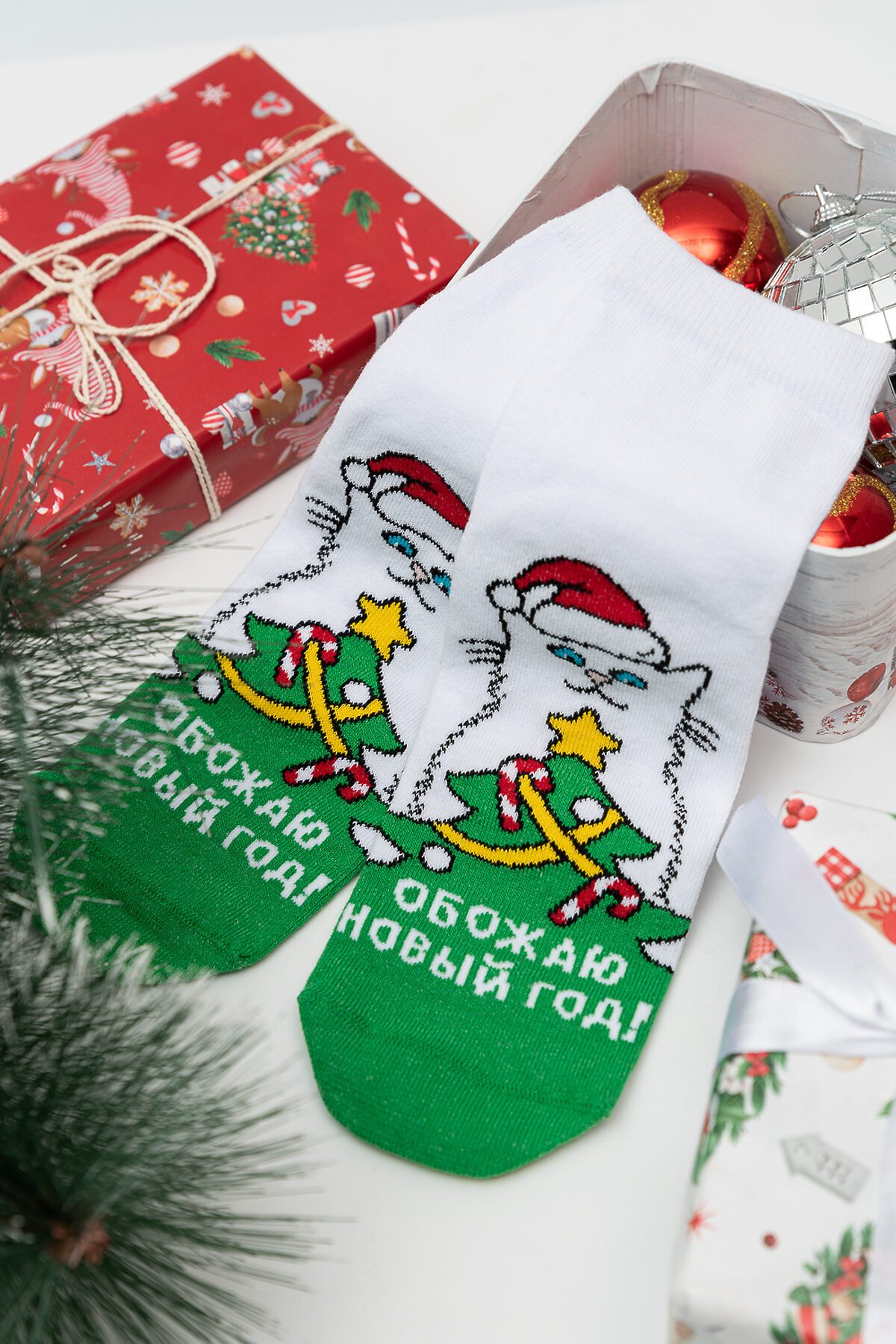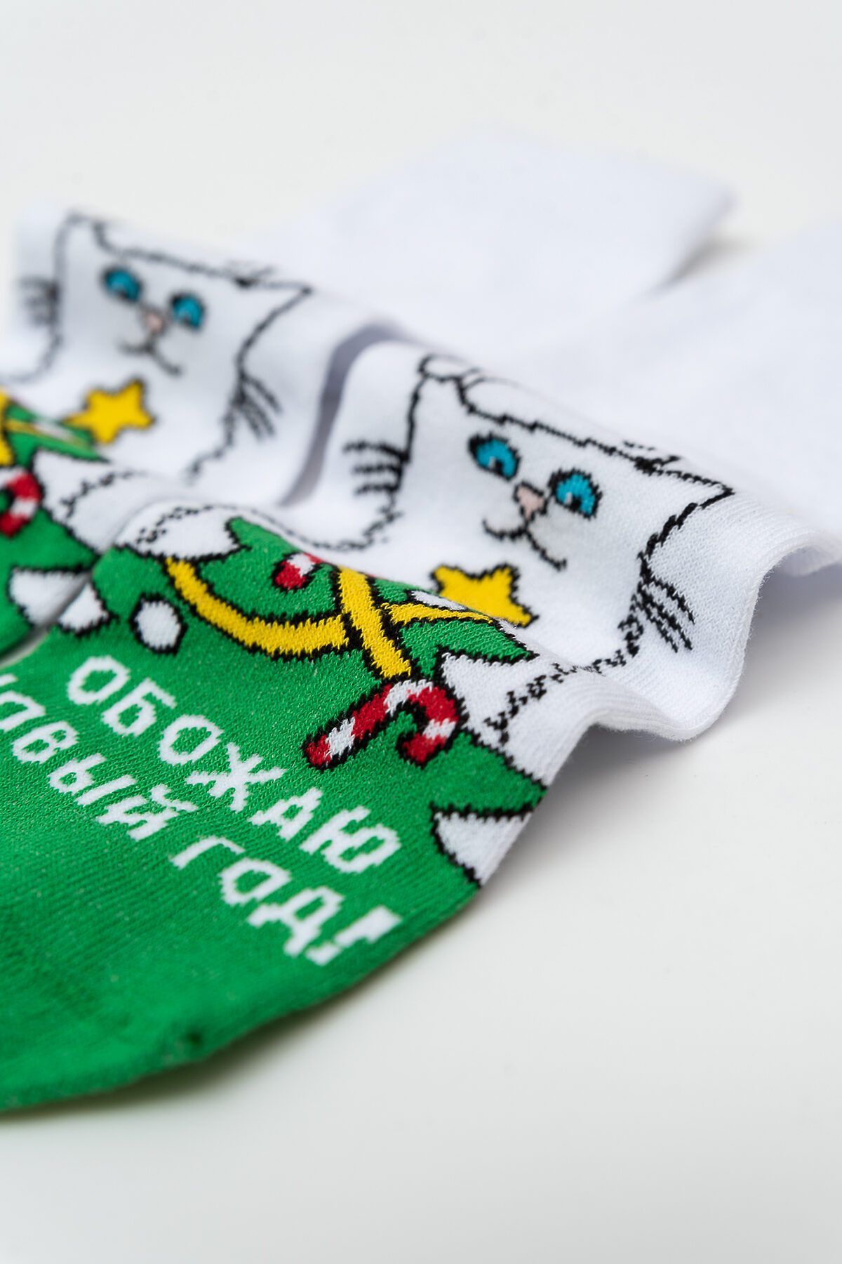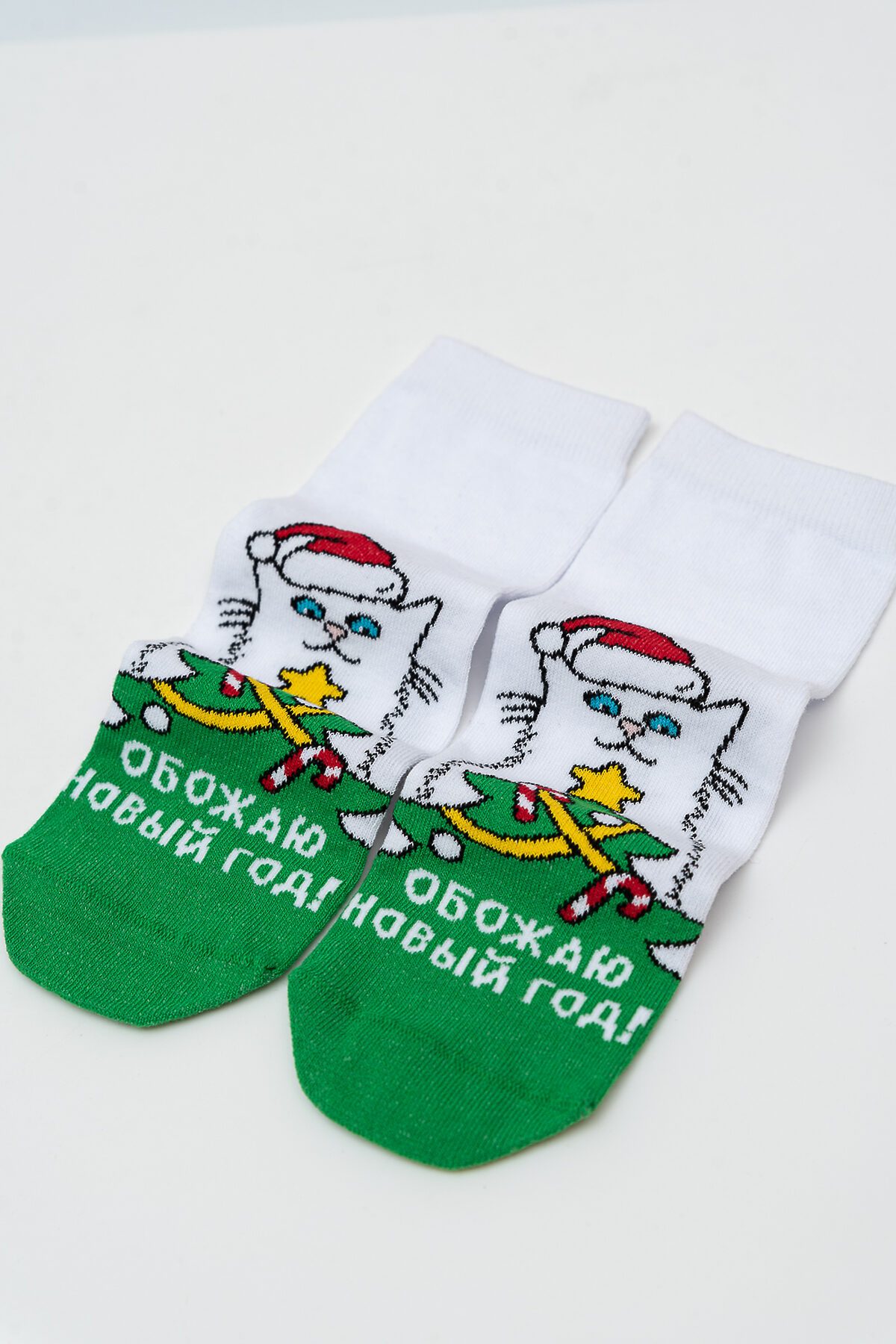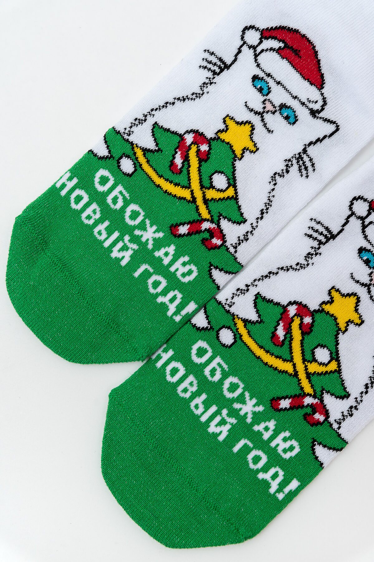 -Новогодние женские носки с изображением новогодней елки и кота. Отличный подарок на праздник!