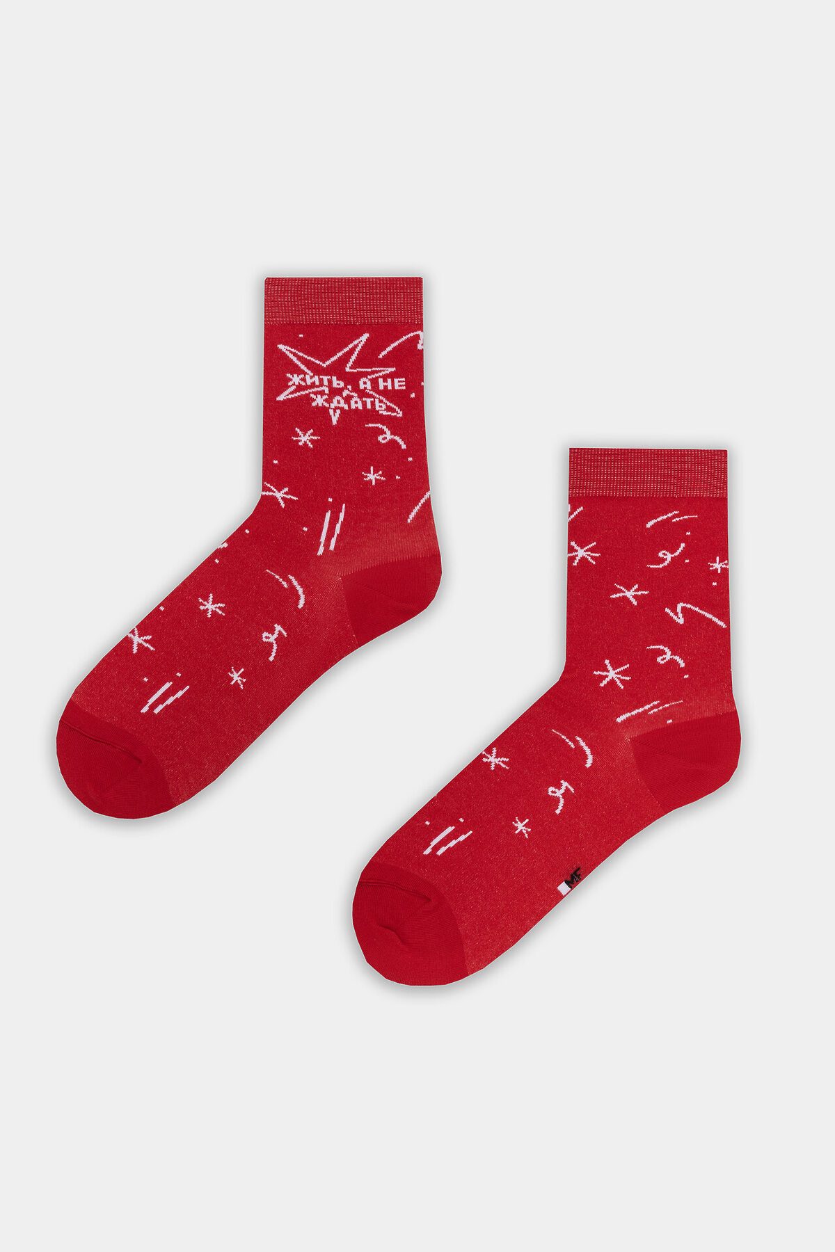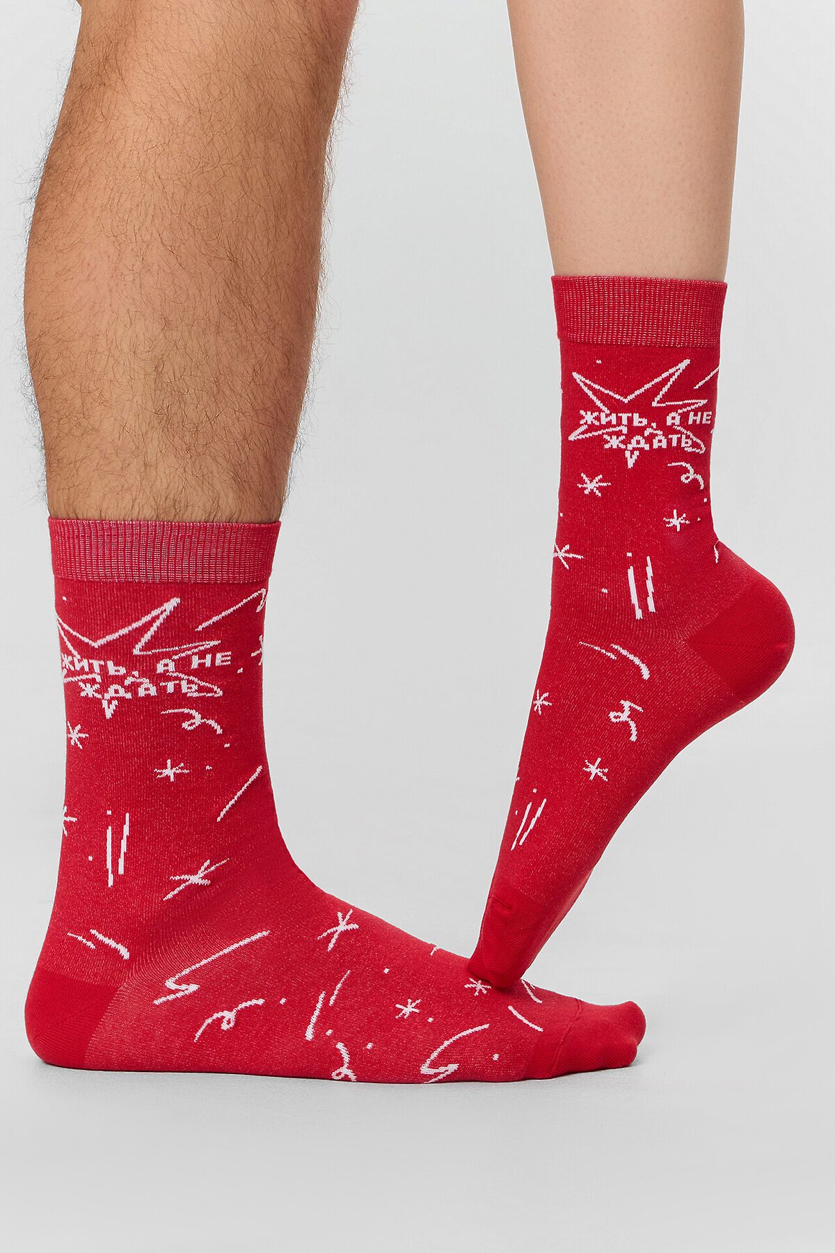 рис.3452 Носки унисекс классические, с рисунком в виде надписи и звезд.