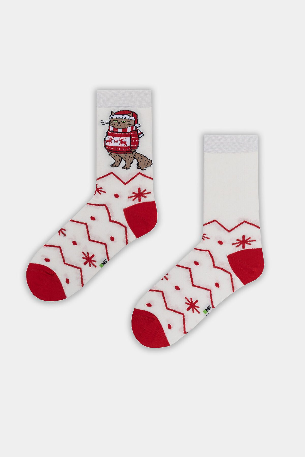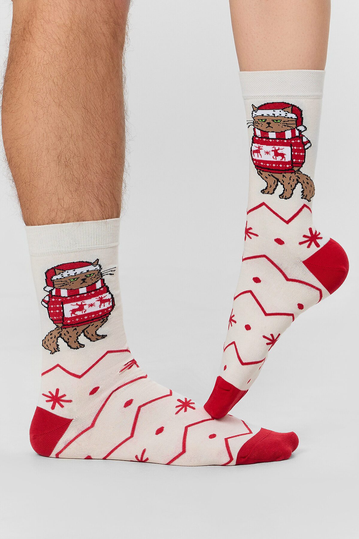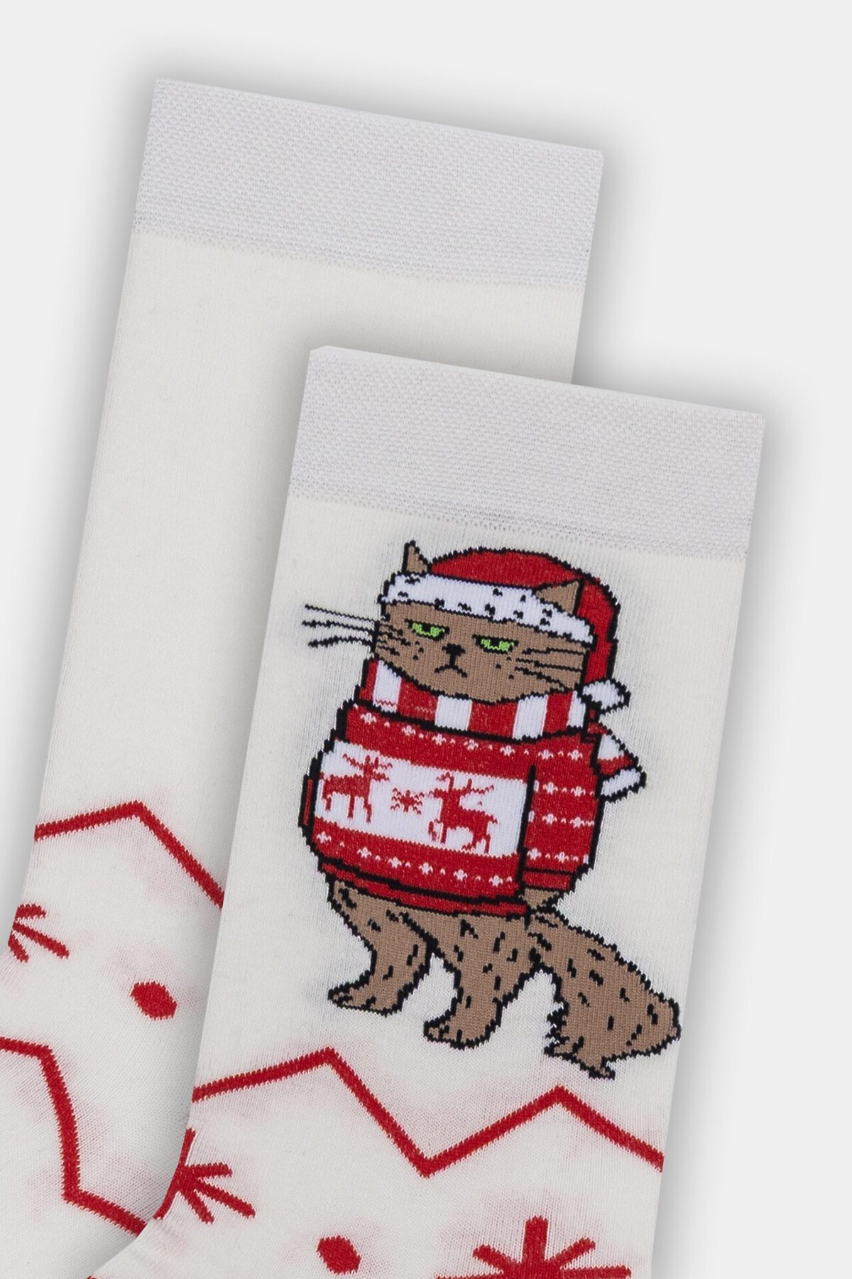 Рис.3453 Носки унисекс классические с рисунком в виде кота в свитере.