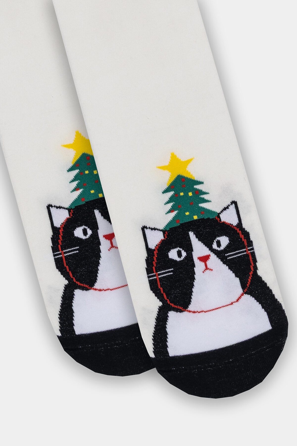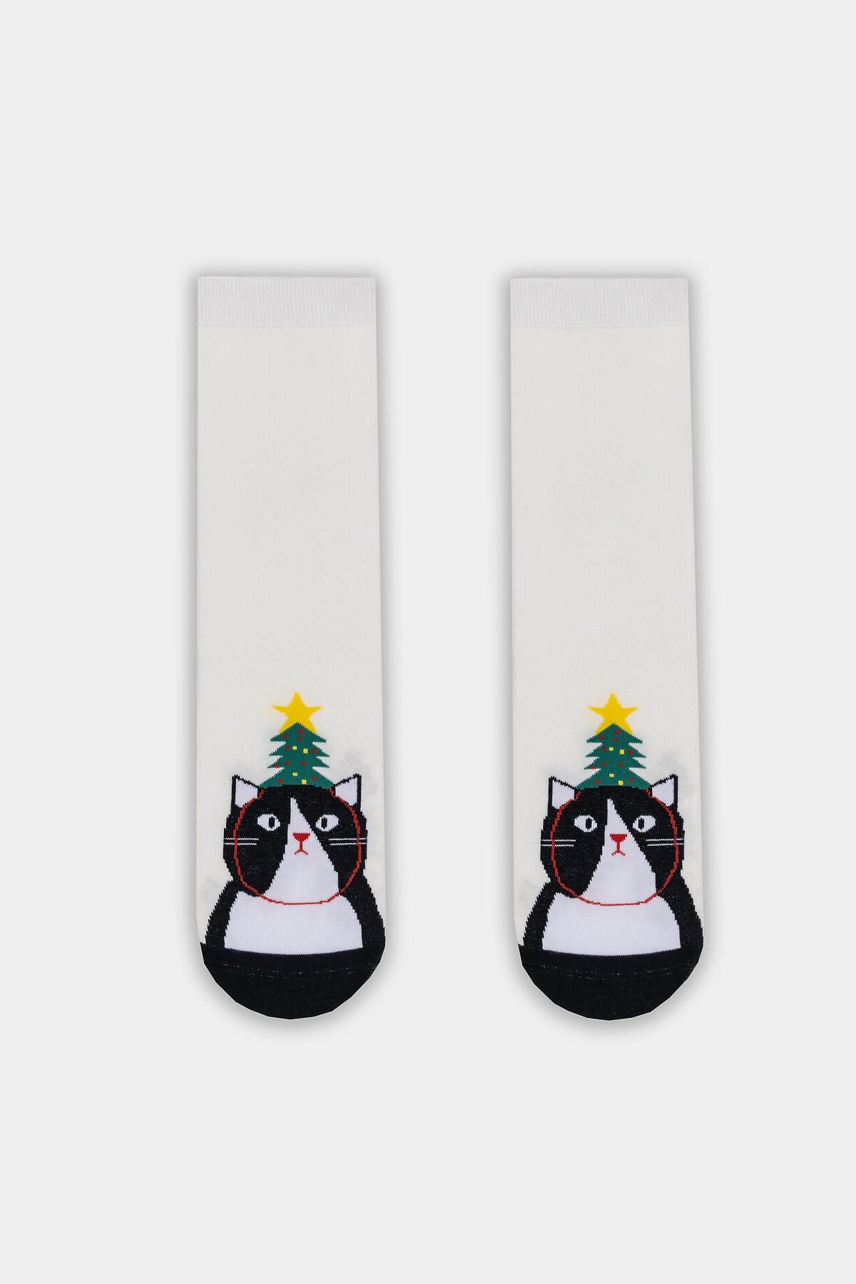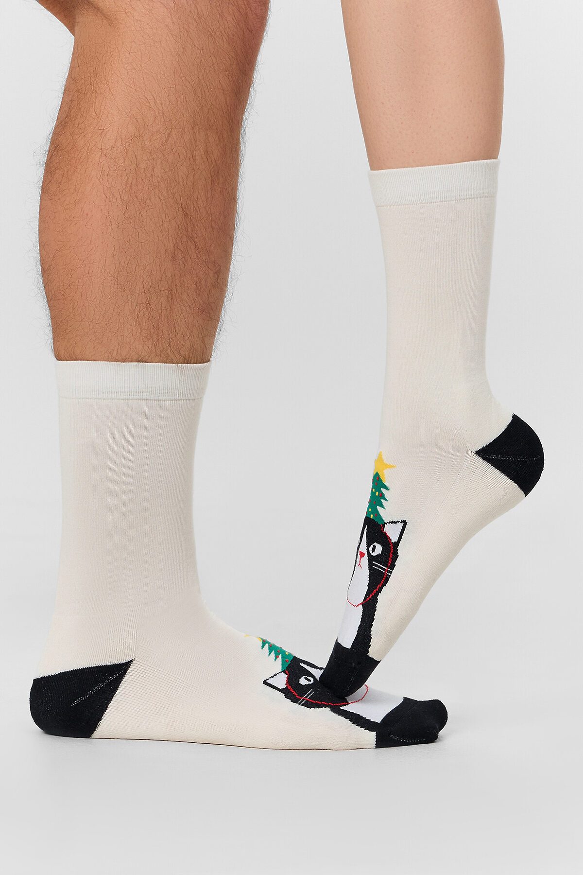 рис.3455 Носки унисекс классические с махровой стопой и рисунком в виде кота