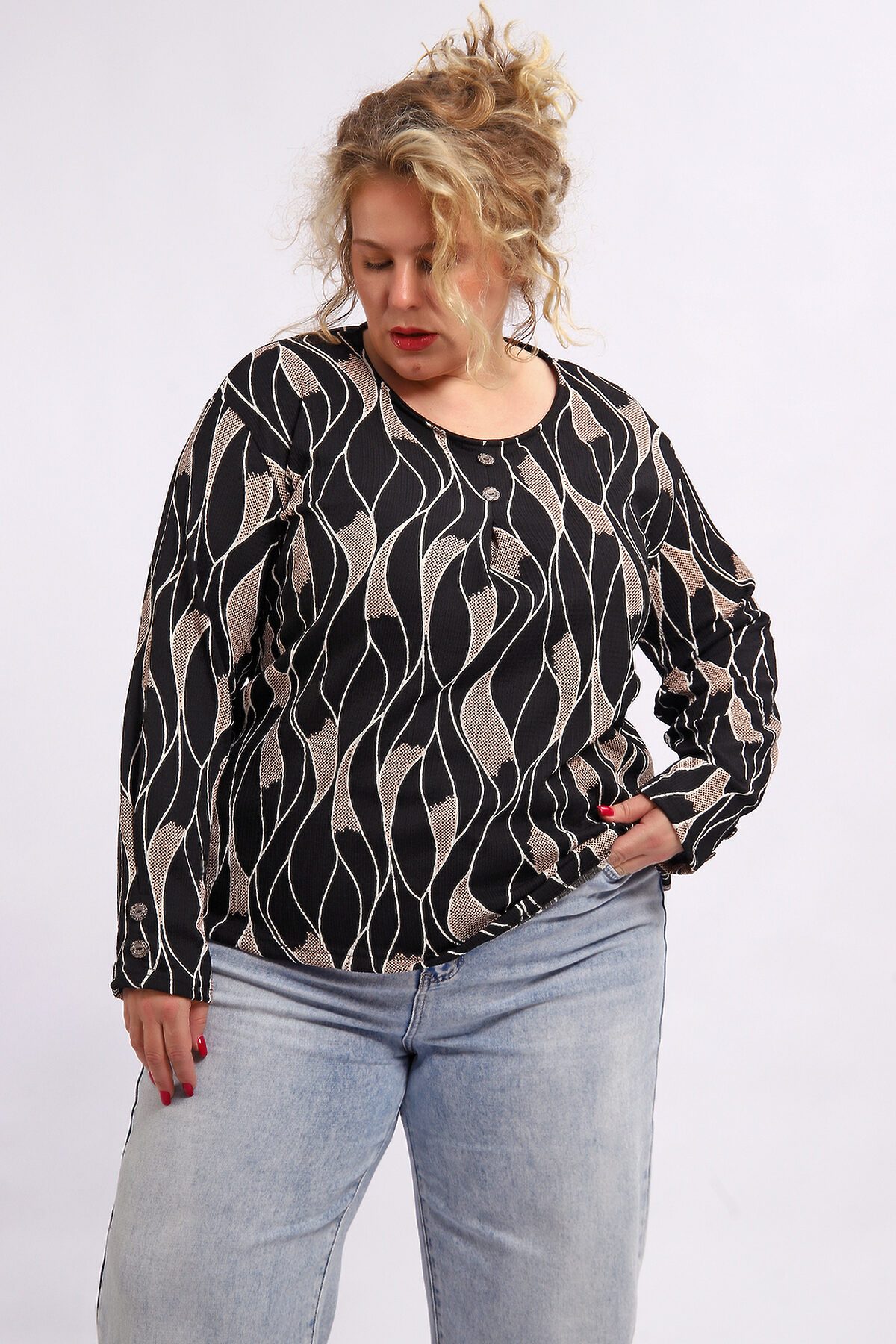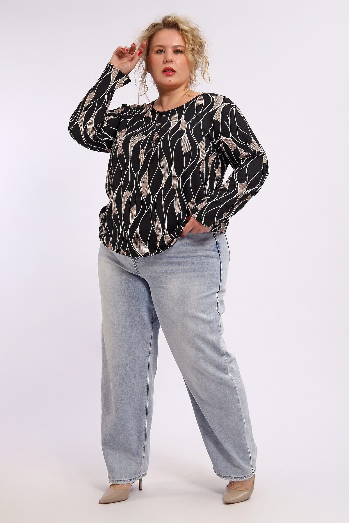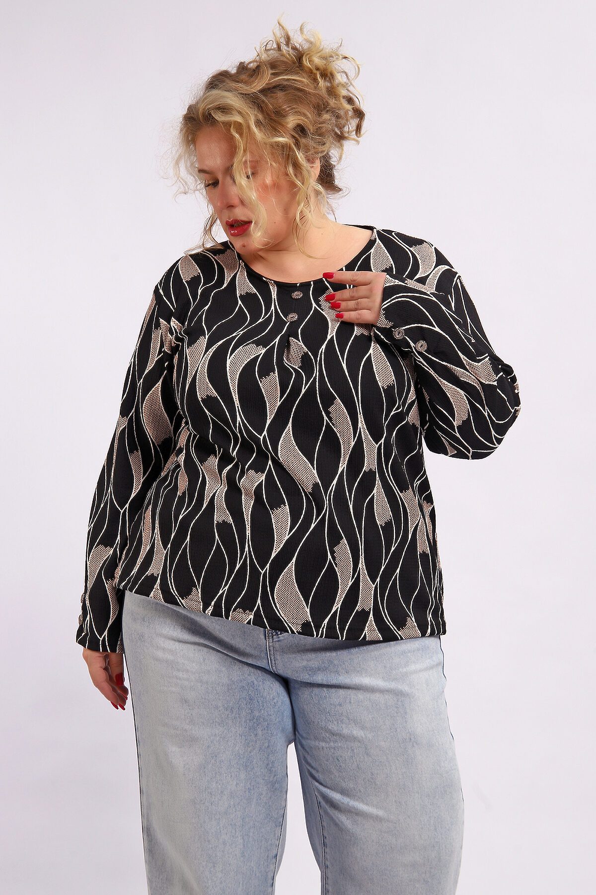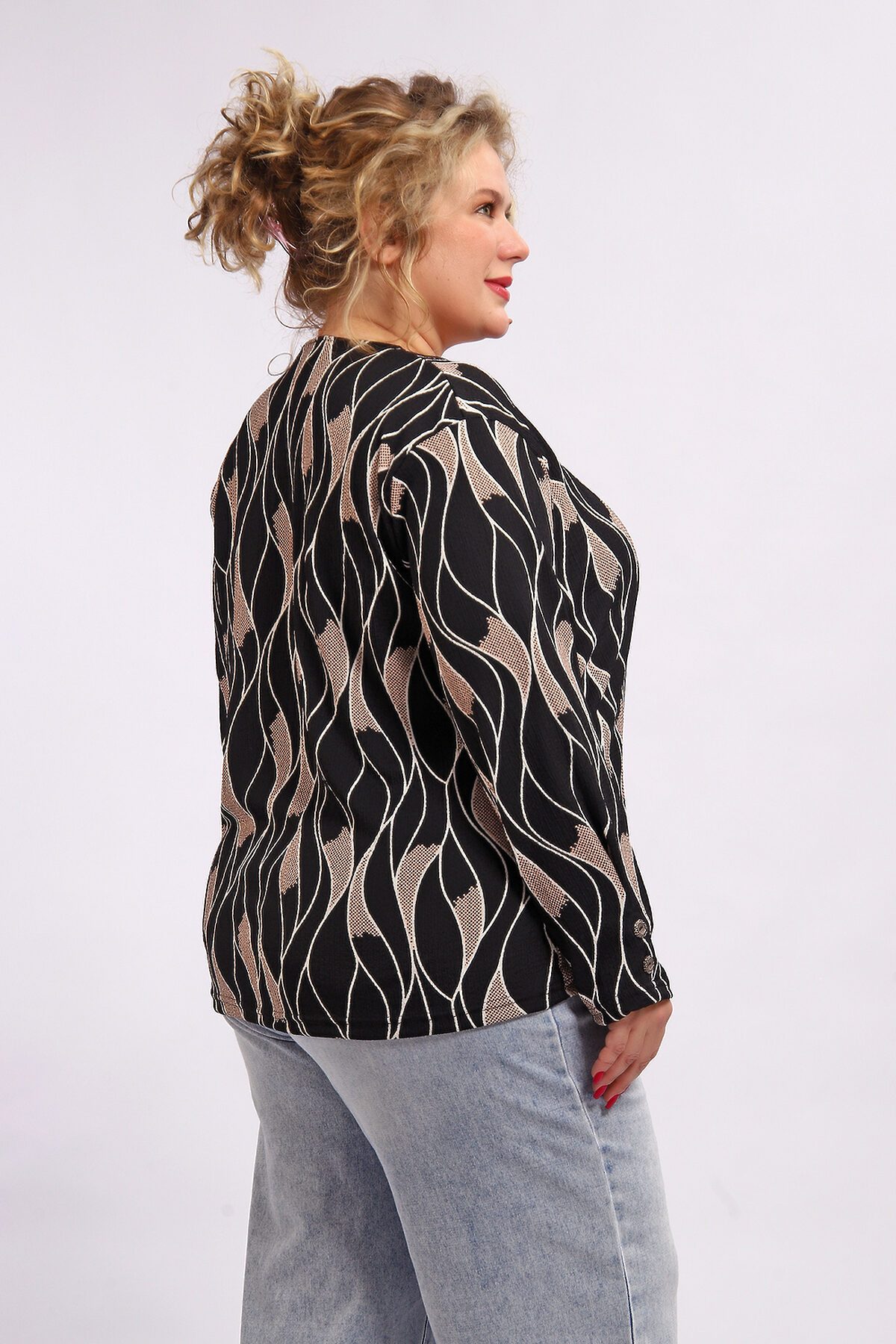 Элегантная блузка из 100 % полиэстера практичная и стильная базовая вещь для повседневного и делового гардероба. Ткань отличается износостойкостью, хорошо держит форму, не мнётся и легко стирается. Контрастное черно‑белое сочетание цвета, создающее выразительный визуальный эффект. Стандартная длина до линии бёдер подходит для сочетания с юбками и брюками.