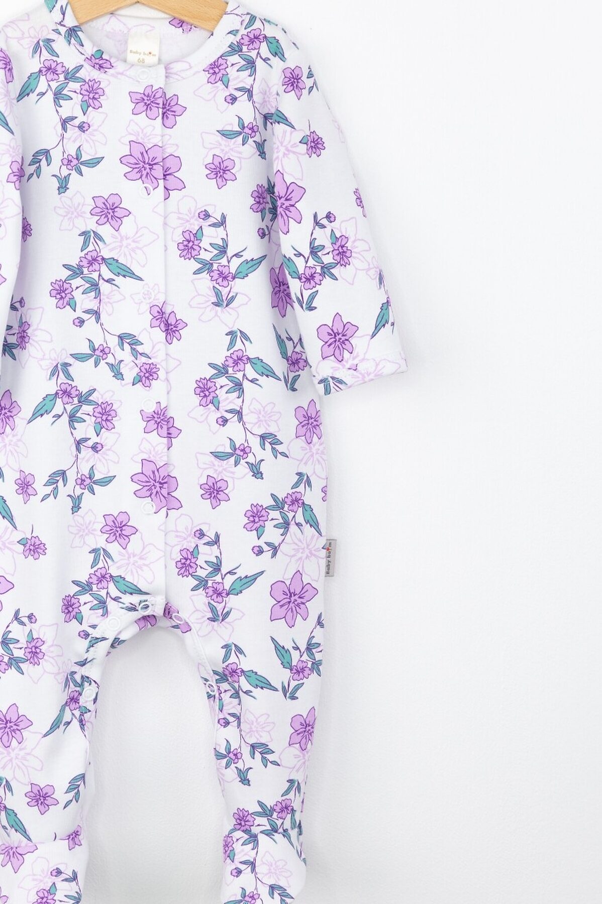Комбинезон BABY BOOM, цветы сиреневые на белом