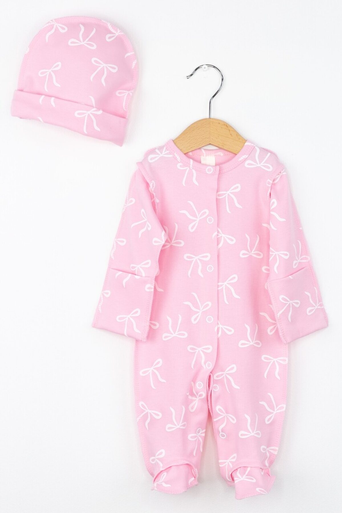 Комплект (Боди+Чепчик) BABY BOOM, бантики на розовом