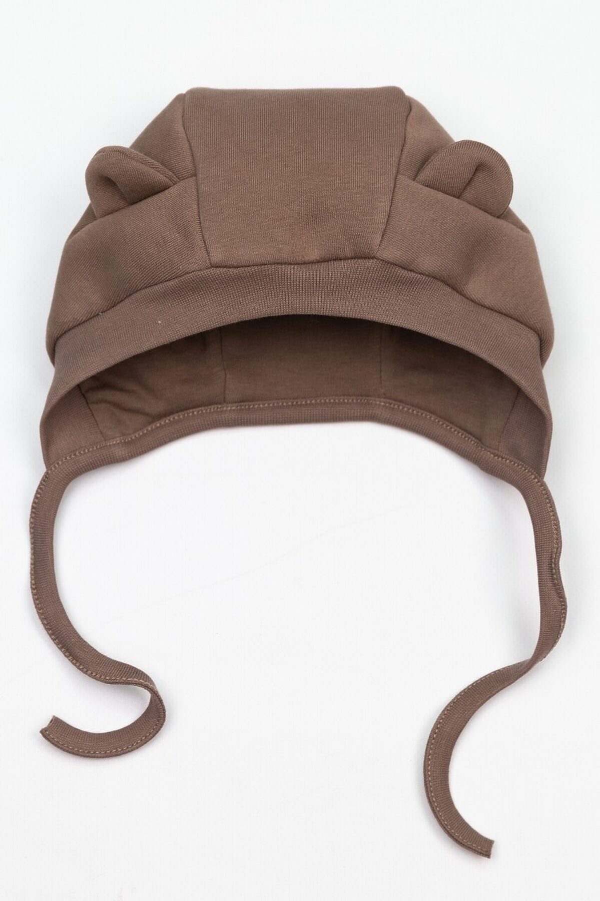 Шапка с милыми ушками мишки стильный аксессуар для малышки. Выполнен из футера 3-нитки с начёсом (80% хлопок, 20% полиэстер) со 100% хлопковым подкладом. Шапочка с завязками плотно закрывает уши малыша и комфортно сидит на голове, не сползая на глаза.