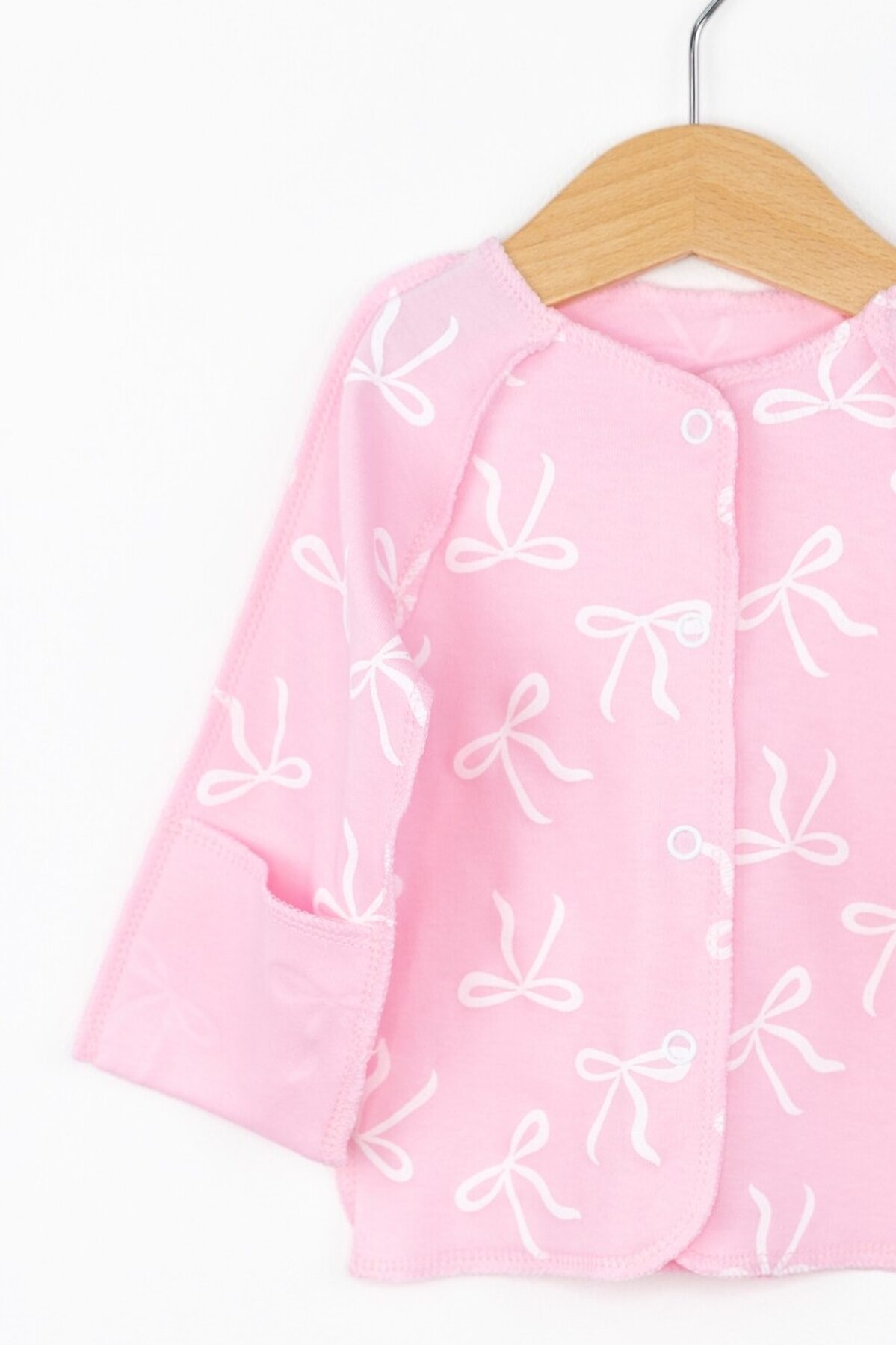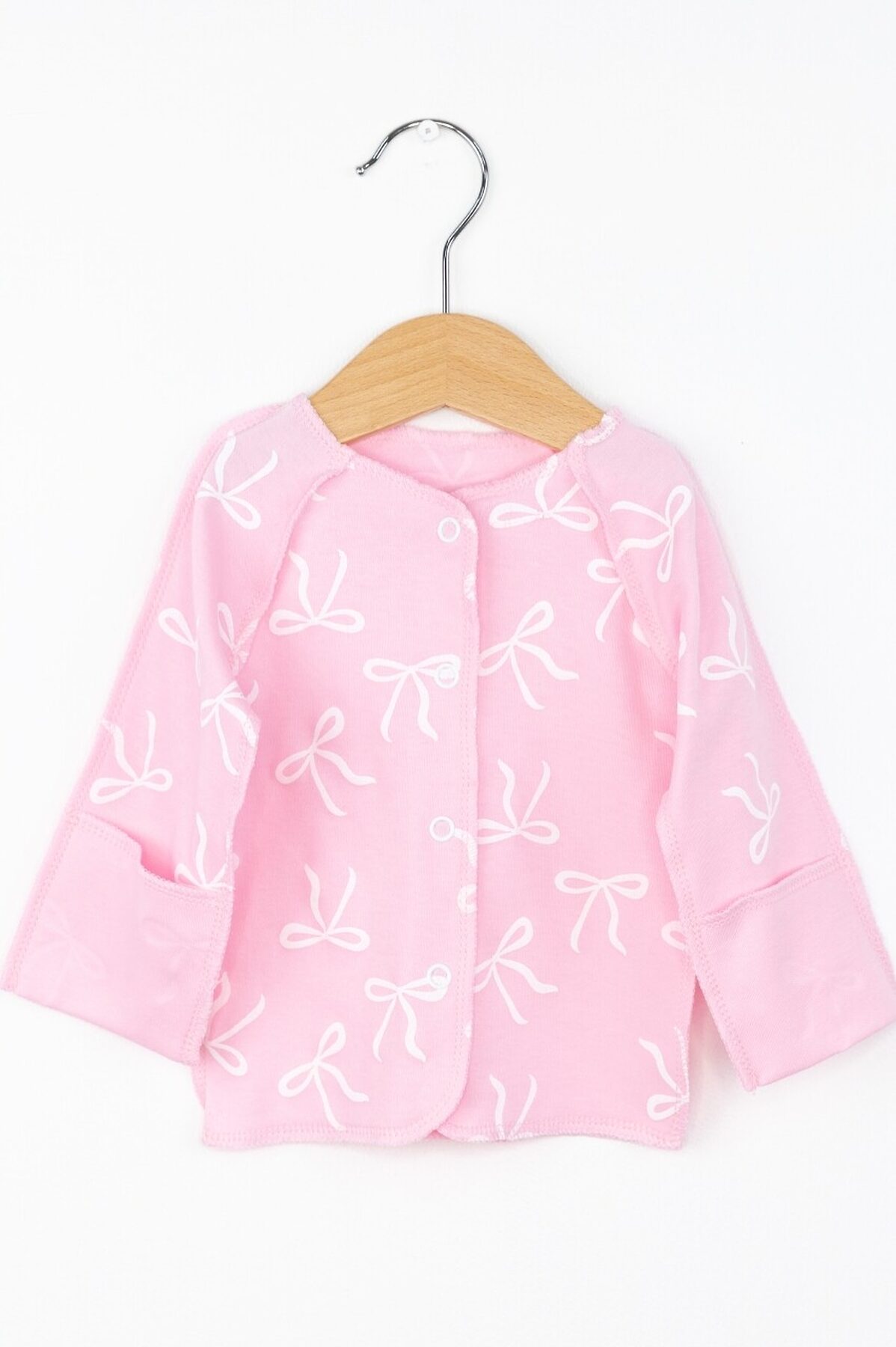 Распашонка с центральной застежкой на кнопках, с антицарапками. Выполнена швами наружу, без бейки и воротника, что обеспечивает максимальный комфорт малышу. Выполнена из набивного интерлока (100% хлопок).