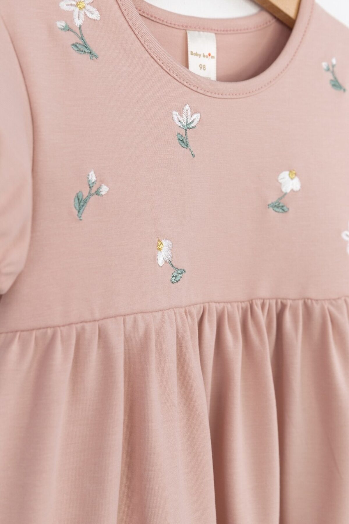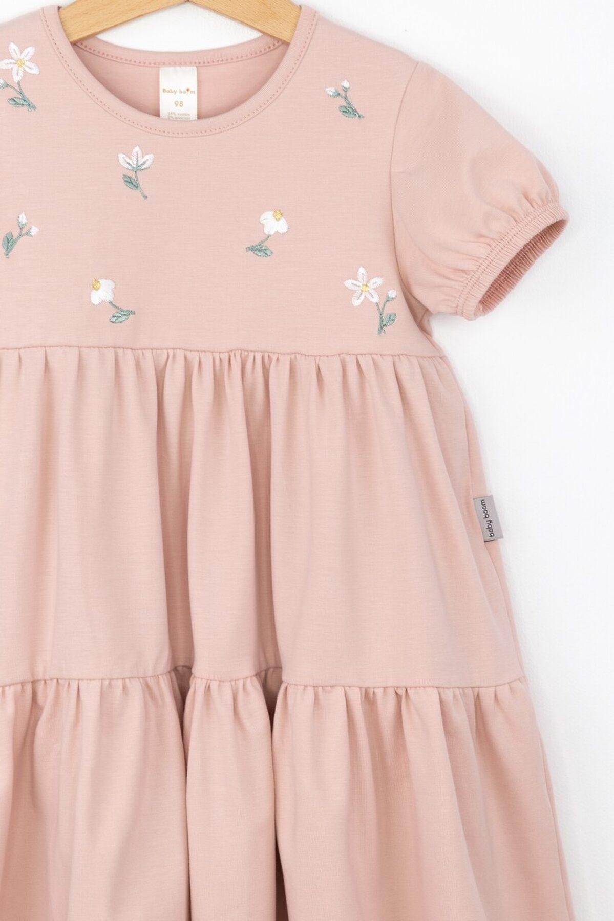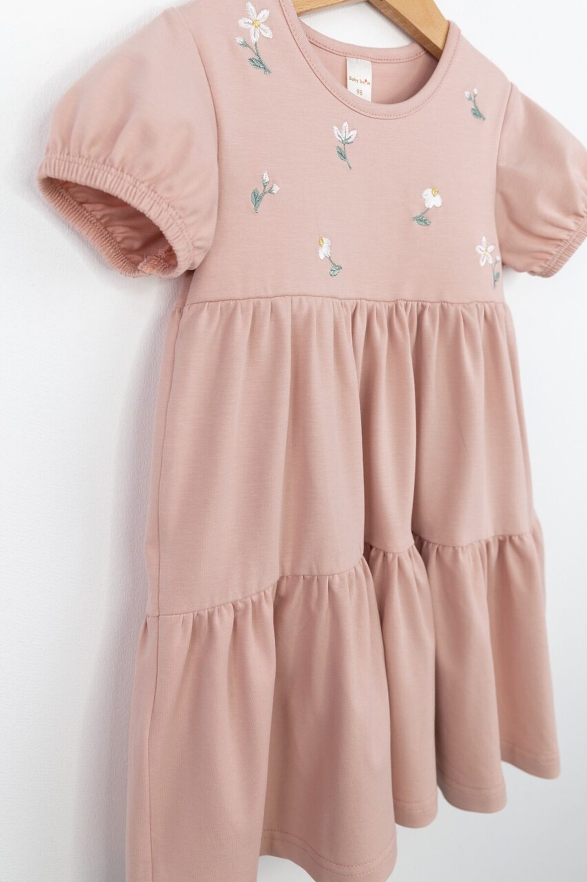 Ярусное платье с нежной цветочной вышивкой на кокетке. Выполнено из эластичной кулирки (95% хлопок, 5% эластан. Это платье из категории "и в пир, и в мир", оно прекрасно подойдет как для торжественных случаев, так и для прогулок и детского сада.