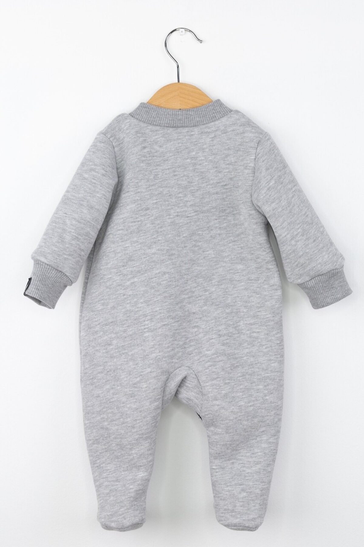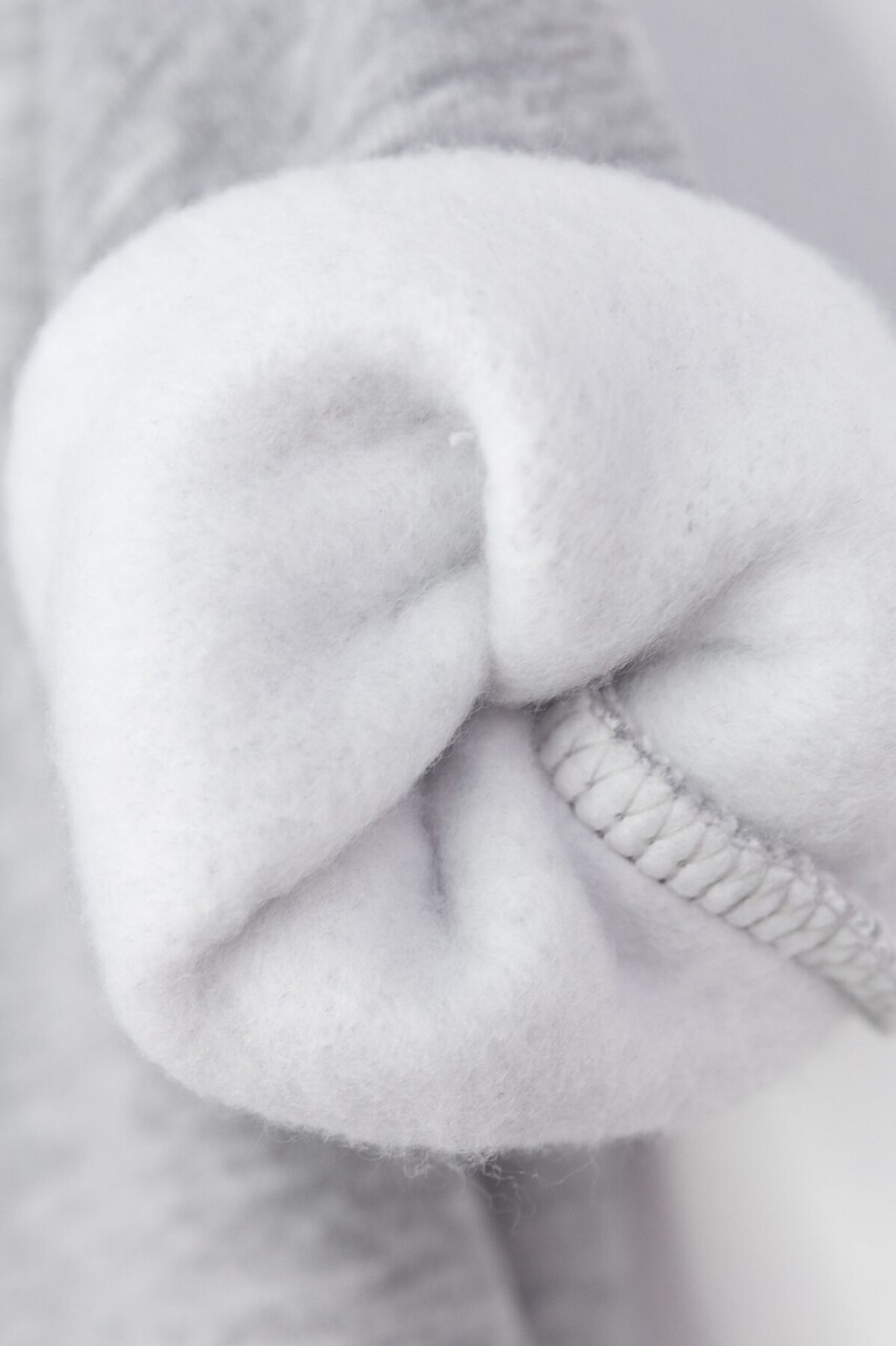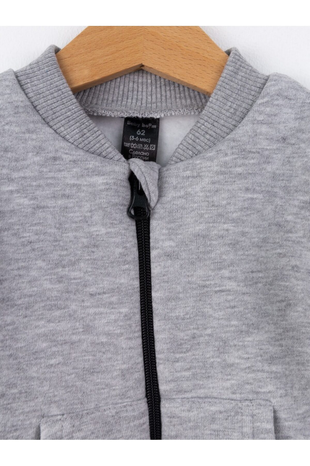 Теплый комбинезон на молнии, с карманом-кенгуру. Выполнен из футера 3-нитки с начесом (80% хлопок, 20% полиэстер), манжеты и воротник их кашкорсе, 95% хлопок, 5% эластан. Размеры 62 и 68 с закрытой стопой, 74-80 на манжете.