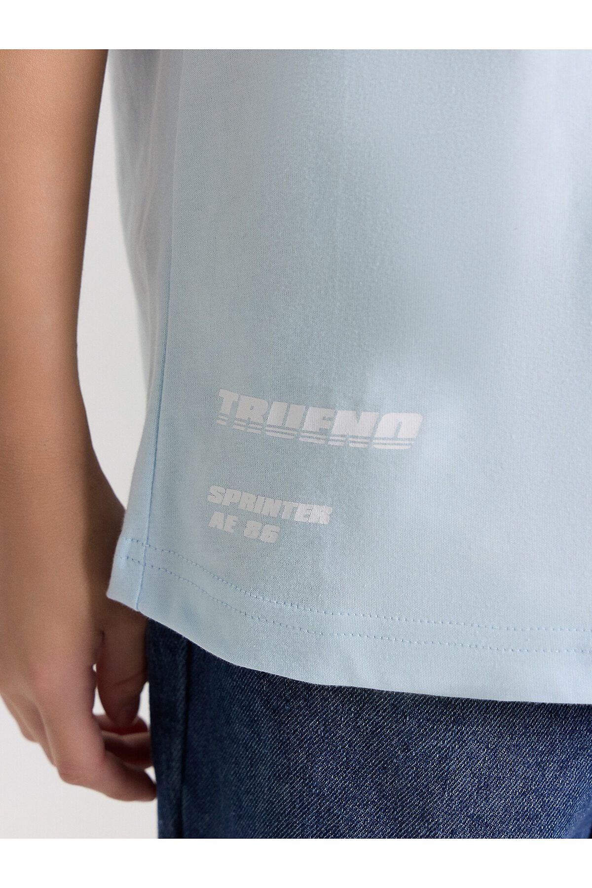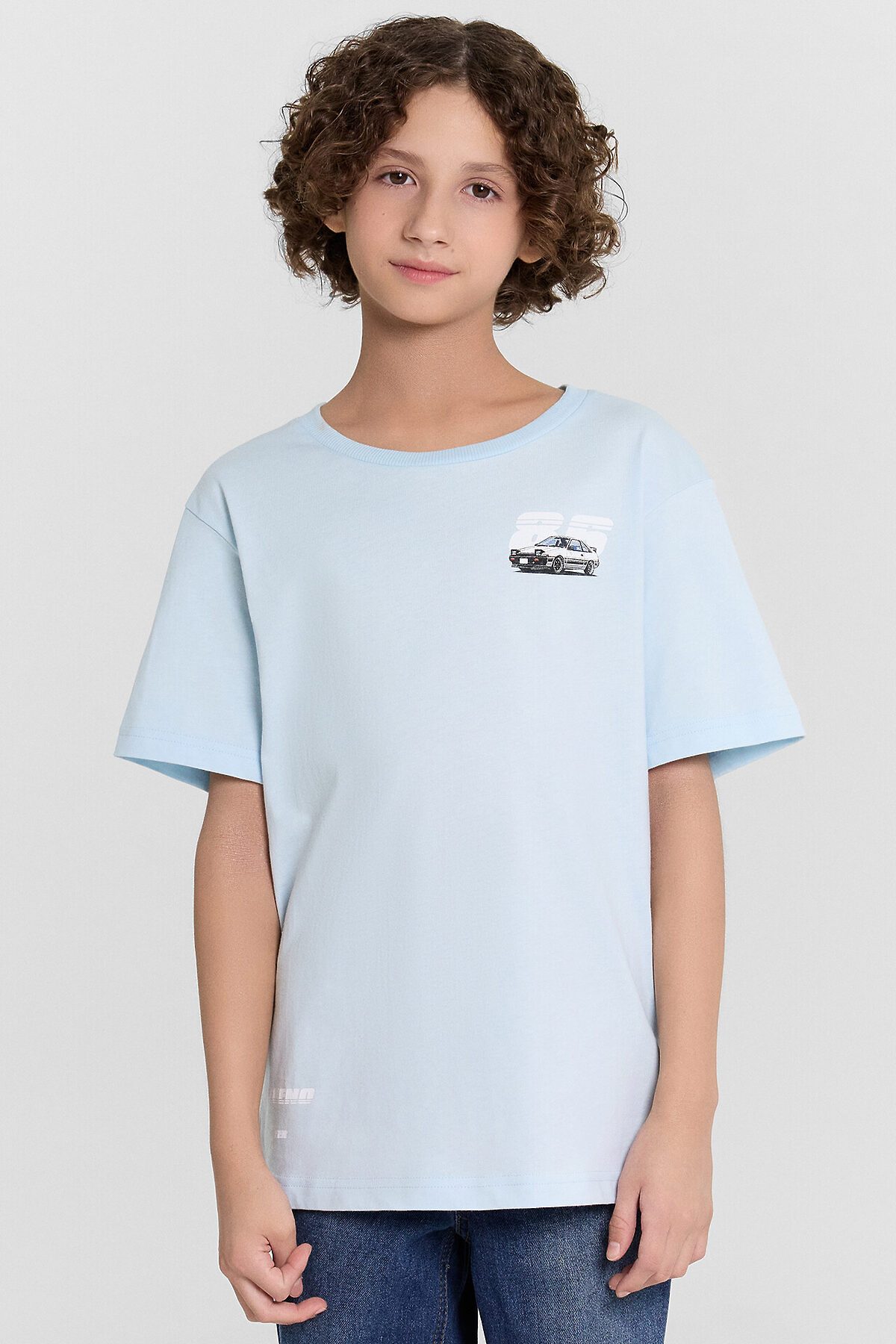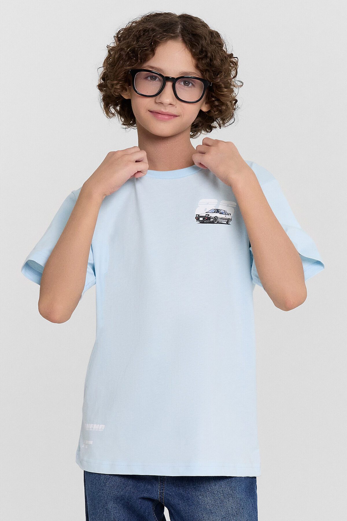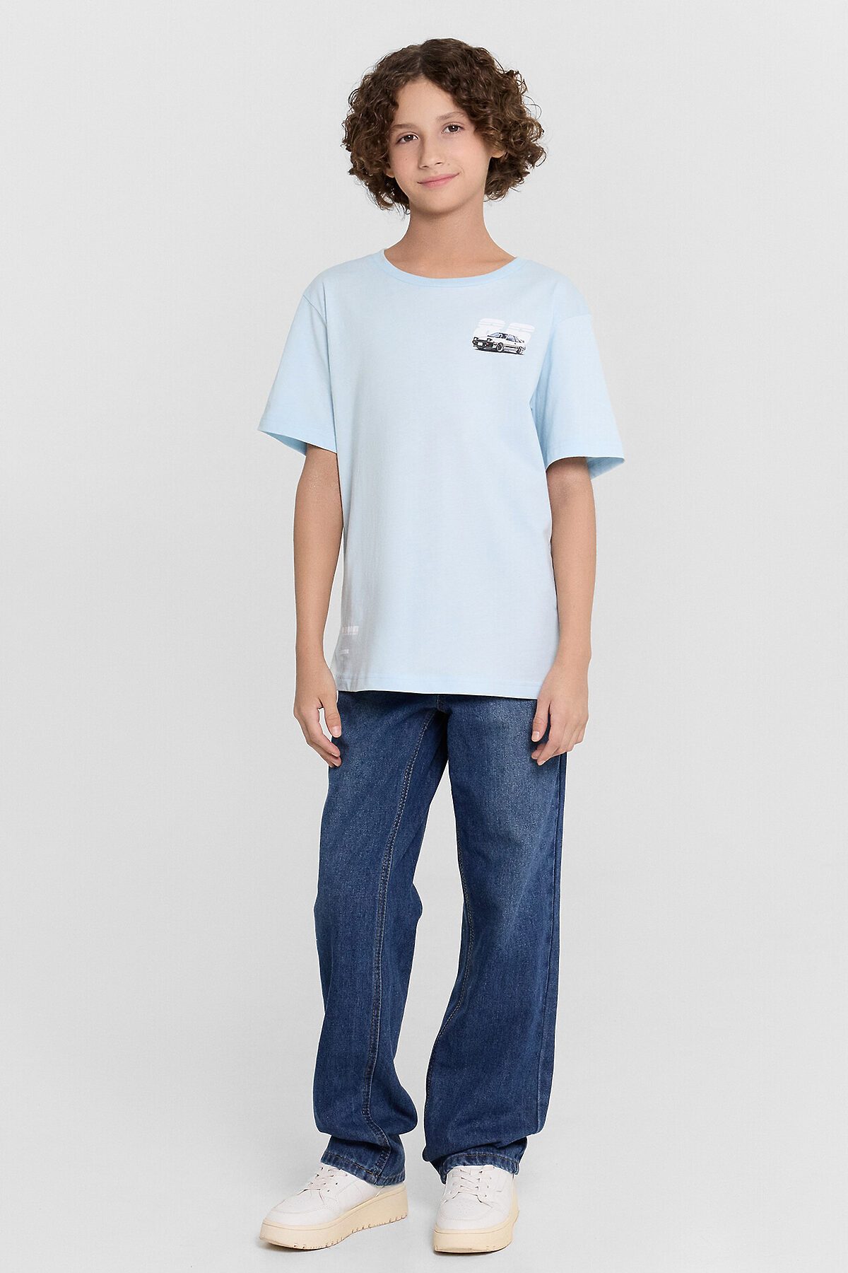 Футболка верхняя изготовлена из трикотажного кулирного полотна и трикотажного полотна рибаны.. Футболка верхняя прямого силуэта. Перед и спинка цельнокроенные. Рукава втачные короткие. Линия плеча спущена. Горловина круглой формы, обтачка из трикотажного полотна рибаны 1*1. Шов втачивания рибаны по спинке закрыт бейкой из основного полотна. Низ футболки и рукавов обработан на 2-х игольной плоскошовной машине швом в подгибку.