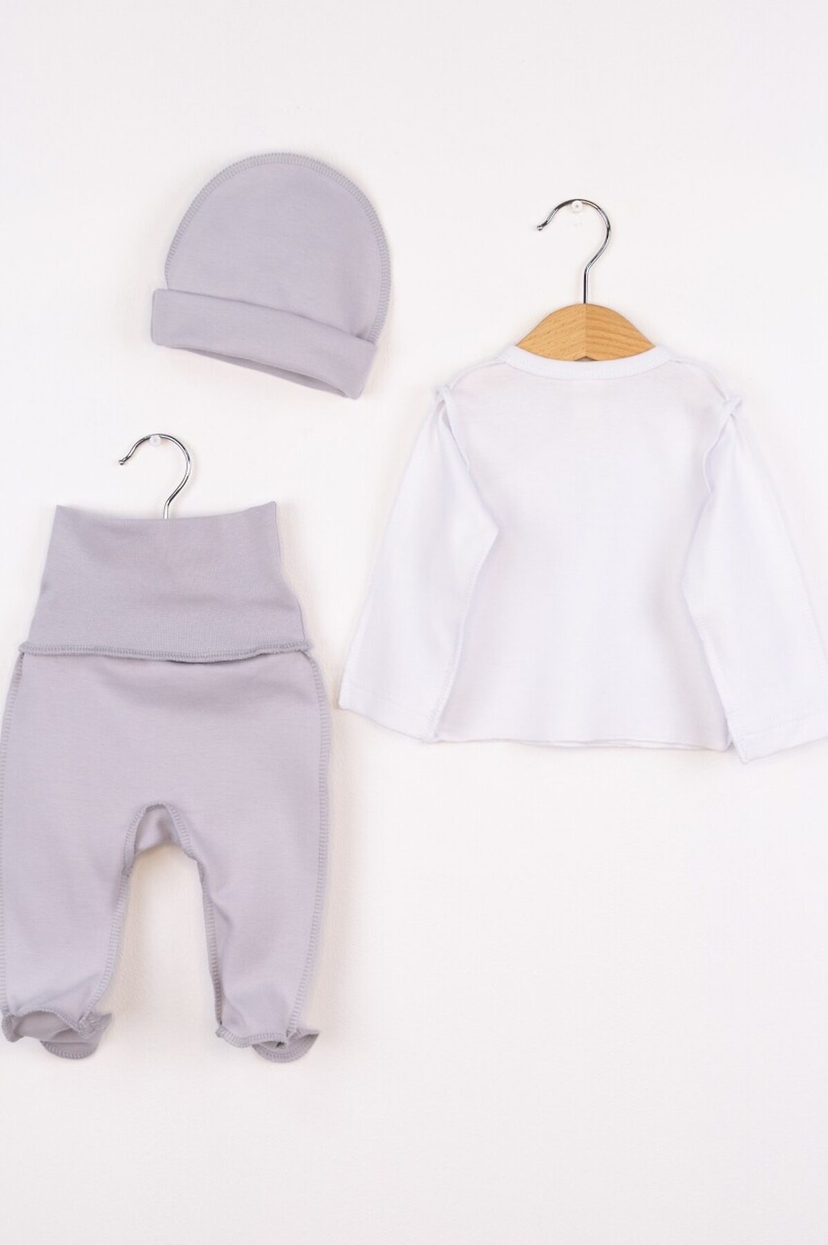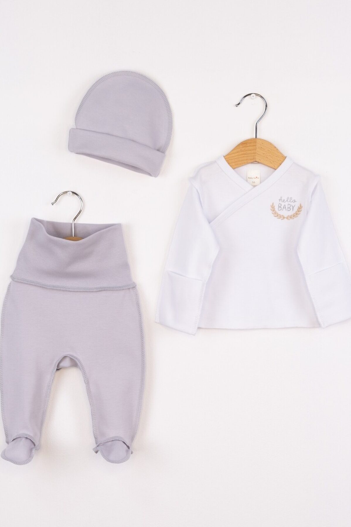 Комплект (Распашонка+Ползунки+Шапочка) BABY BOOM, светло-серый