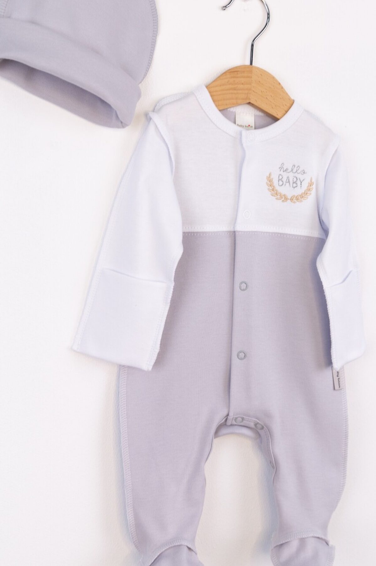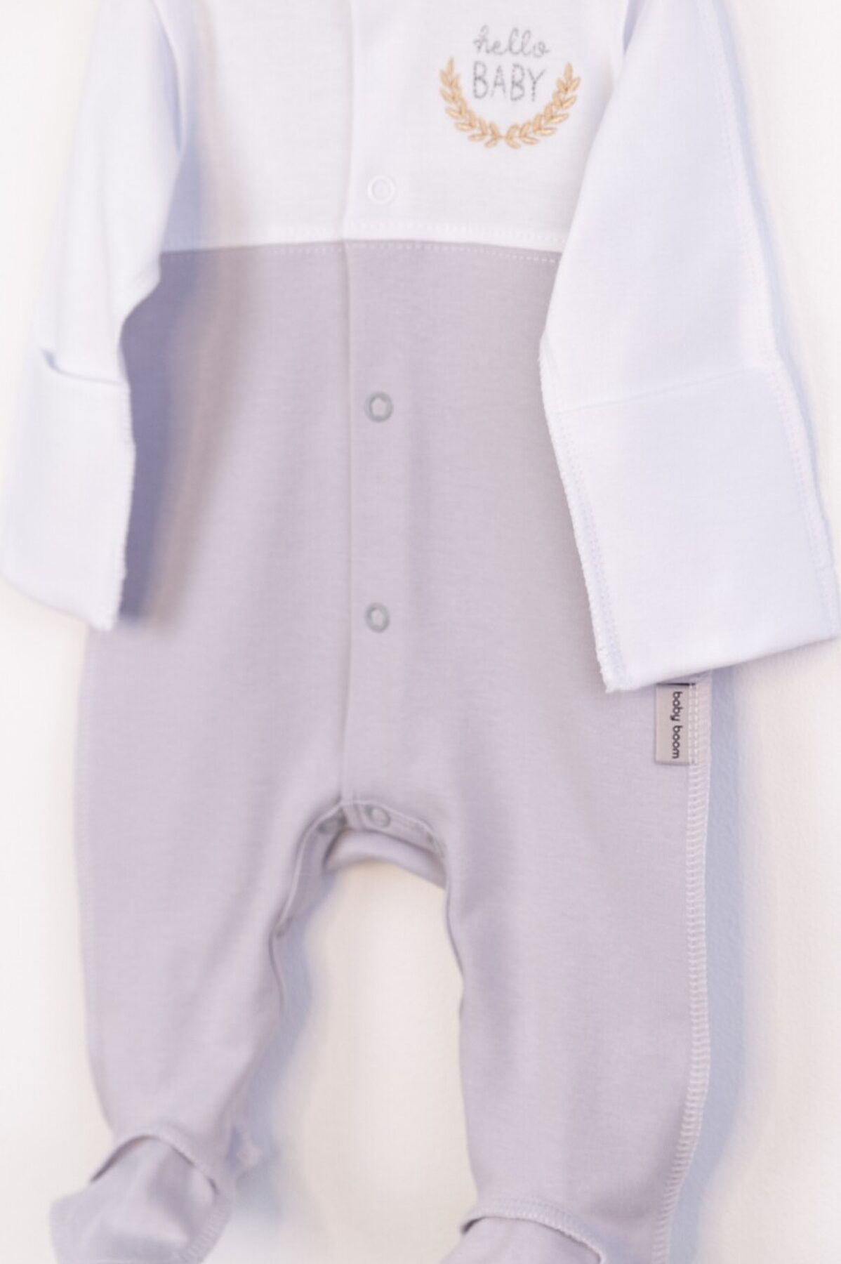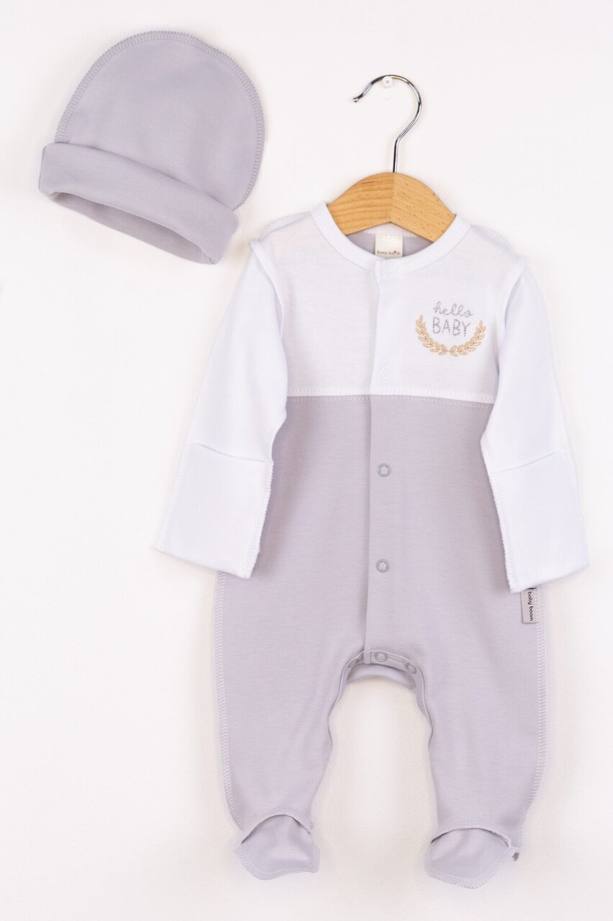 Комплект (Комбинезон+Шапочка) BABY BOOM, белый-светло серый