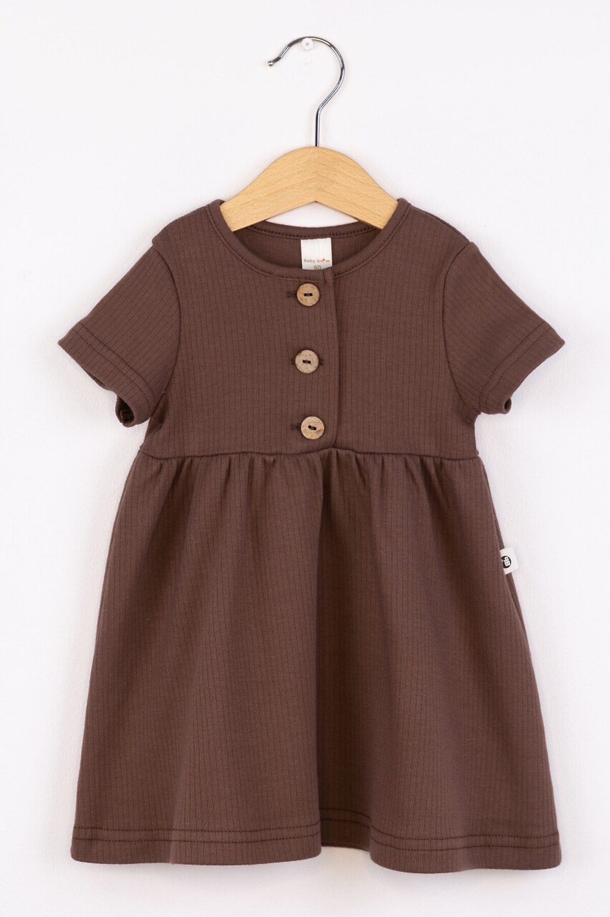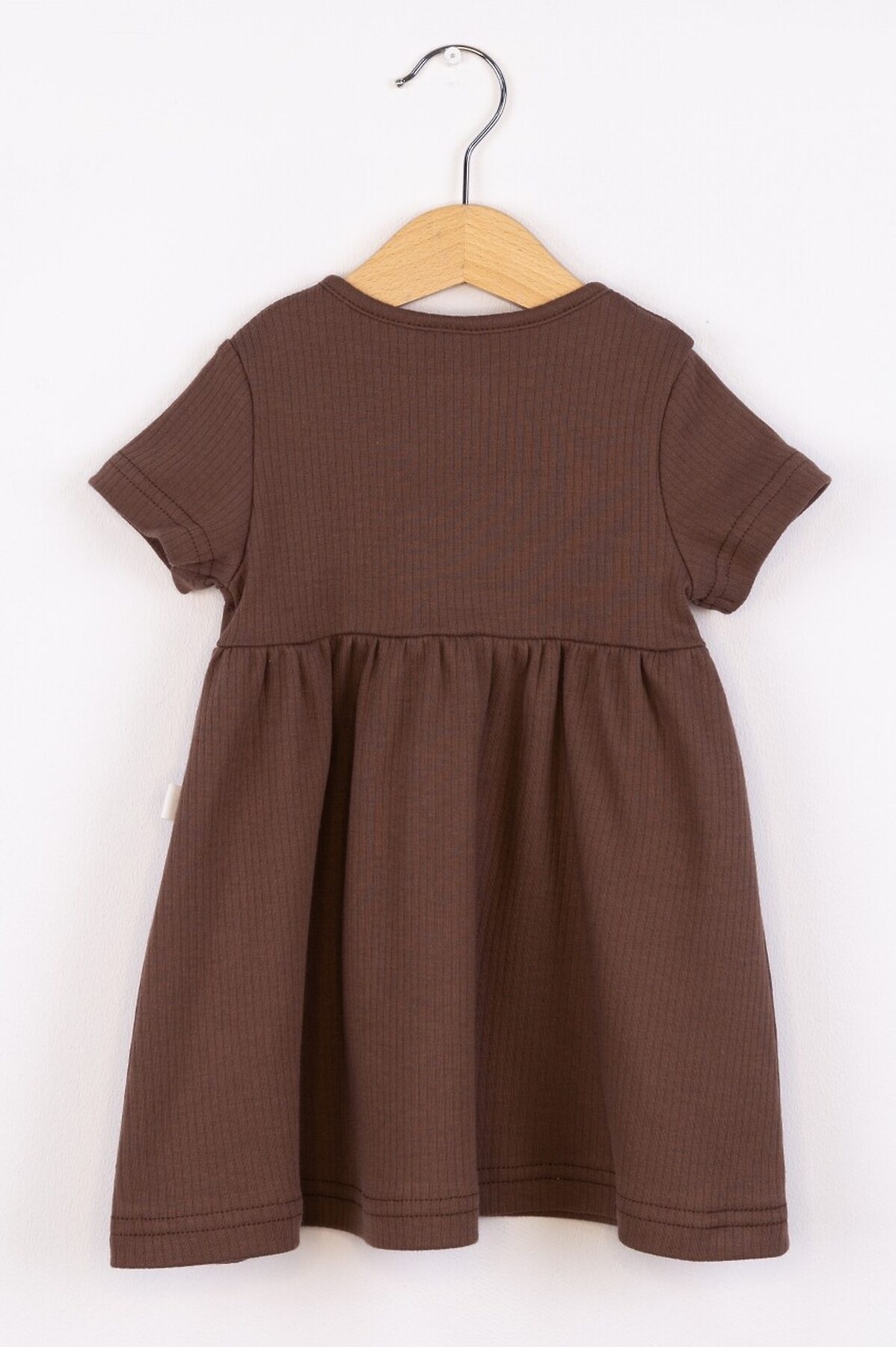 Милое платье из интерлока с выставом (100% хлопок) с коротким рукавом. Отрезная кокетка с застежкой на кокосовых пуговицах по переду, что придает образу особый шарм и теплоту.