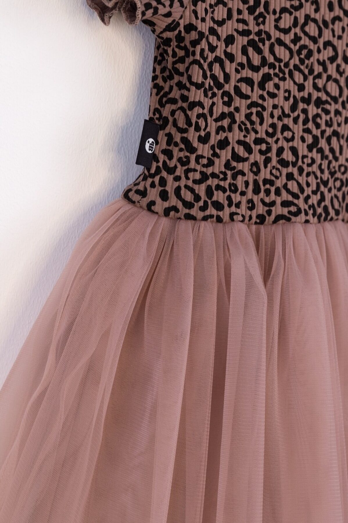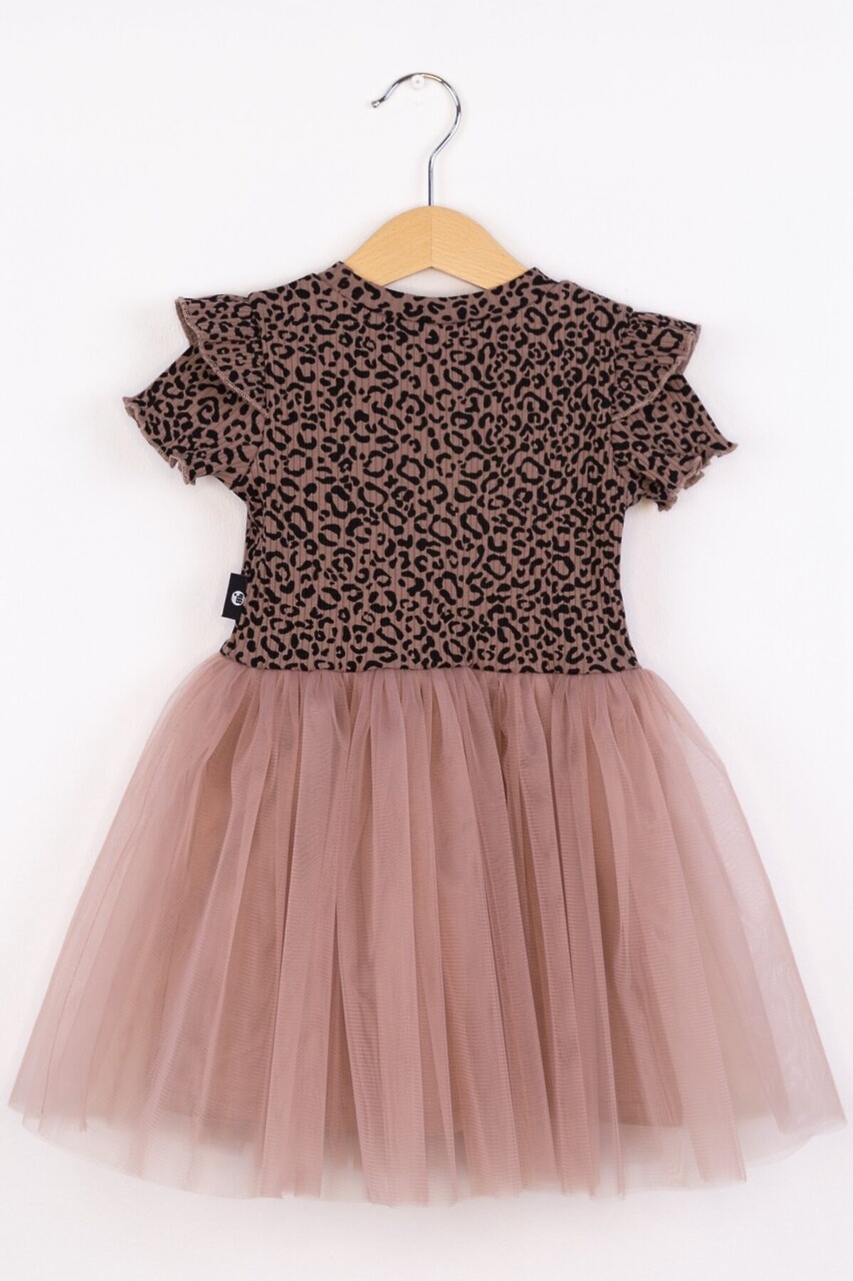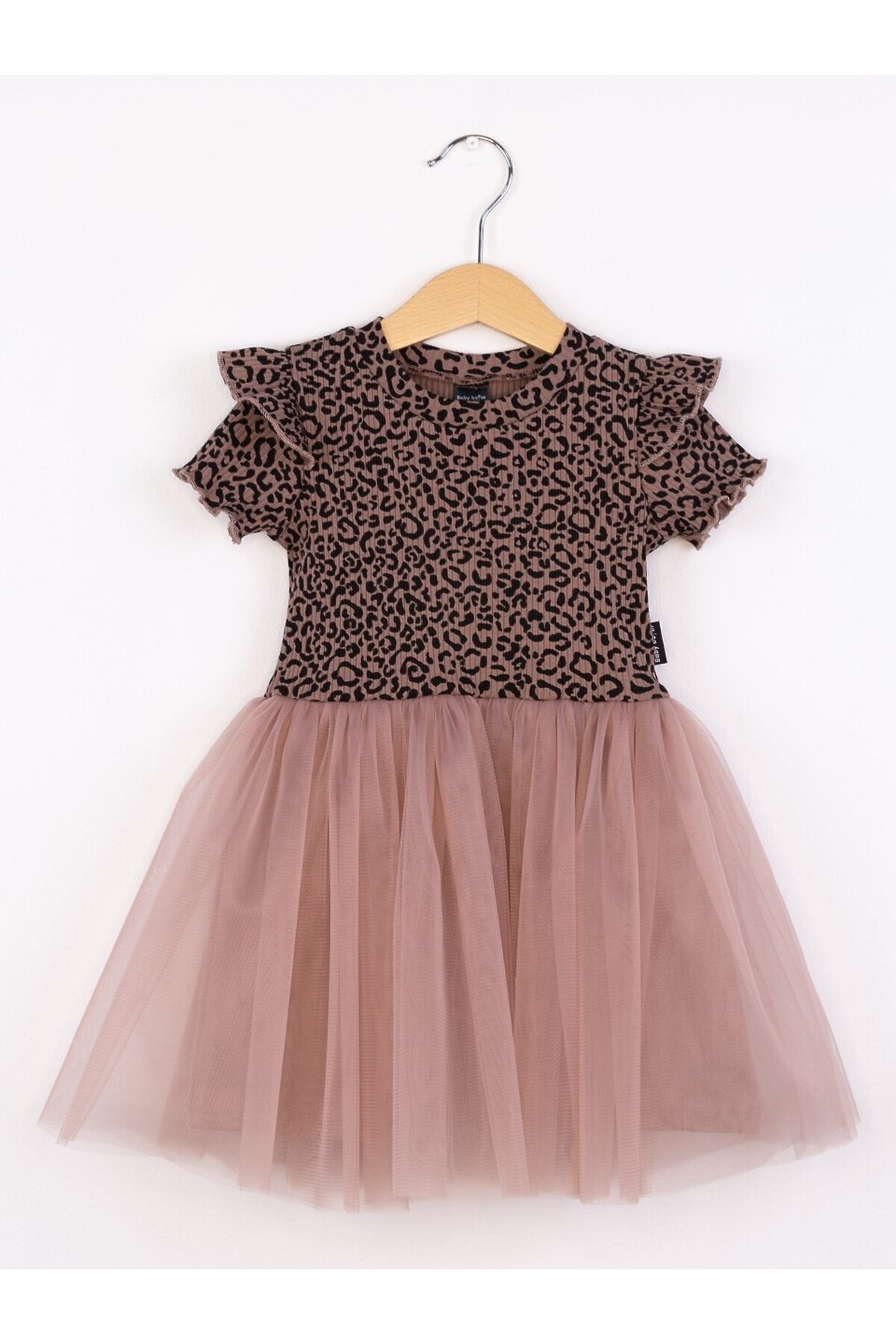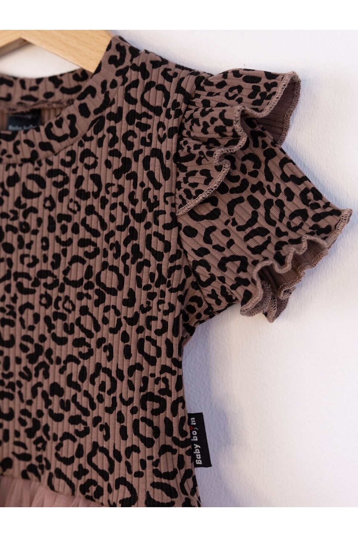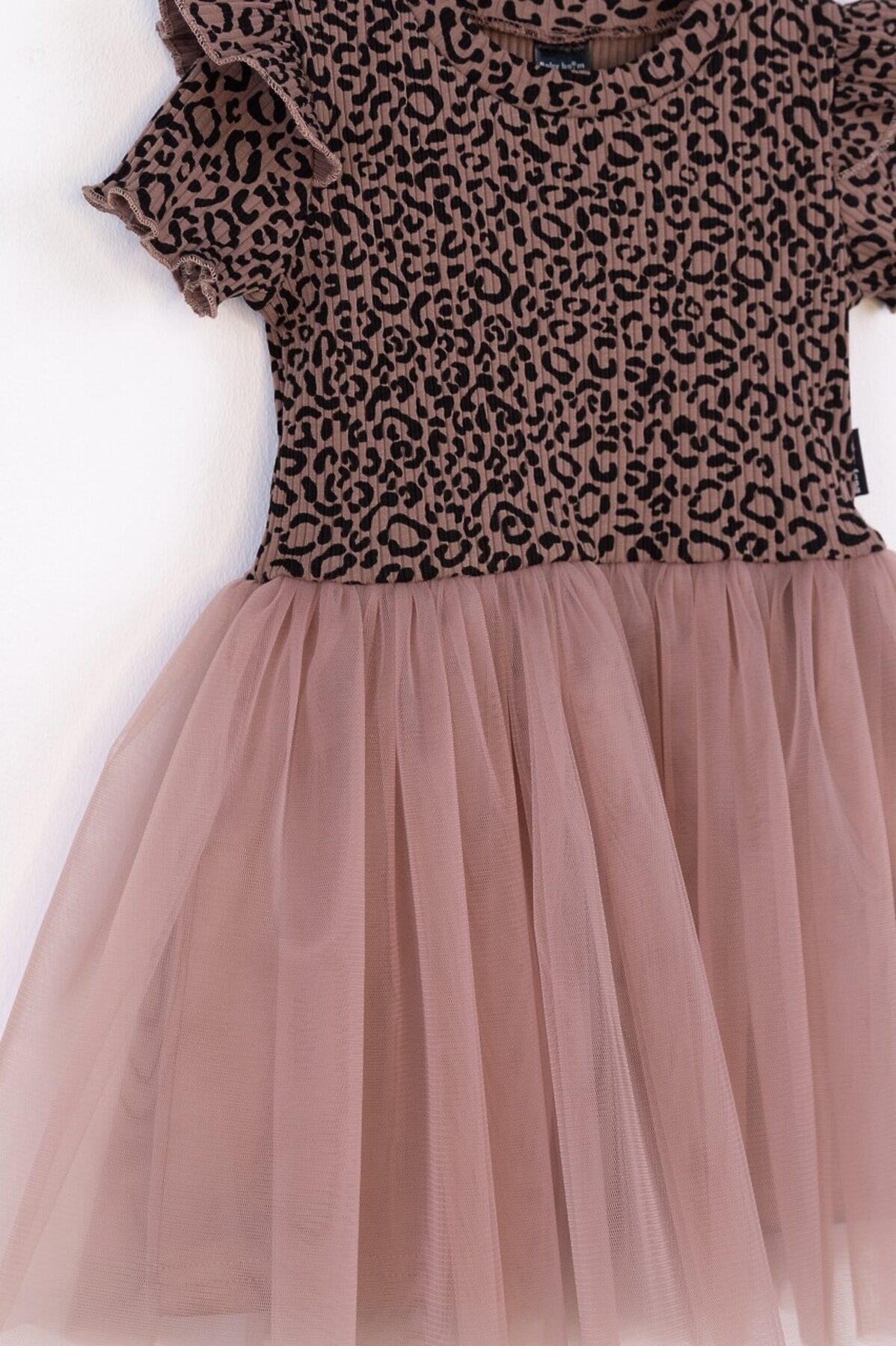 Нарядное платье с короткими рукавами, крылышками и пышной фатиновой юбочкой. Верх выполнен из кашкорсе (95% хлопок, 5% эластан), подкладка юбки из кулирки (100% хлопок).