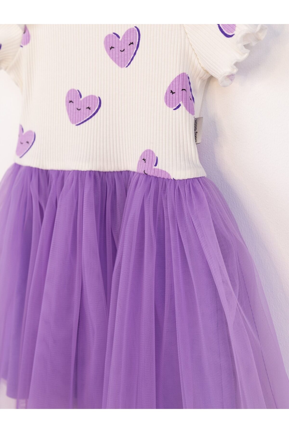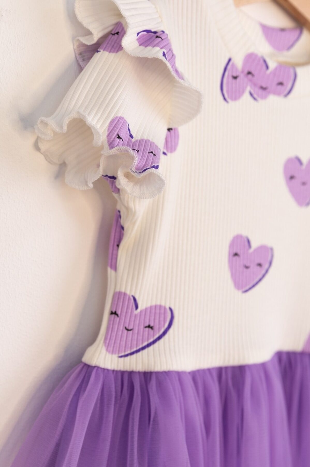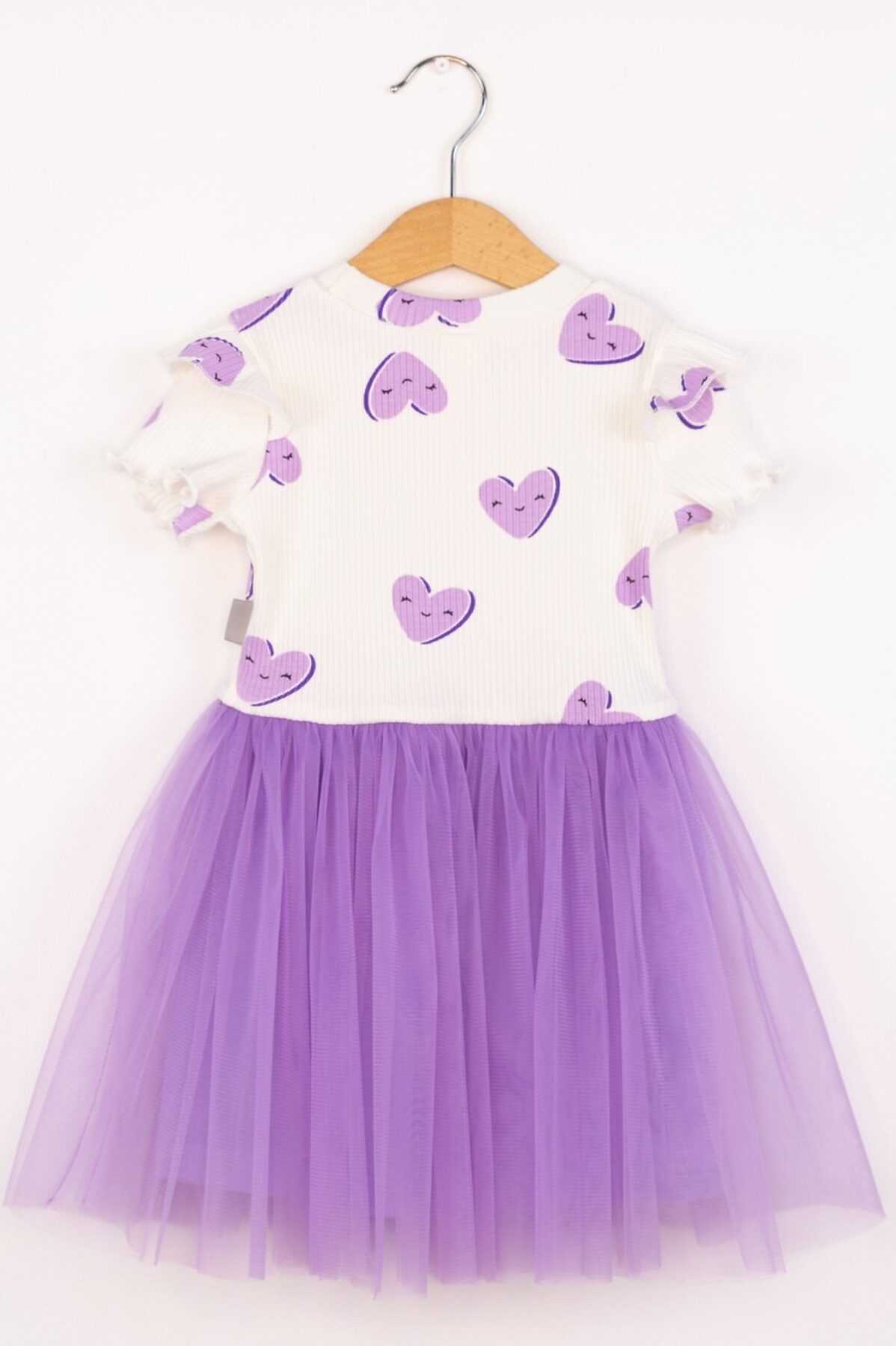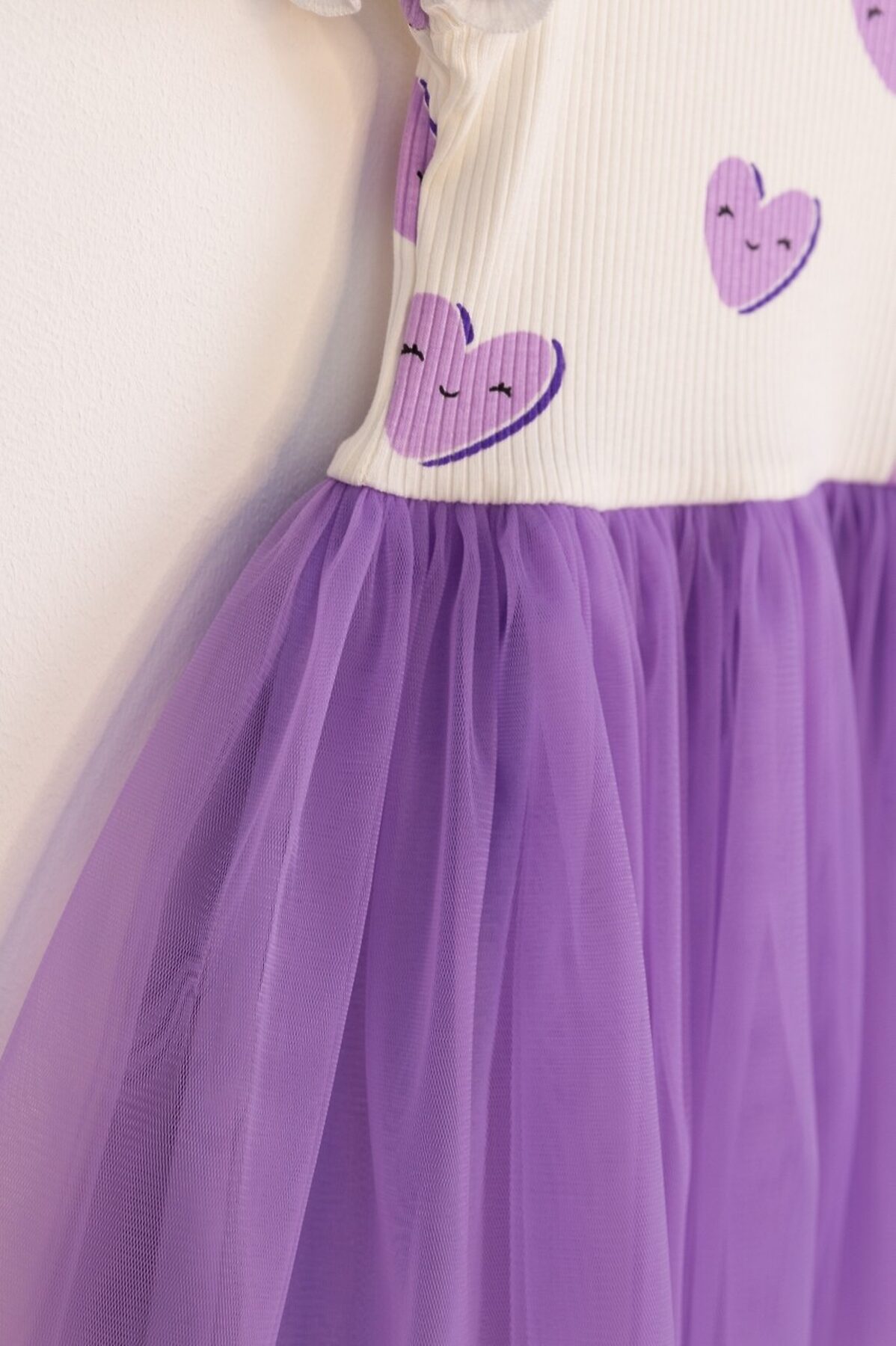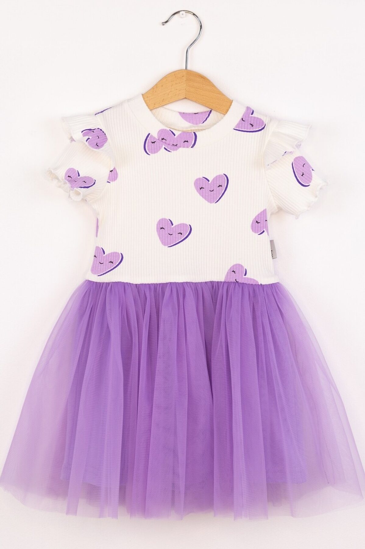 Платье BABY BOOM, сердца лиловые на молоке/сиреневый
