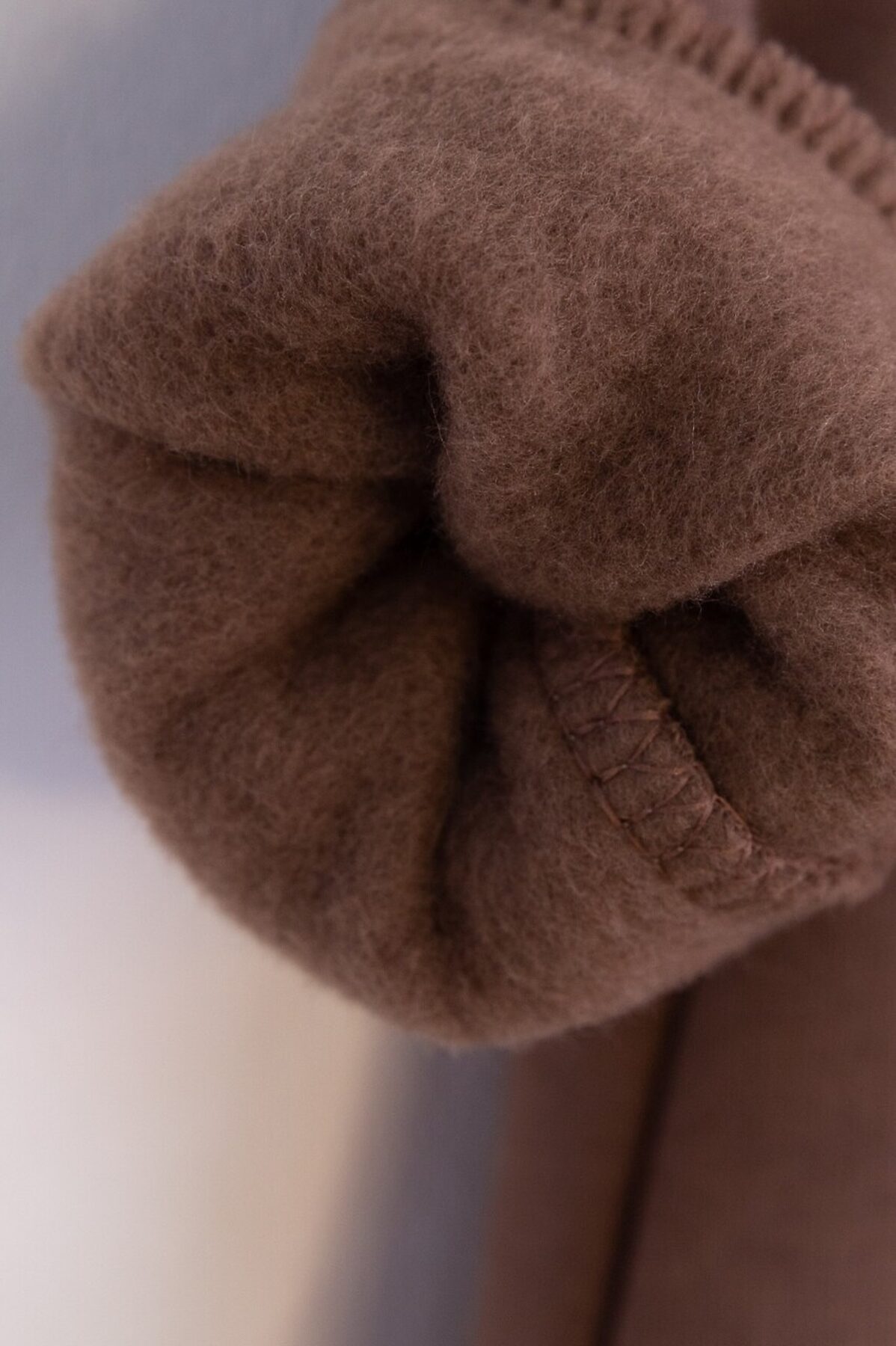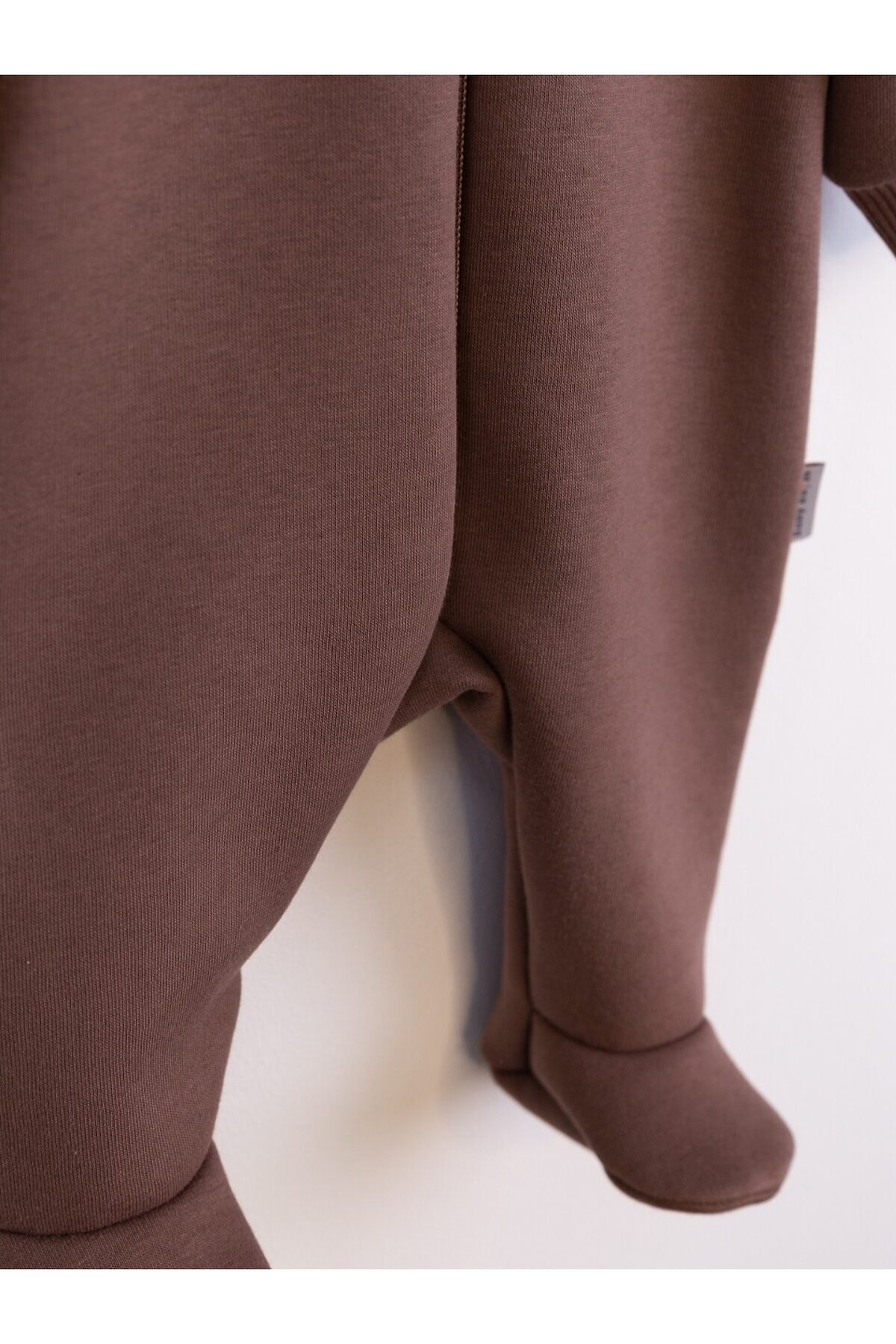 Комбинезон с аппликацией на левой детали переда и косой молнией. Выполнен из футера 3-нитки с начёсом (80% хлопок, 20% полиэстер). Размеры 56-74 с закрытой стопой, 80 - на манжете.