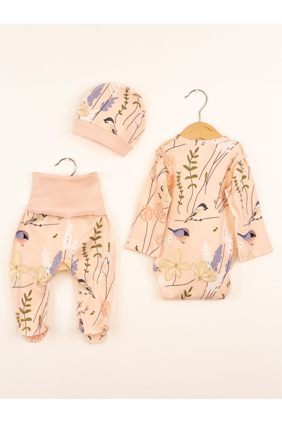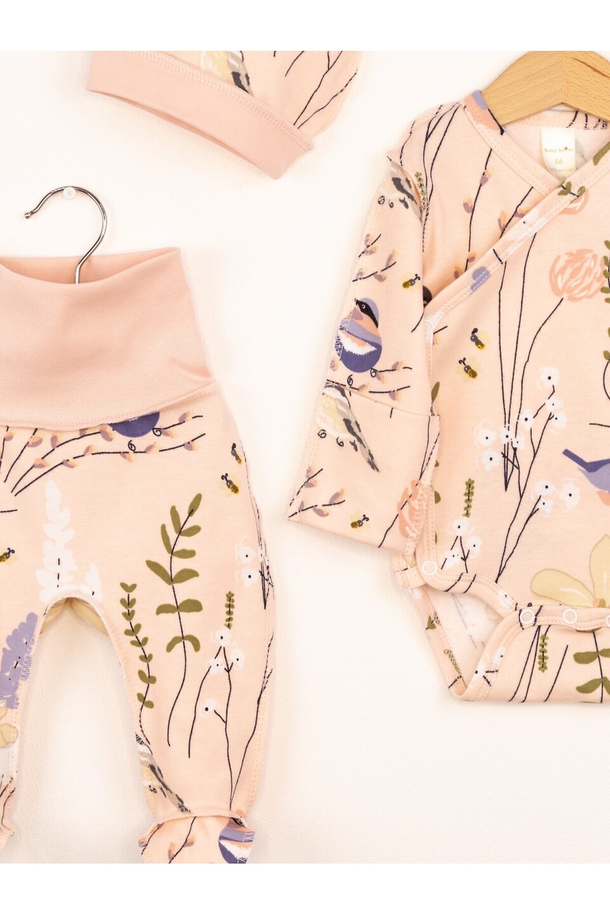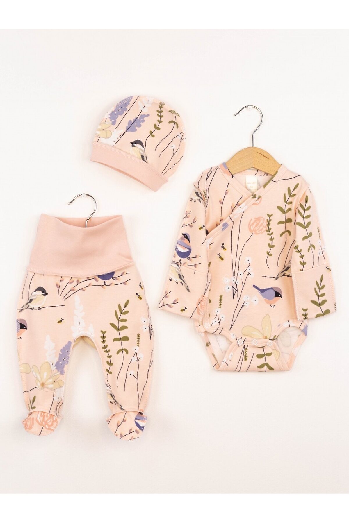 Комплект (Боди+Ползунки+Шапочка) BABY BOOM, птички на розовом
