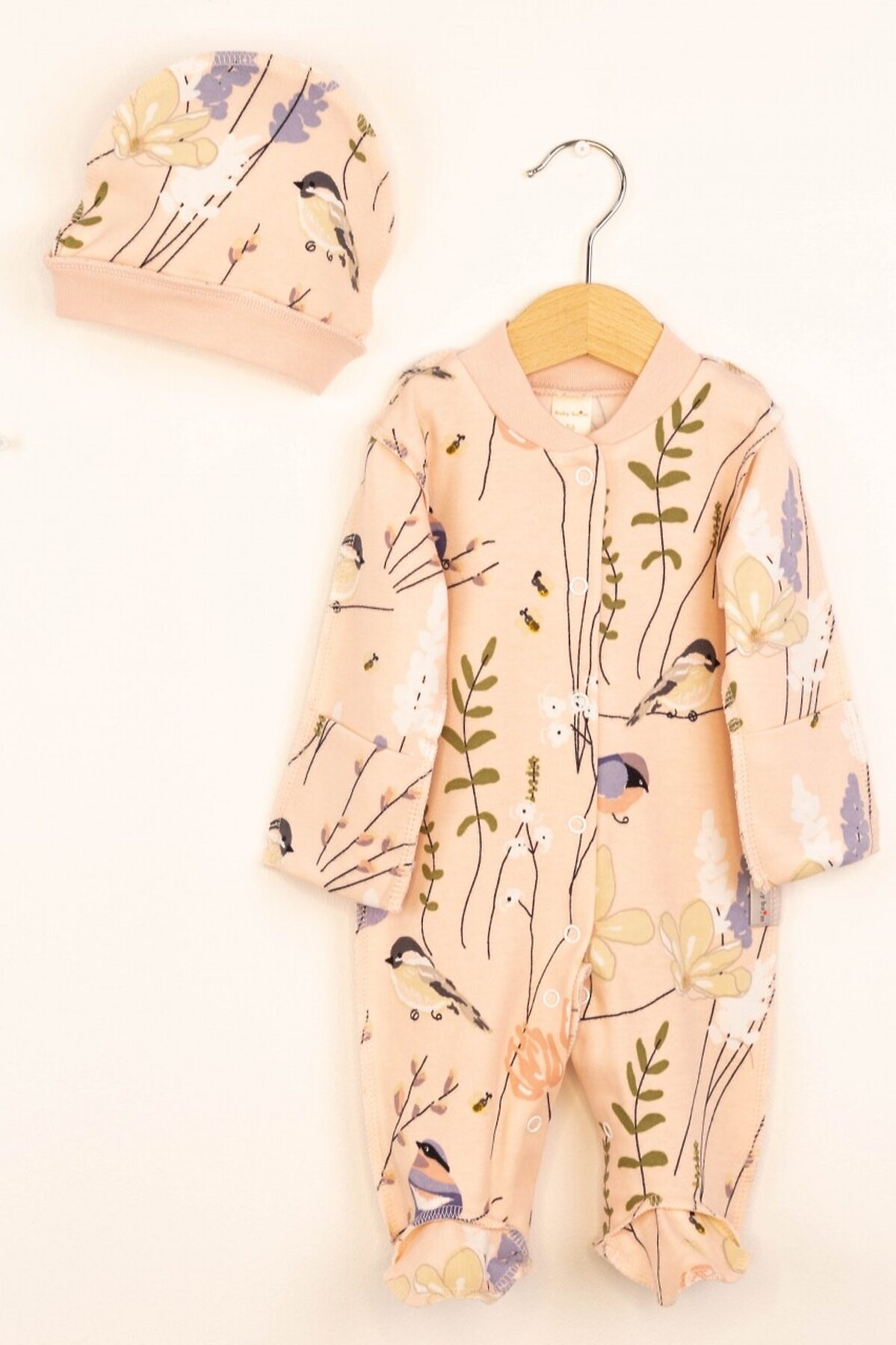Комплект (Комбинезон+Шапочка) BABY BOOM, птички на розовом