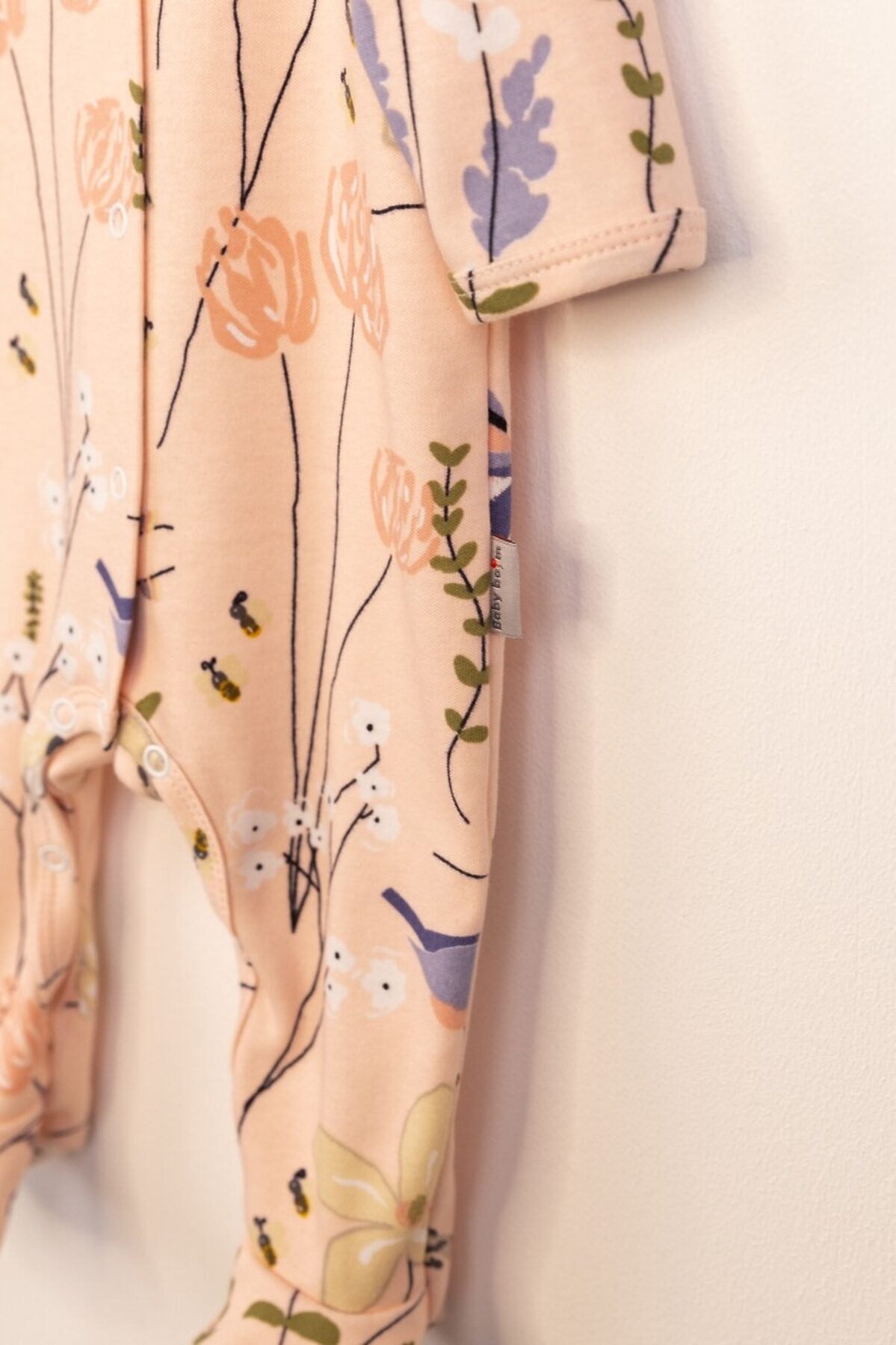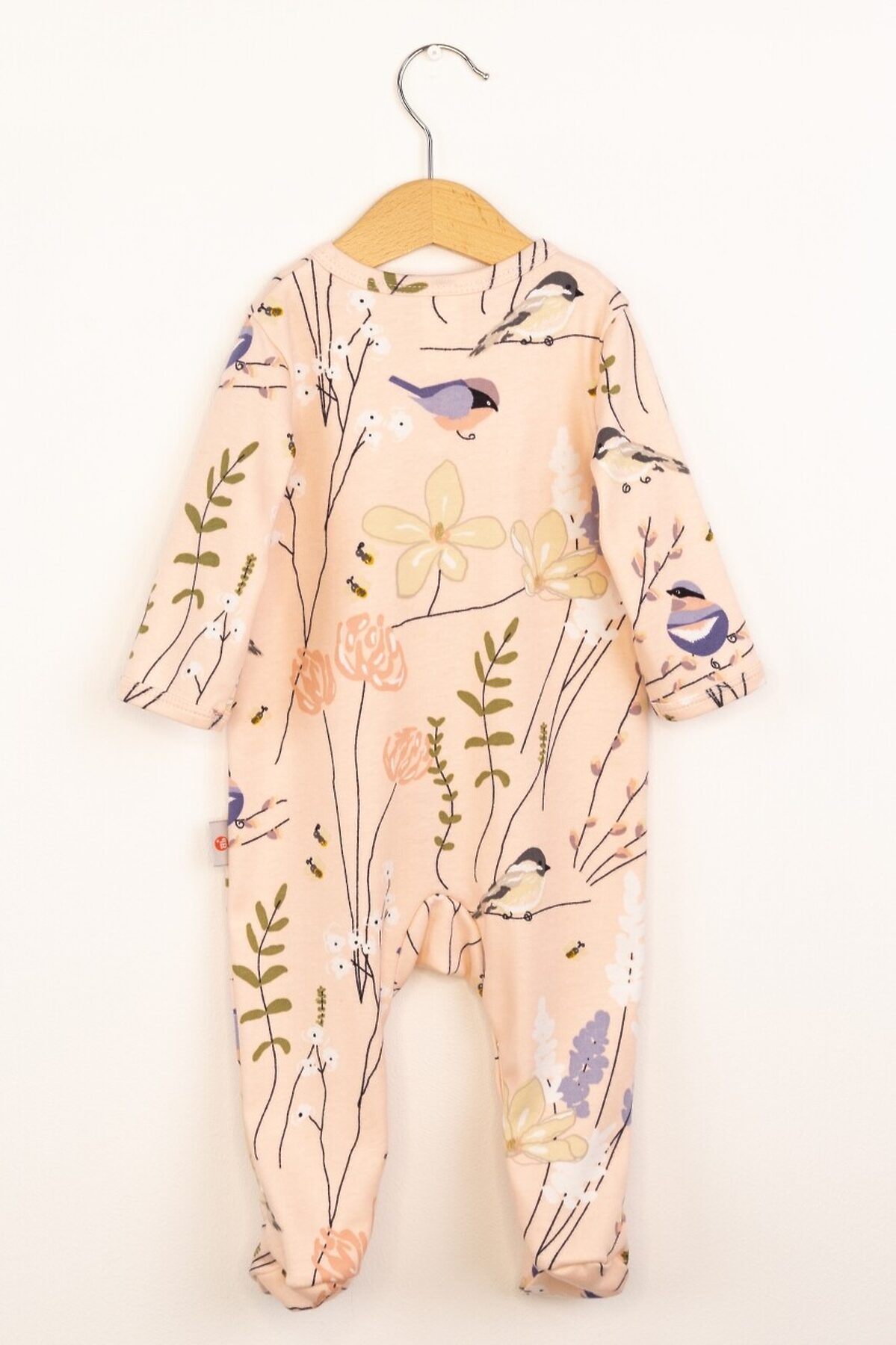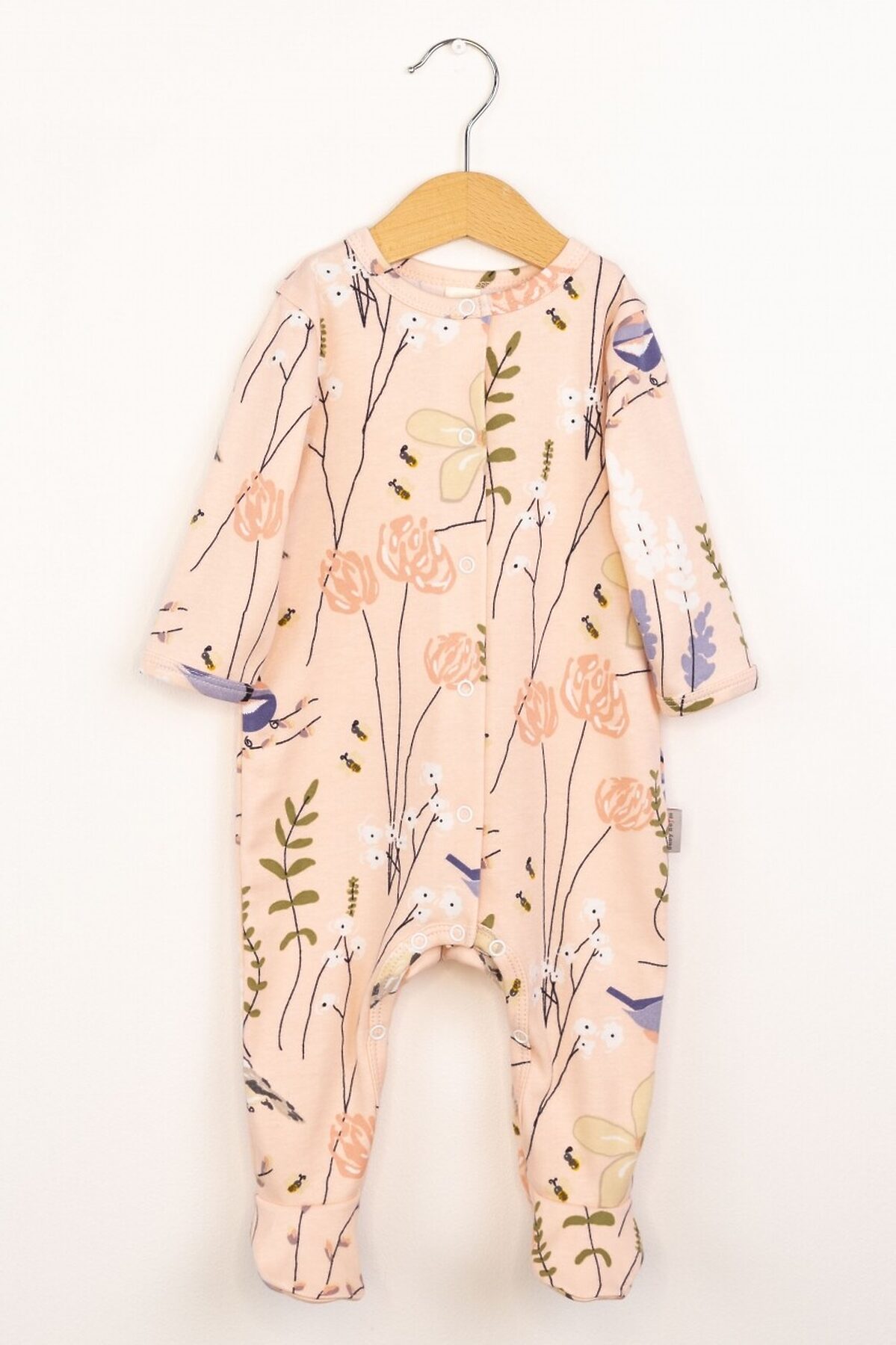 Комбинезон выполнен из нежного набивного интерлока (100% хлопок). Рубашечный рукав, распашная застежка на кнопках по переду.
