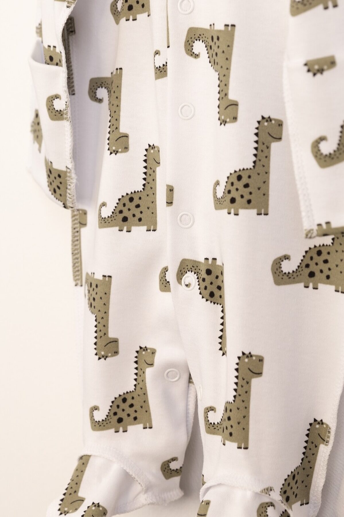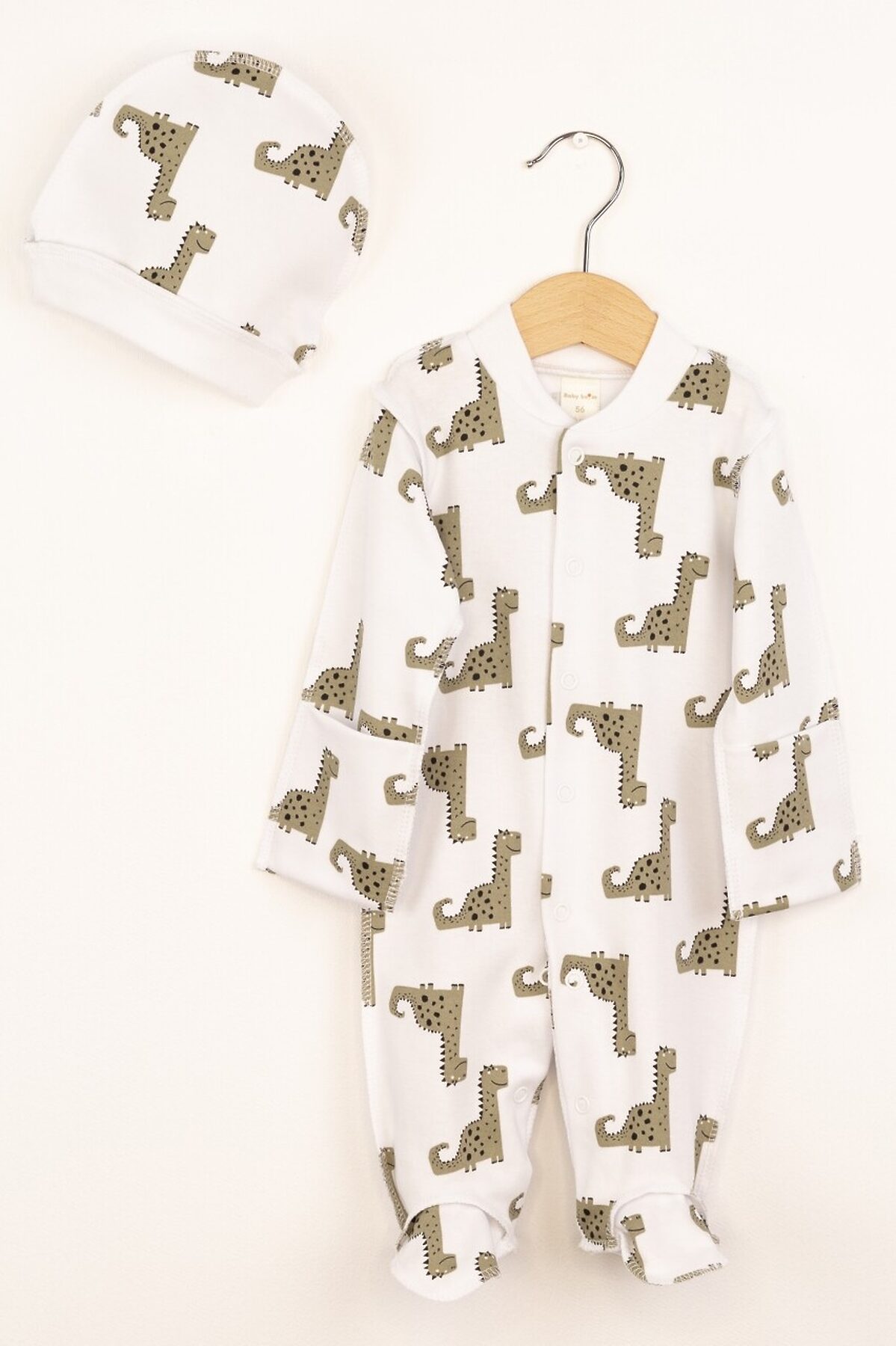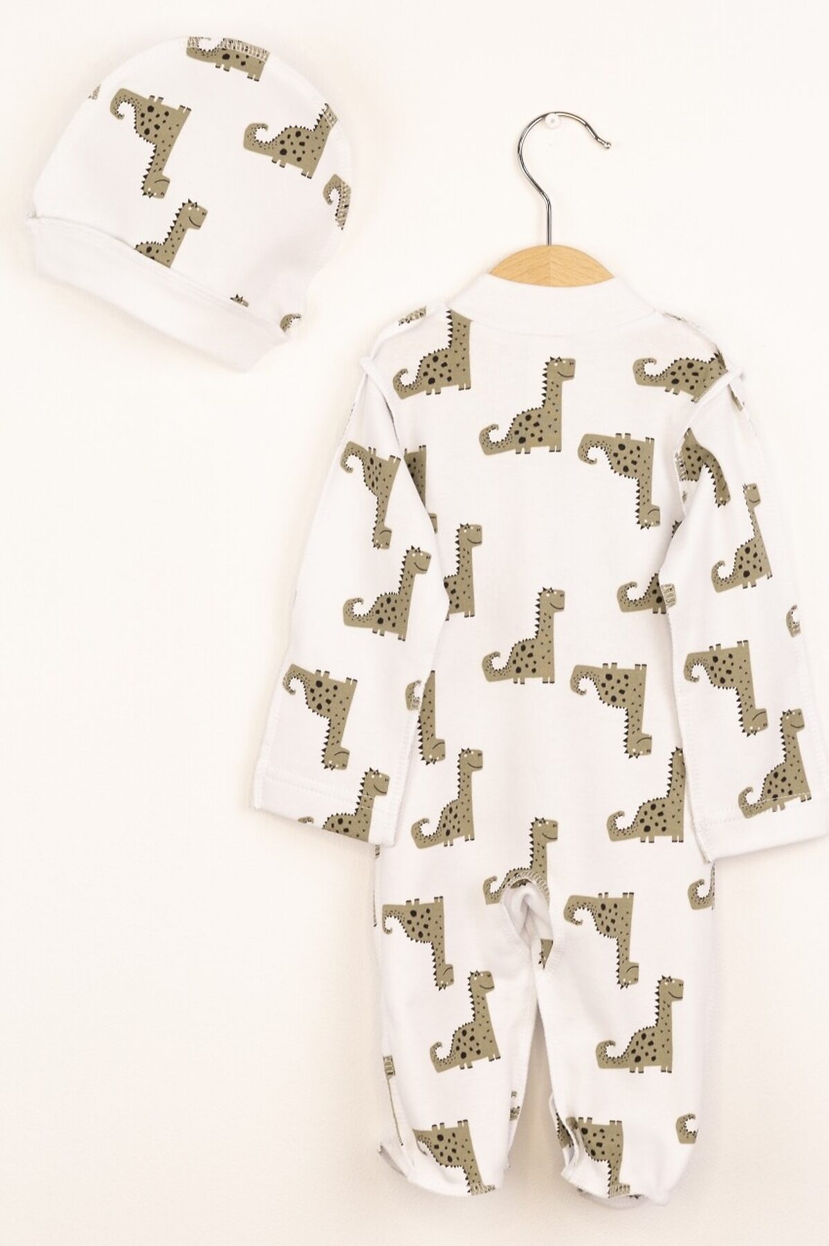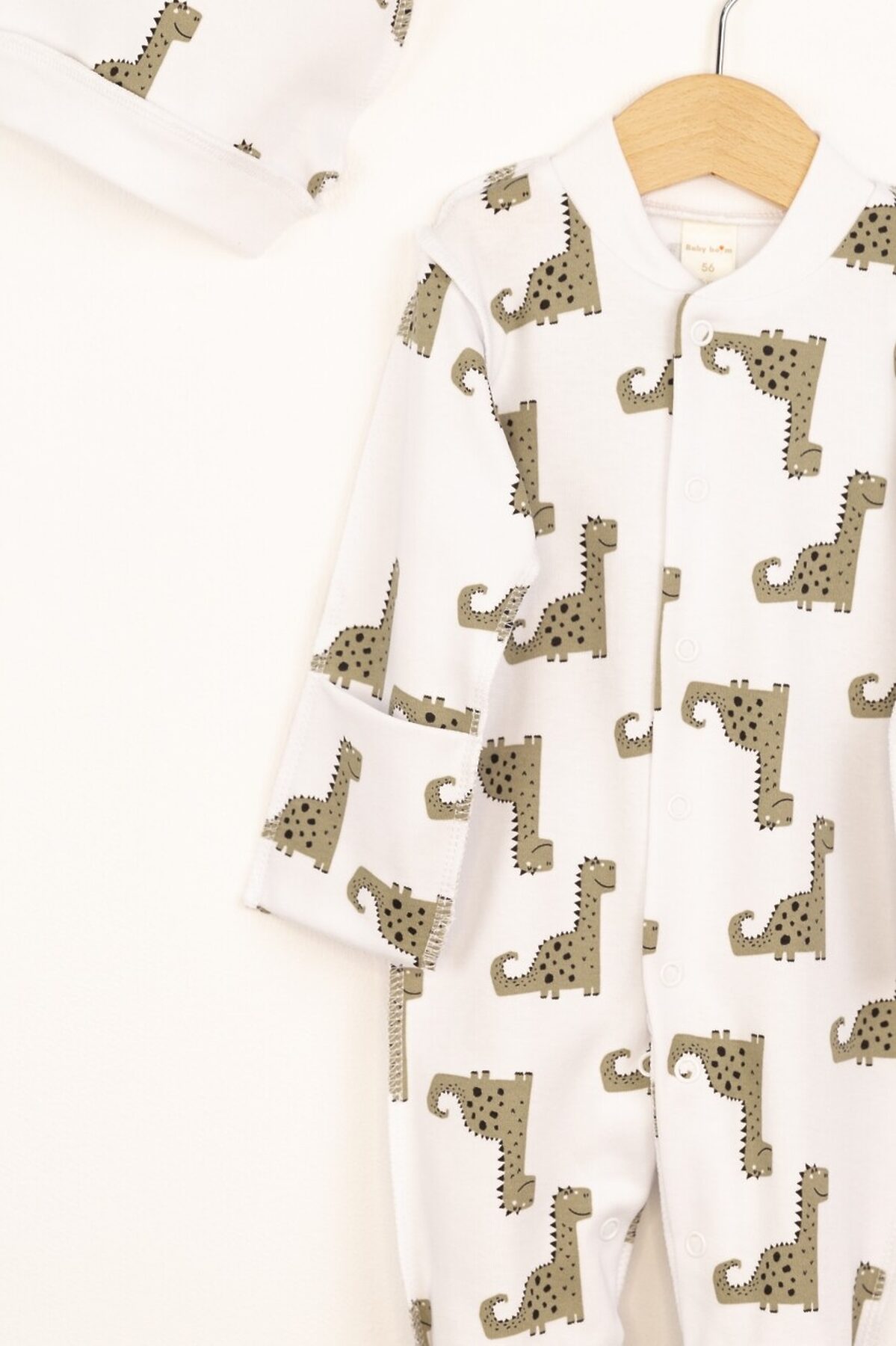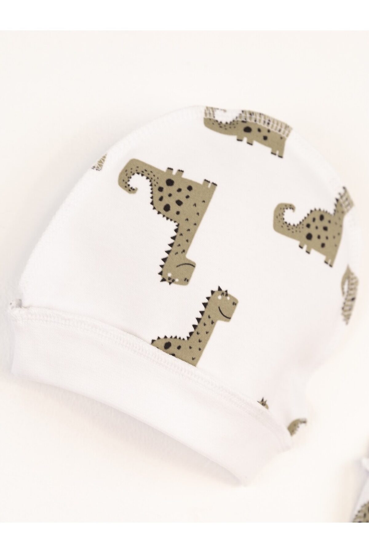 Комплект (Комбинезон+Шапочка) BABY BOOM, динозаврики на белом