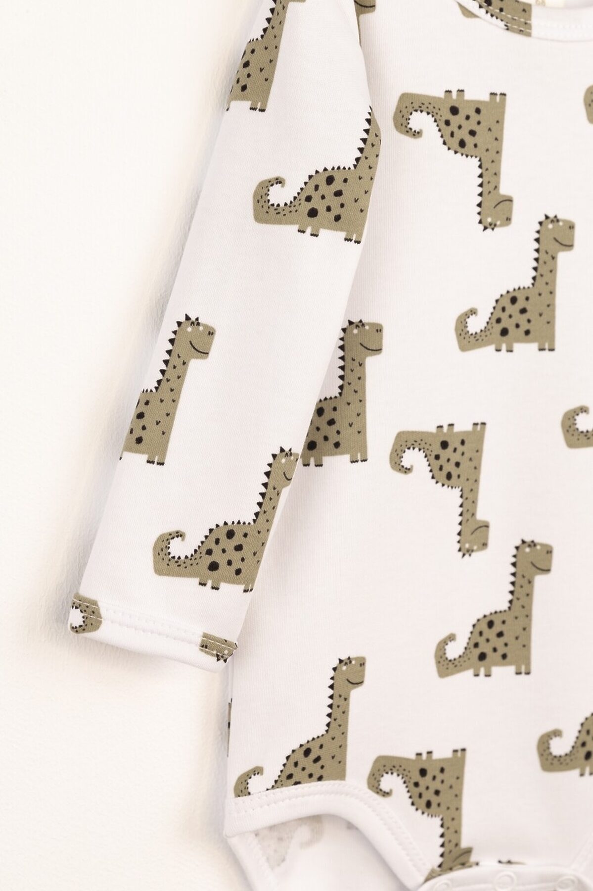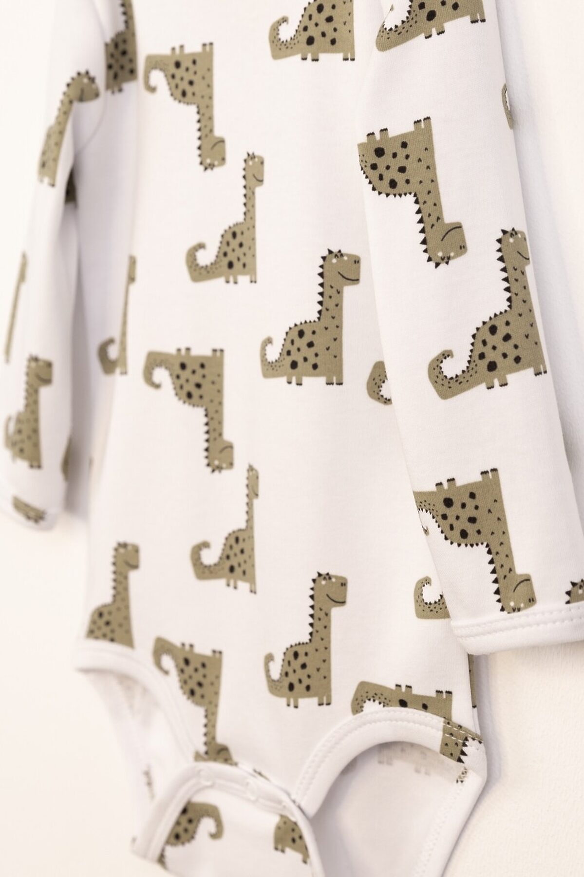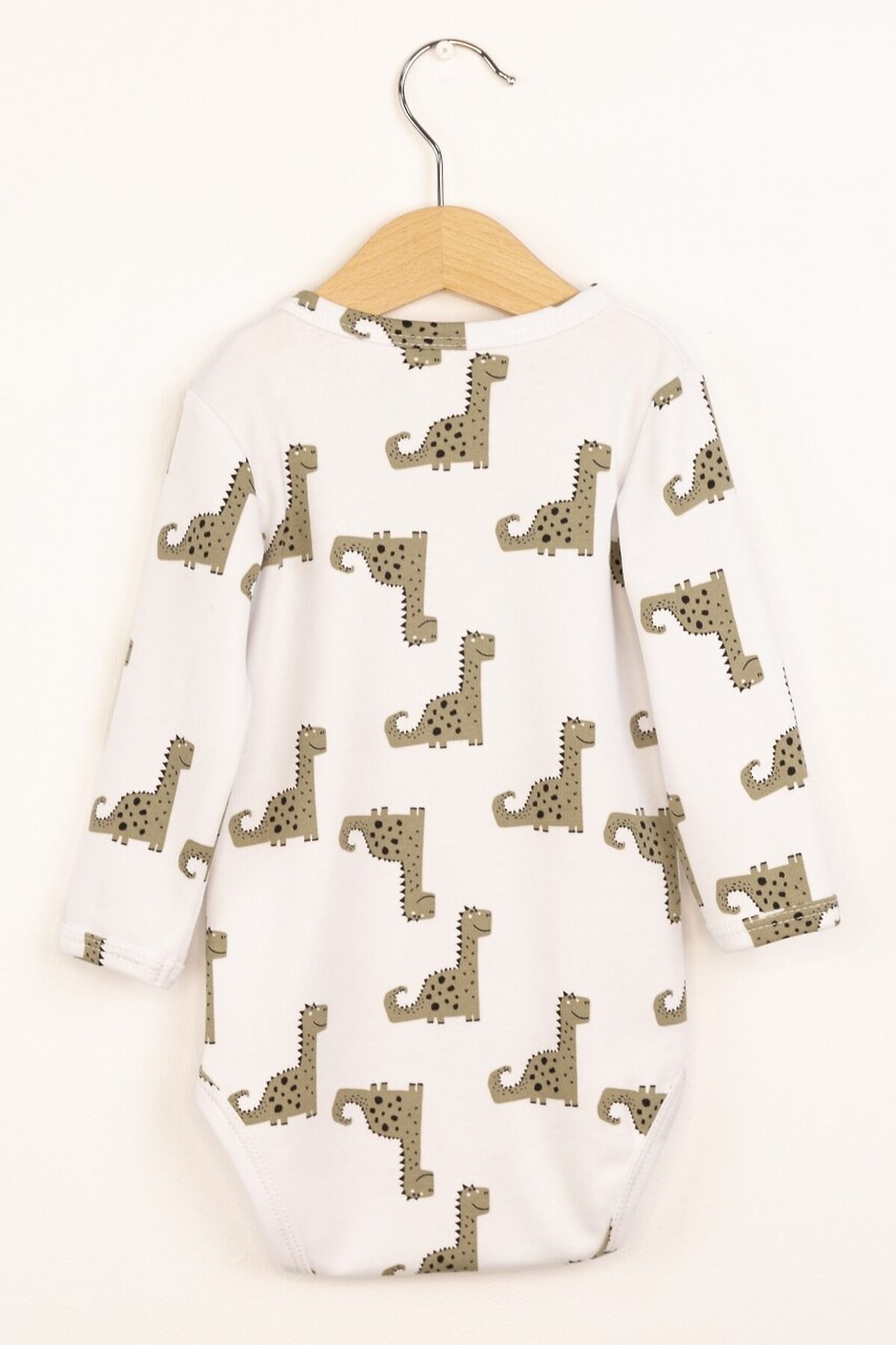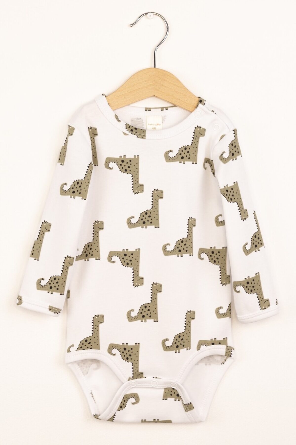 Боди с длинным рукавом из набивного интерлока (100% хлопок). Застежка на кнопках по плечу и низу изделия.