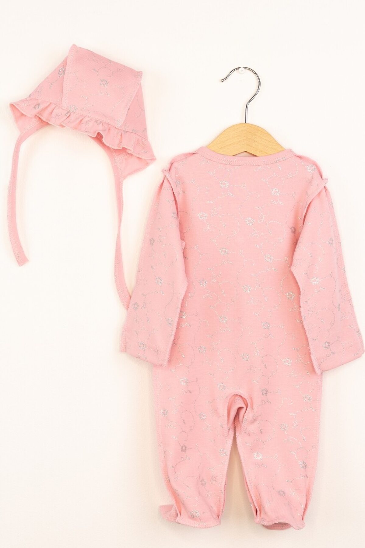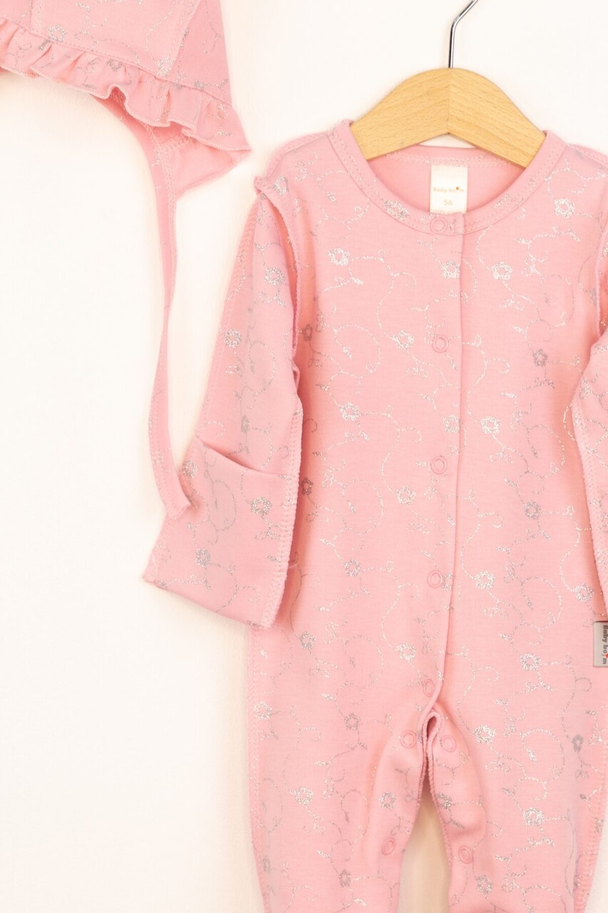 Комплект (Комбинезон+Чепчик) BABY BOOM, розовый с глиттером