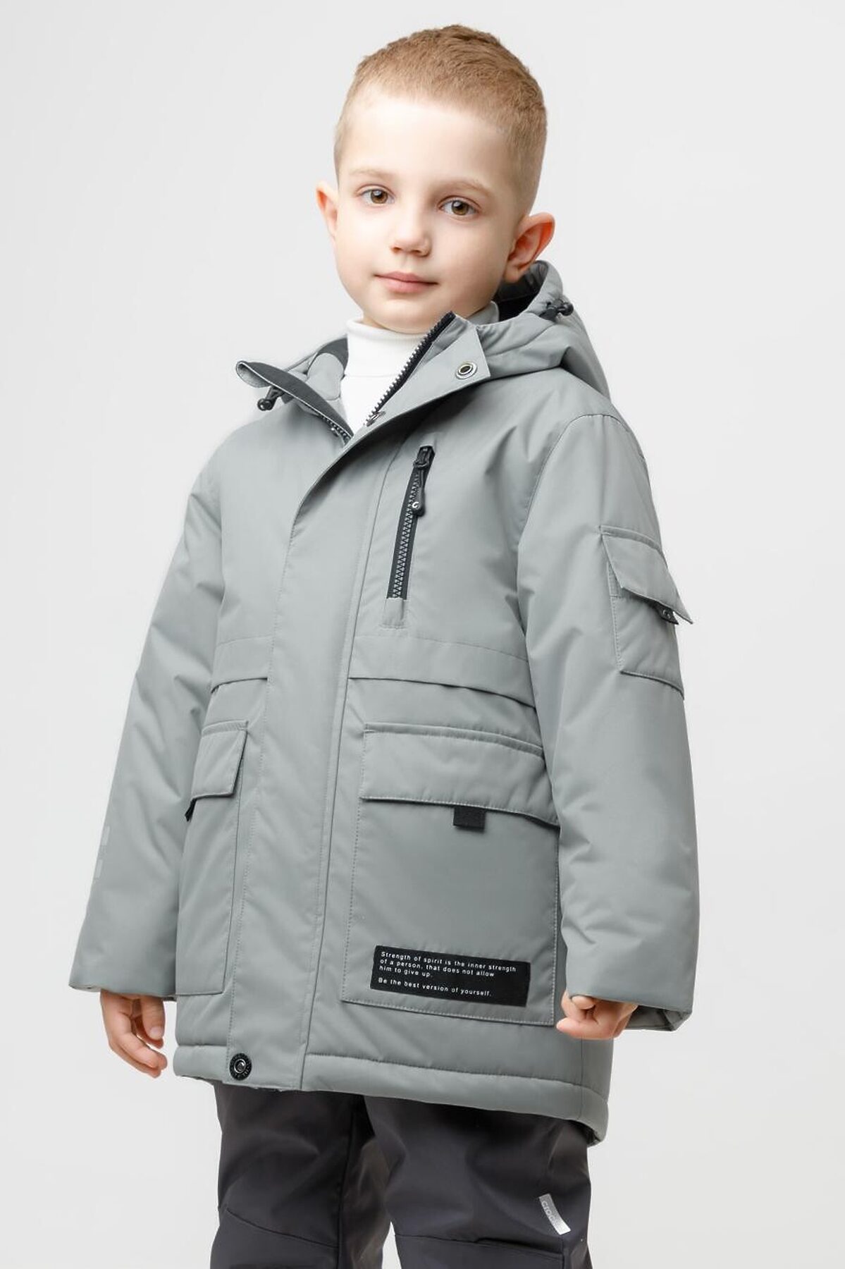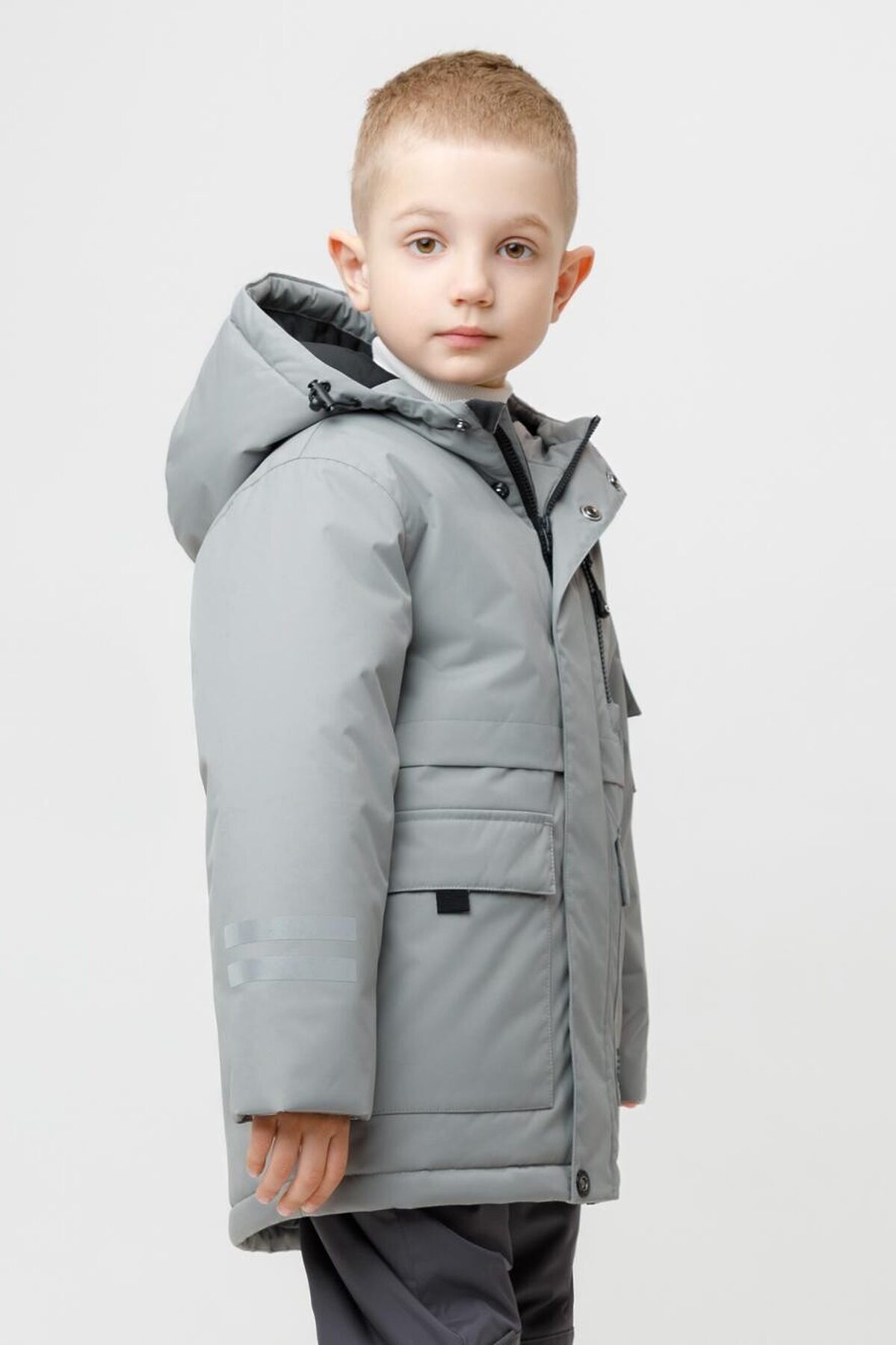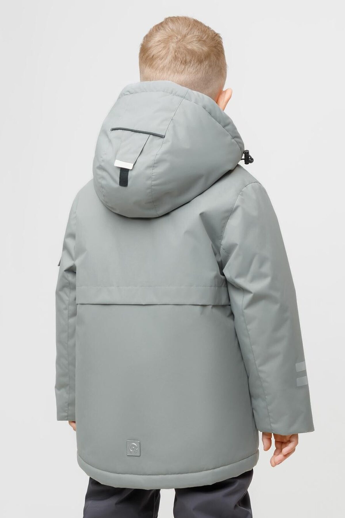 Зимняя куртка для мальчика с утеплителем SEE®: 250 г/м2. Выполнена из мембранной ткани с дополнительной тефлоновой обработкой, которая предохраняет изделие от загрязнений и отталкивает влагу. Подклад выполнен из 100% полиэстера Tricot. Куртка застёгивается на молнию и на дополнительную планку с кнопками. У изделия предусмотрена защита подбородка. Несъёмный капюшон имеет эластичную утяжку со стопперами, глубина капюшона регулируется при помощи липучки. На рукавах внутренние эластичные манжеты. Два накладных кармана с клапанами по бокам и один карман на груди. Во всех изделиях верхнего ассортимента для безопасности ребёнка предусмотрены светоотражающие элементы.