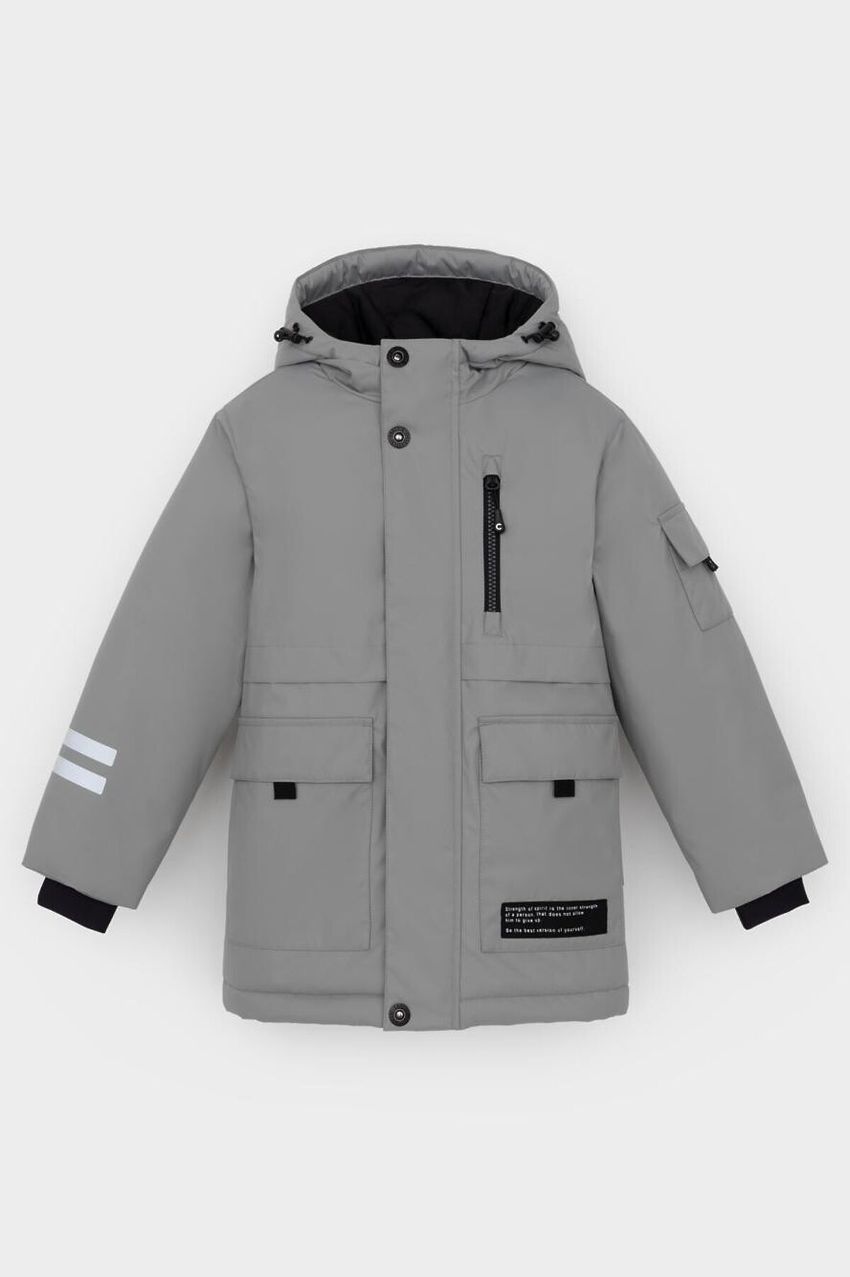 Зимняя куртка для мальчика с утеплителем SEE®: 250 г/м2. Выполнена из мембранной ткани с дополнительной тефлоновой обработкой, которая предохраняет изделие от загрязнений и отталкивает влагу. Подклад выполнен из 100% полиэстера Tricot. Куртка застёгивается на молнию и на дополнительную планку с кнопками. У изделия предусмотрена защита подбородка. Несъёмный капюшон имеет эластичную утяжку со стопперами, глубина капюшона регулируется при помощи липучки. На рукавах внутренние эластичные манжеты. Два накладных кармана с клапанами по бокам и один карман на груди. Во всех изделиях верхнего ассортимента для безопасности ребёнка предусмотрены светоотражающие элементы.