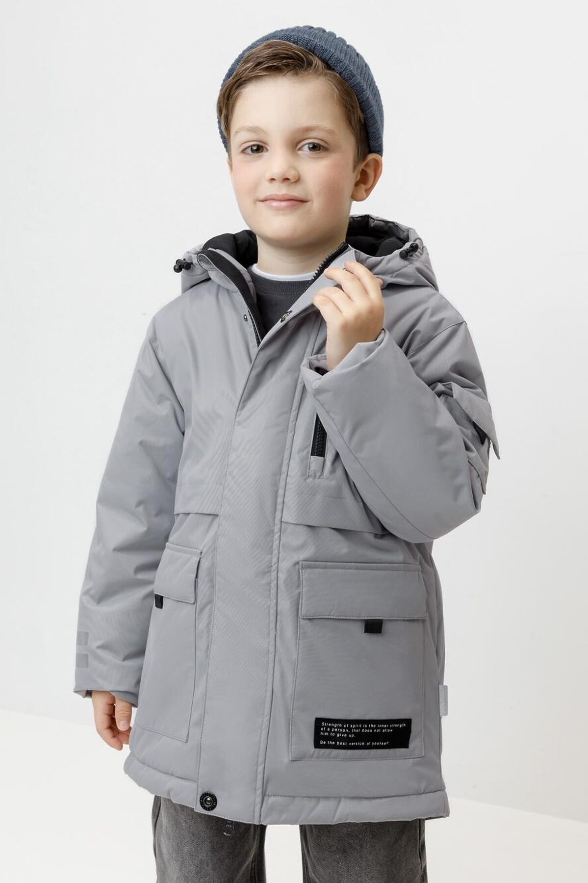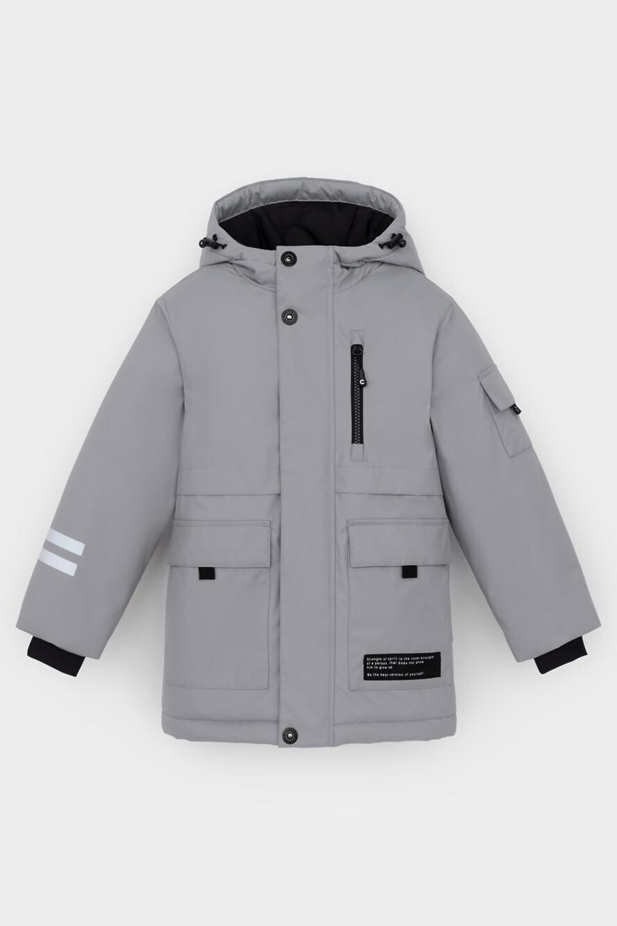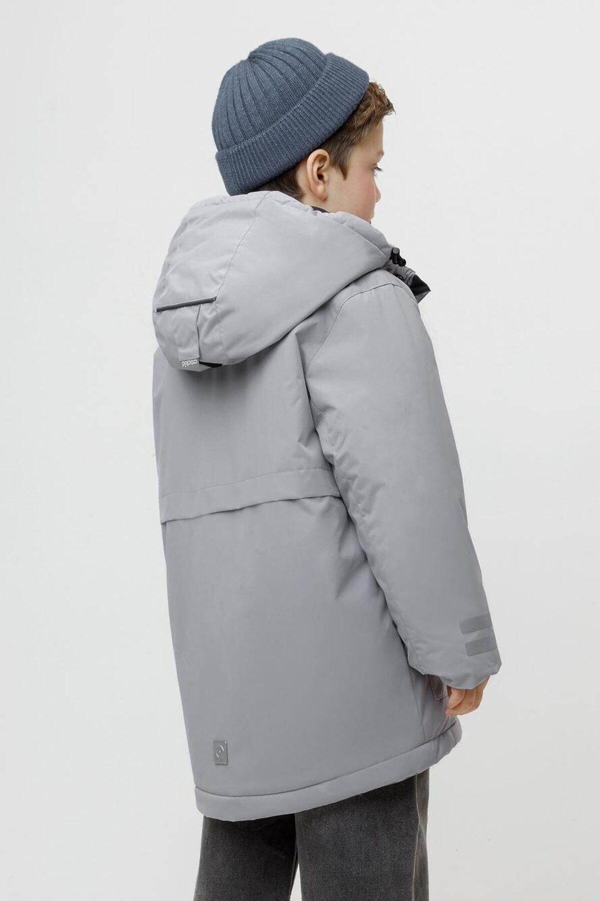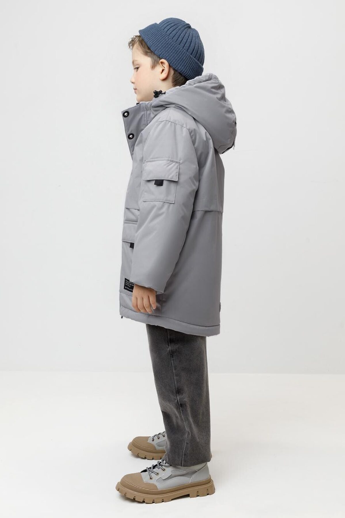 Зимняя куртка для мальчика с утеплителем SEE®: 250 г/м2. Выполнена из мембранной ткани с дополнительной тефлоновой обработкой, которая предохраняет изделие от загрязнений и отталкивает влагу. Подклад выполнен из 100% полиэстера Tricot. Куртка застёгивается на молнию и на дополнительную планку с кнопками. У изделия предусмотрена защита подбородка. Несъёмный капюшон имеет эластичную утяжку со стопперами, глубина капюшона регулируется при помощи липучки. На рукавах внутренние эластичные манжеты. Два накладных кармана с клапанами по бокам и один карман на груди. Во всех изделиях верхнего ассортимента для безопасности ребёнка предусмотрены светоотражающие элементы.