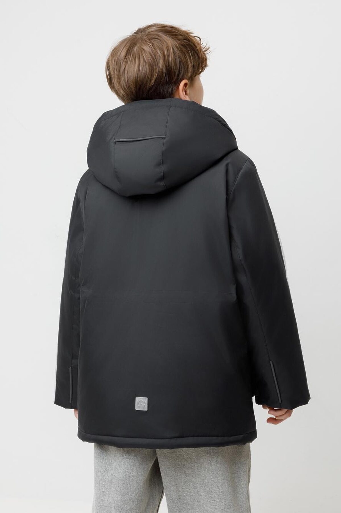 Зимняя куртка для мальчика с утеплителем SEE®: 250 г/м2. Выполнена из мембранной ткани с дополнительной тефлоновой обработкой, которая предохраняет изделие от загрязнений и отталкивает влагу. Подклад выполнен из 100% полиэстера Tricot. Куртка застёгивается на молнию и внешнюю планку с магнитными кнопками, предусмотрена защита подбородка. Съёмный капюшон на кнопках и липучках имеет эластичную утяжку со стопперами. На рукавах внутренние эластичные манжеты. Два накладных кармана с клапанами по бокам и два кармана с молниями на груди. По талии эластичная утяжка со стопперами. Во всех изделиях верхнего ассортимента для безопасности ребёнка предусмотрены светоотражающие элементы.