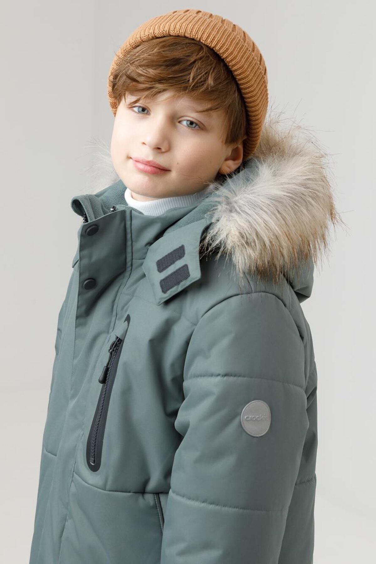 Зимнее пальто для мальчика с утеплителем SEE®: 300 г/м2. Выполнено из мембранной ткани с дополнительной тефлоновой обработкой, которая предохраняет изделие от загрязнений и отталкивает влагу. Подклад выполнен из 100% полиэстера Tricot. Пальто застёгивается на молнию и внешнюю планку с кнопками. Съёмный капюшон имеет эластичную утяжку со стопперами и отстёгивающийся мех на молнии, регулируется по глубине с помощью липучки. На рукавах внутренние эластичные манжеты. По бокам два кармана на молниях и один карман на груди. Во всех изделиях верхнего ассортимента для безопасности ребёнка предусмотрены светоотражающие элементы.