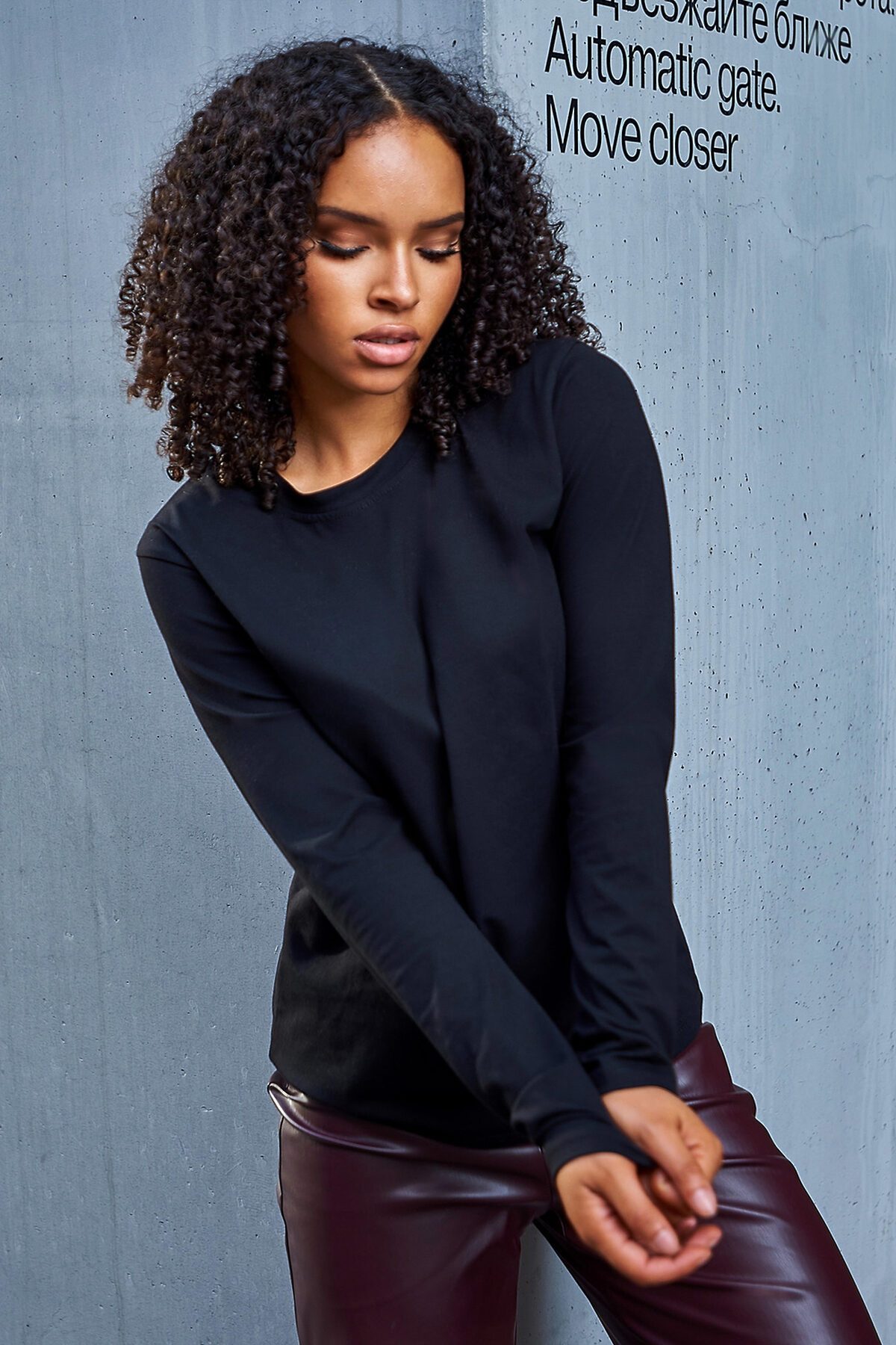 Тренд 2025 осень-лонгслив женский как из pinterest из новой коллекции станет незаменимой вещью в вашем гардеробе. Лонгслив больших размеров женский. Этот лонгслив черный облегающий с круглым вырезом горловины и прямым покроем, выполненный из мягкого и приятного на ощупь материала, качества компакт-пенье, подарит вам комфорт в течение всего дня. Состав из хлопка (94%) и лайкры (6%) обеспечивает дышащие свойства ткани, что делает его идеальным для носки как в прохладную погоду, так и в тёплые дни. Широкая цветовая гамма позволит вам подобрать лонгслив под любой стиль. Лонгслив-универсальный дизайн и комфортная посадка делают его подходящим как для офиса, так и для школы, а также для повседневной носки. Лонгслив для девочки-отлично подойдет в школу.