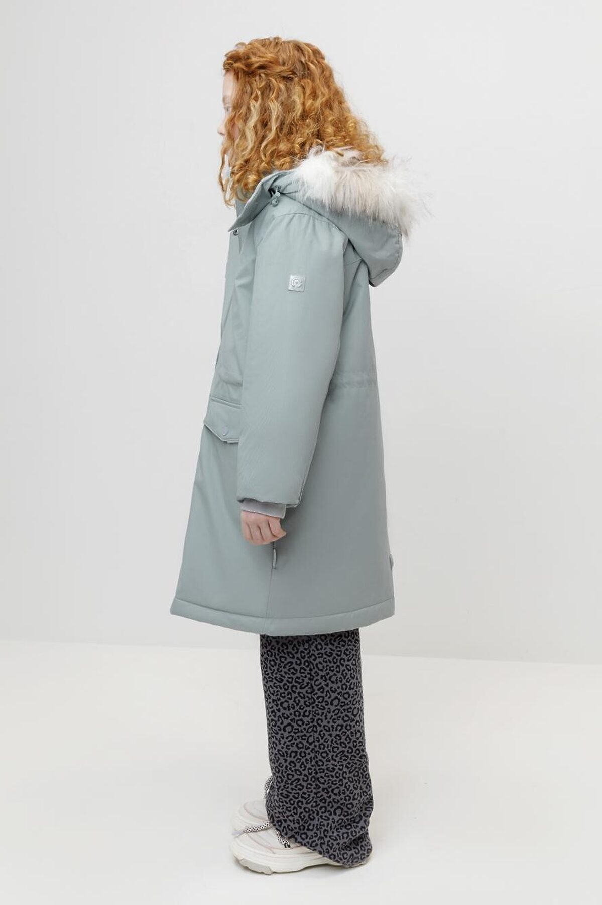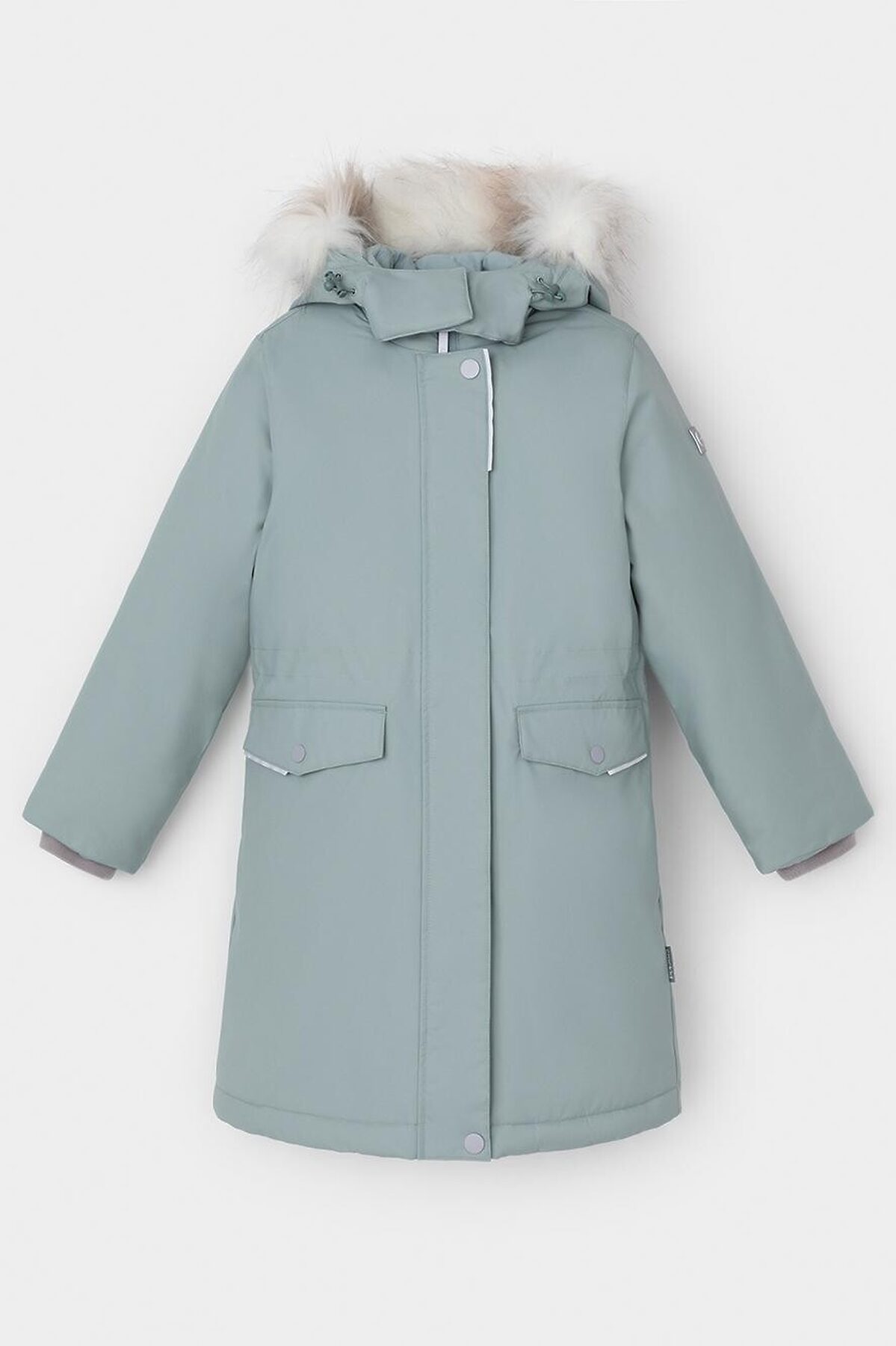Зимнее пальто для девочки с утеплителем SEE®: 250 г/м2. Выполнено из мембранной ткани с дополнительной тефлоновой обработкой, которая предохраняет изделие от загрязнений и отталкивает влагу. Подклад выполнен из 100% полиэстера Tricot. Пальто застёгивается на молнию, предусмотрена защита подбородка. Съёмный капюшон на кнопках и липучках имеет отстёгивающийся искусственный мех. На рукавах мягкие манжеты. По бокам два кармана с клапанами, внутри карман на молнии. По талии эластичная утяжка со стопперами для регулировки ширины пальто. Во всех изделиях верхнего ассортимента для безопасности ребёнка предусмотрены светоотражающие элементы.