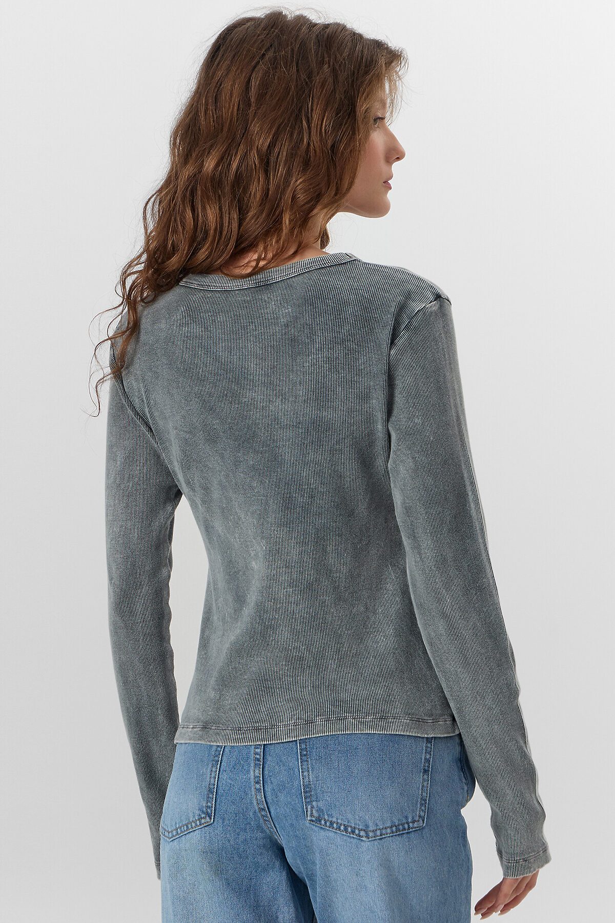 Лонгслив легко комбинируется с деловыми брюками, джинсами или юбками, органично вписываясь в офисный гардероб и образы для отдыха. Сдержанный коричневый оттенок с эффектом acid wash добавляет лонгсливу стильную глубину, а качество материалов гарантирует комфорт в течение всего дня.