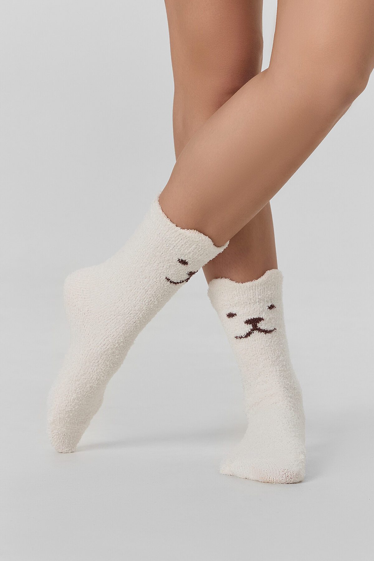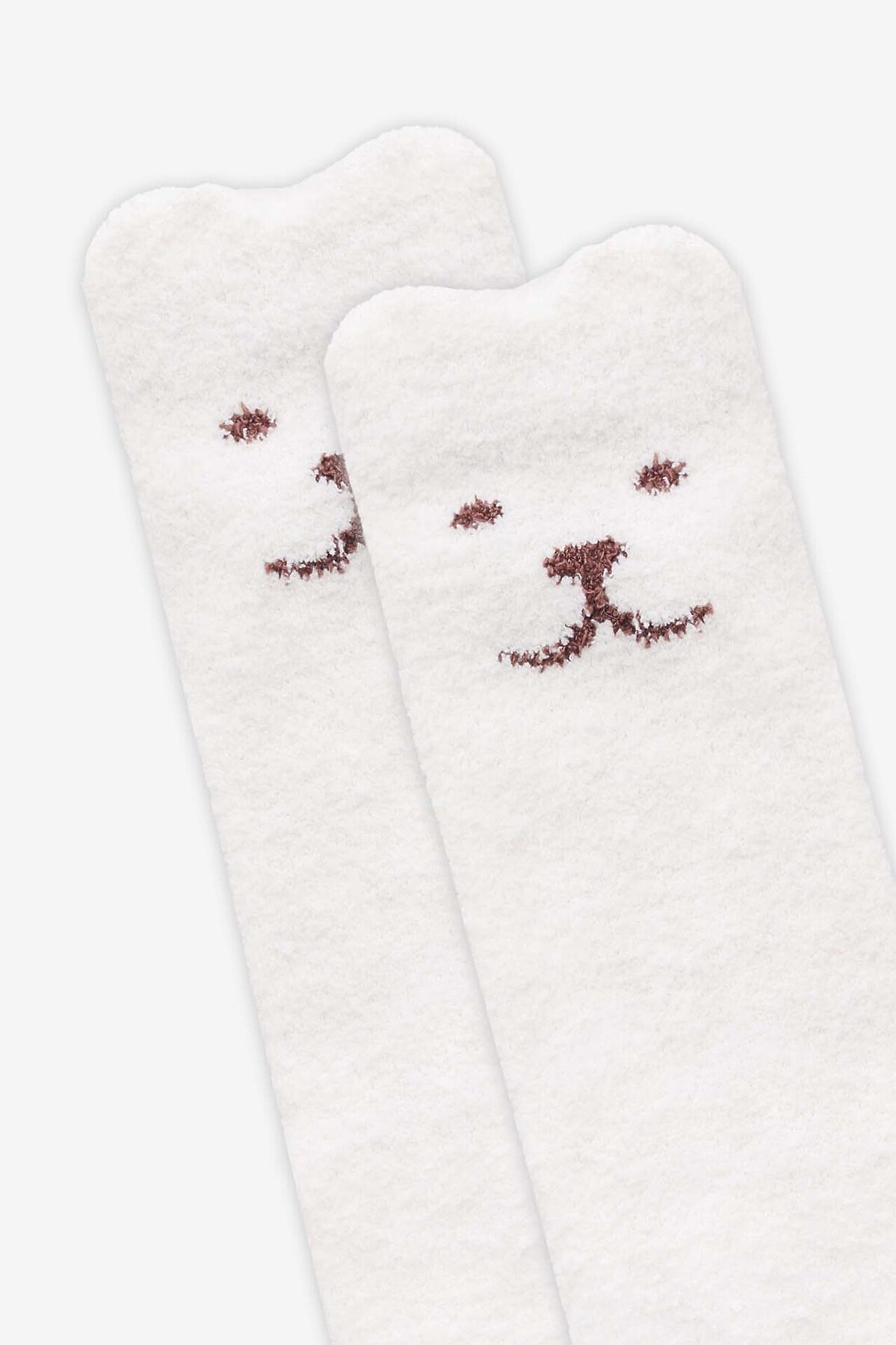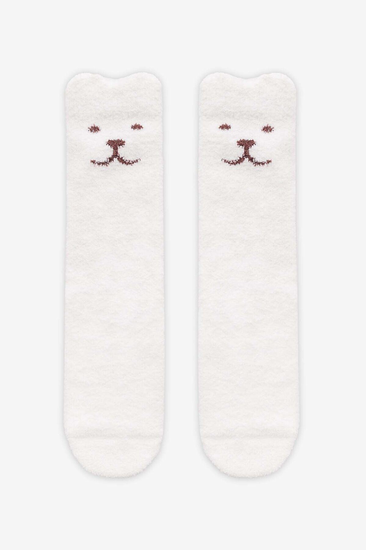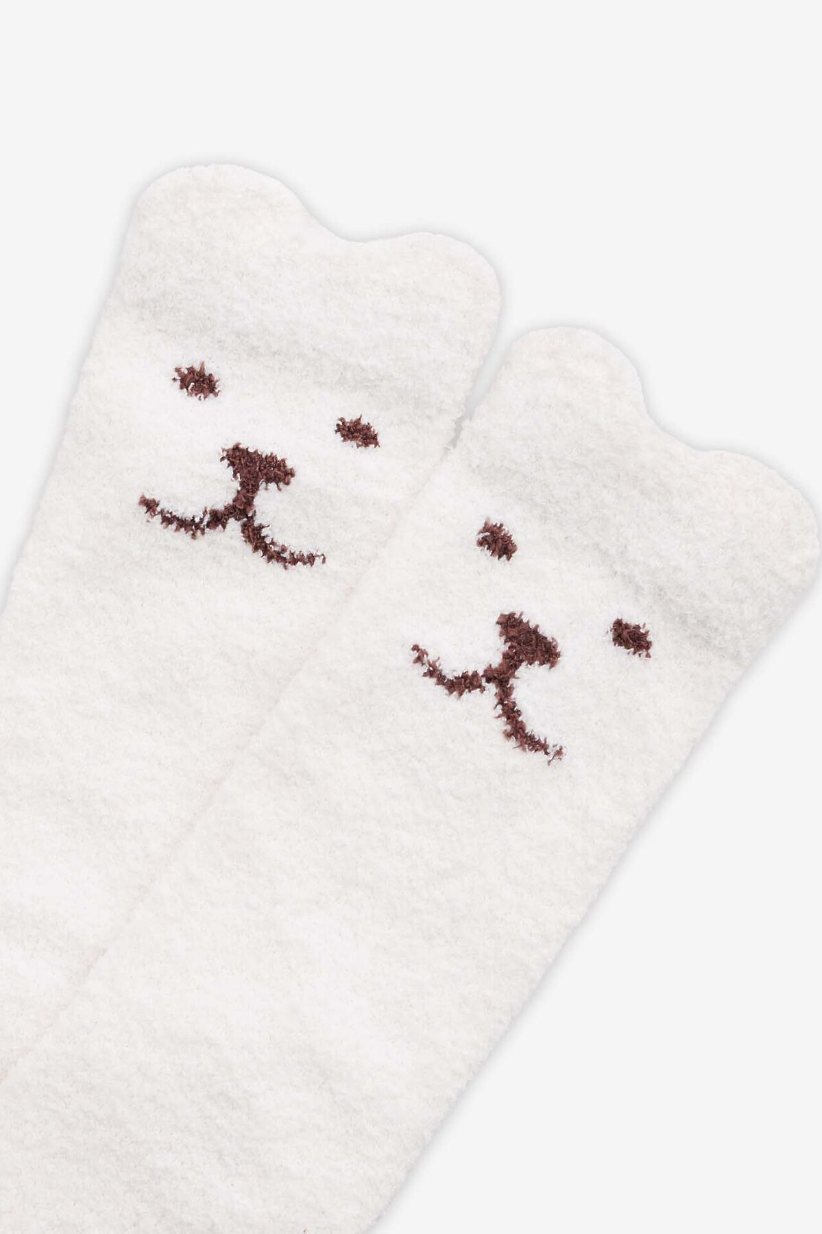 рис.3359 Женские, высокие носки, из каракулевой пряжи с рисунком в виде морды медведя и 3D рисунком на борту.