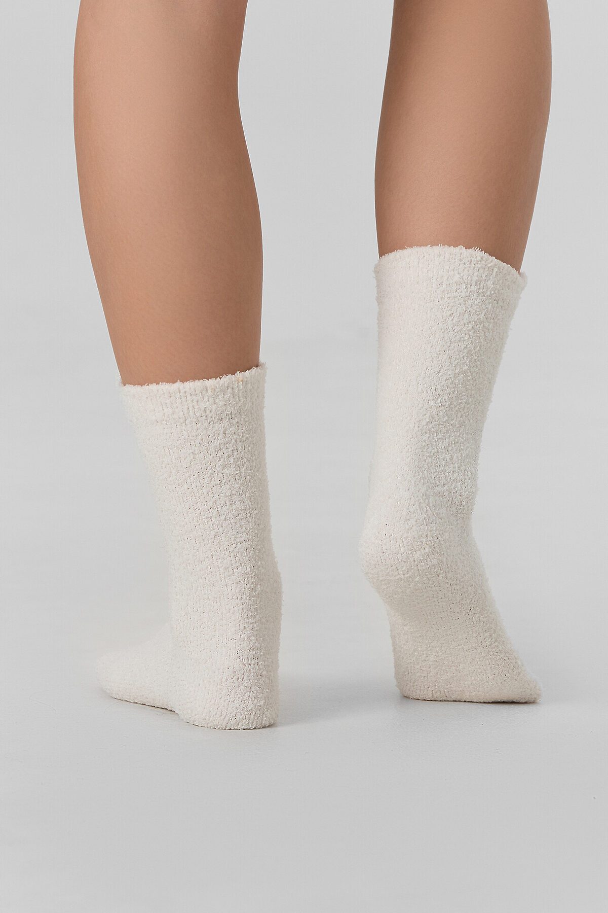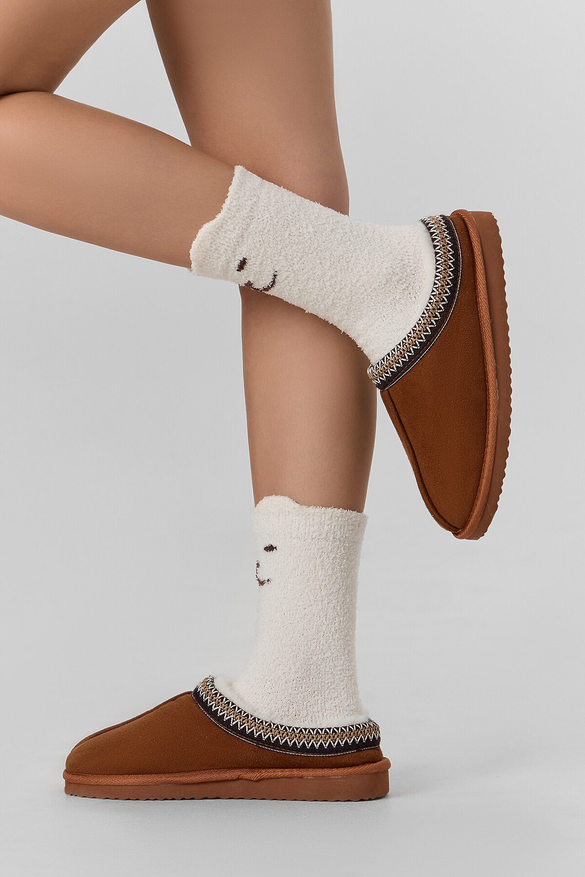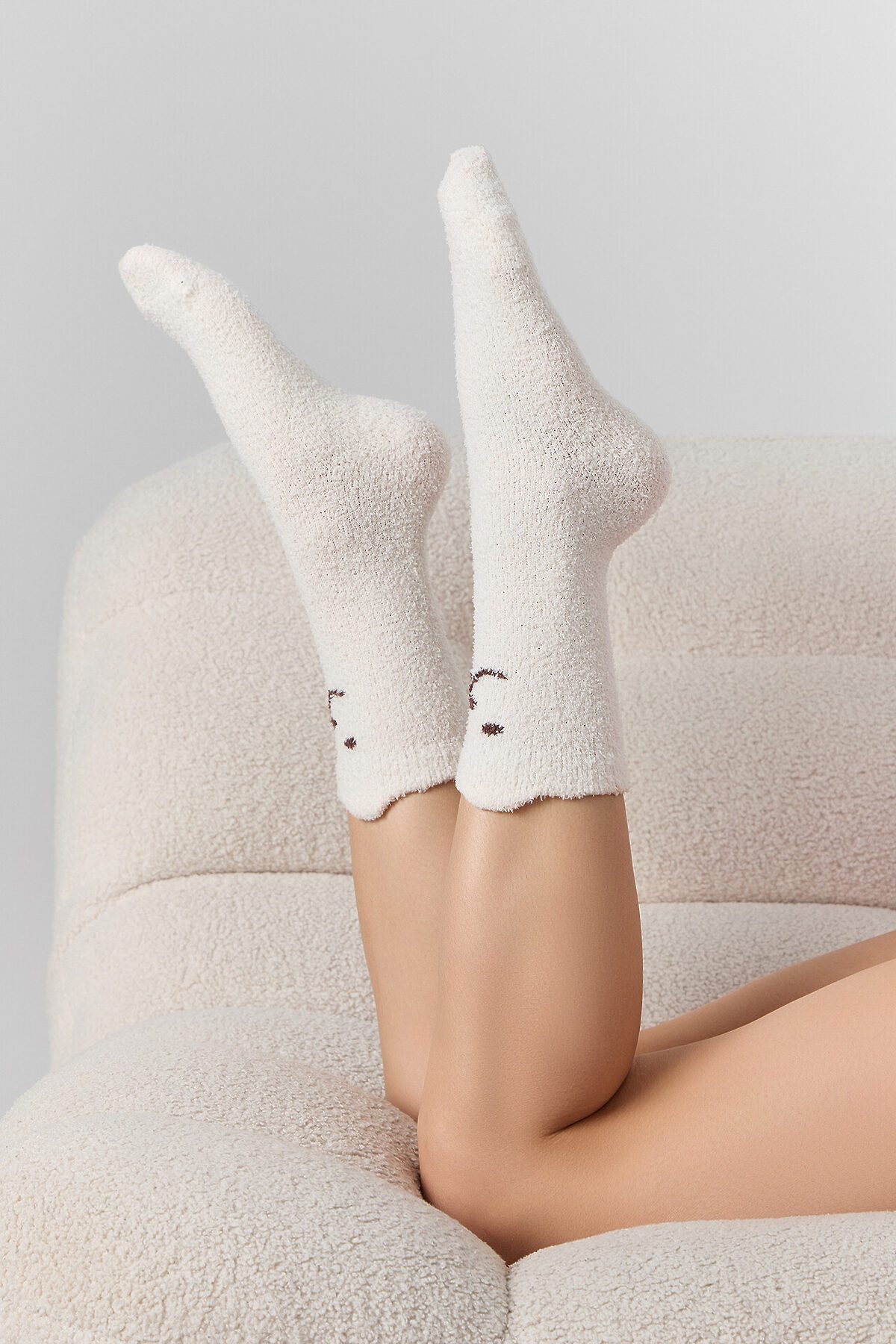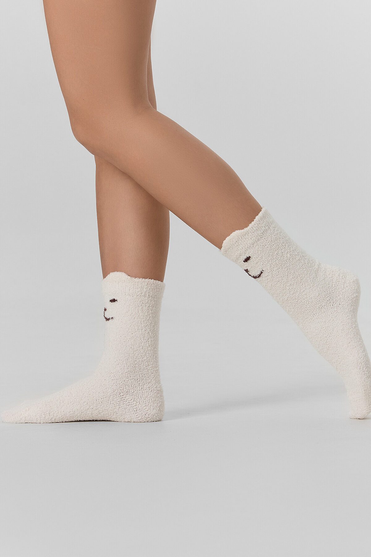 рис.3359 Женские, высокие носки, из каракулевой пряжи с рисунком в виде морды медведя и 3D рисунком на борту.