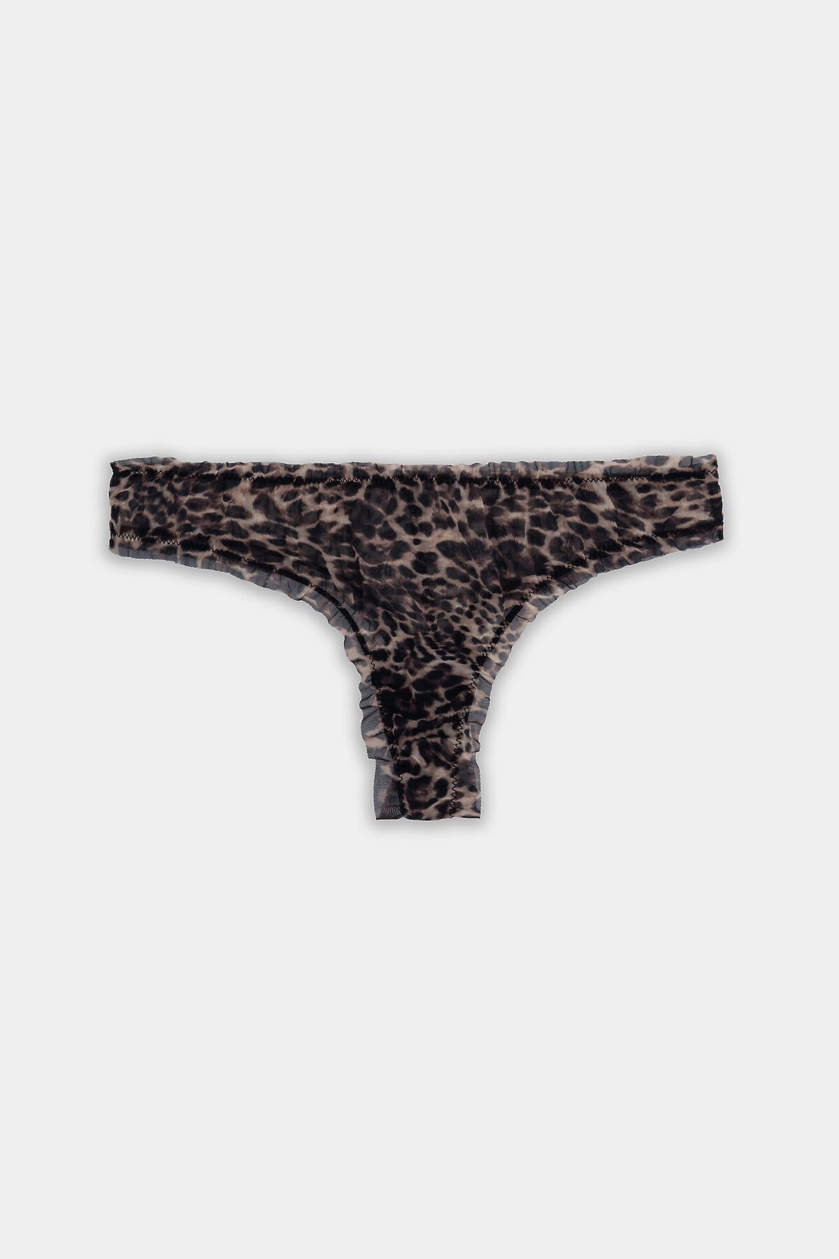 Очаровательные женские трусики бразилиана для повседневной носки и особых случаев, выполненные из эластичного сетчатого материала с набивным рисунком. За счет тонкого и невесомого материала практически не чувствуются на теле. Трусики не выделяются, а это значит, что их можно с удовольствием носить с обтягивающей одеждой. Линия талии средняя. Модель с интригующей рюшей и сборками по ножкам. Красивые, стильные и удобные, лучший вариант для тех, кто устал от обычных классических женских трусиков. Размерный ряд широкий, красивые базовые цвета и модели с принтами - никого не оставят равнодушными. Милый дизайн радует глаз, дополнить такие трусики легко шикарным верхом из линейки нижнего женского белья. Порадуйте себя и близких красивым женским бельем на праздники и просто без повода!