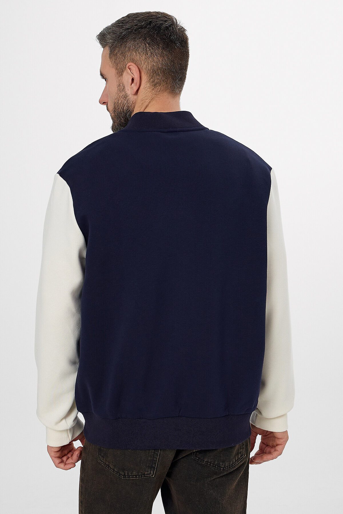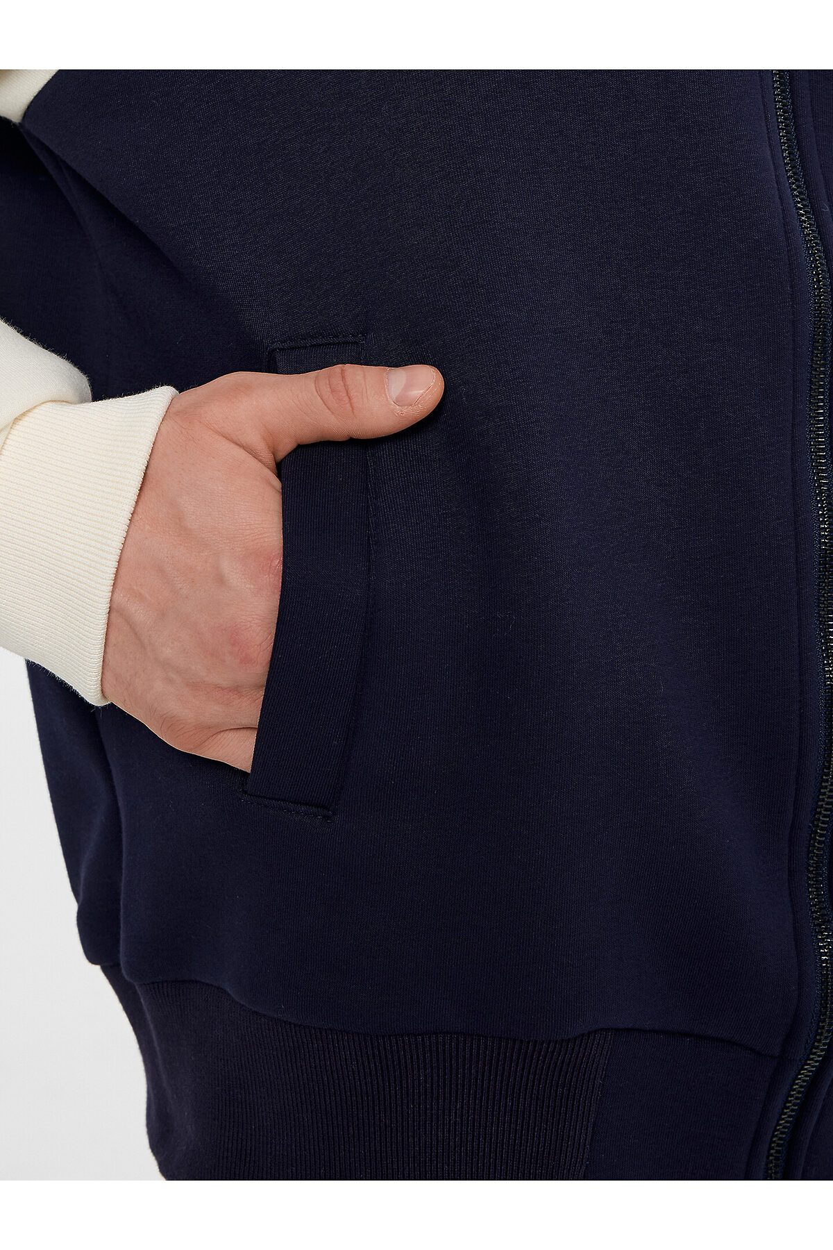 Стильная мужская толстовка в спортивном стиле. Выполнена их трикотажного футера с теплым и нежным подчесом. Силуэт свободный и прямой, длина до середины бедер. Вырез круглый, классический, с воротником-стойкой из довяза. Рукава длинные. Есть удобные боковые карманы. По центру толстовка застегивается на молнию. Отличная модель для отдыха, спорта и городских образов!