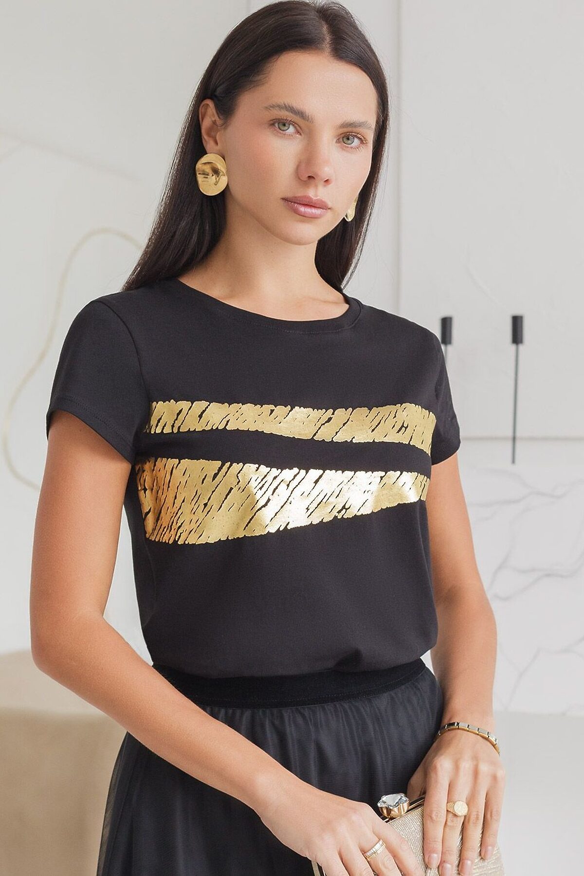 Футболка VILATTE, черный_штрихи