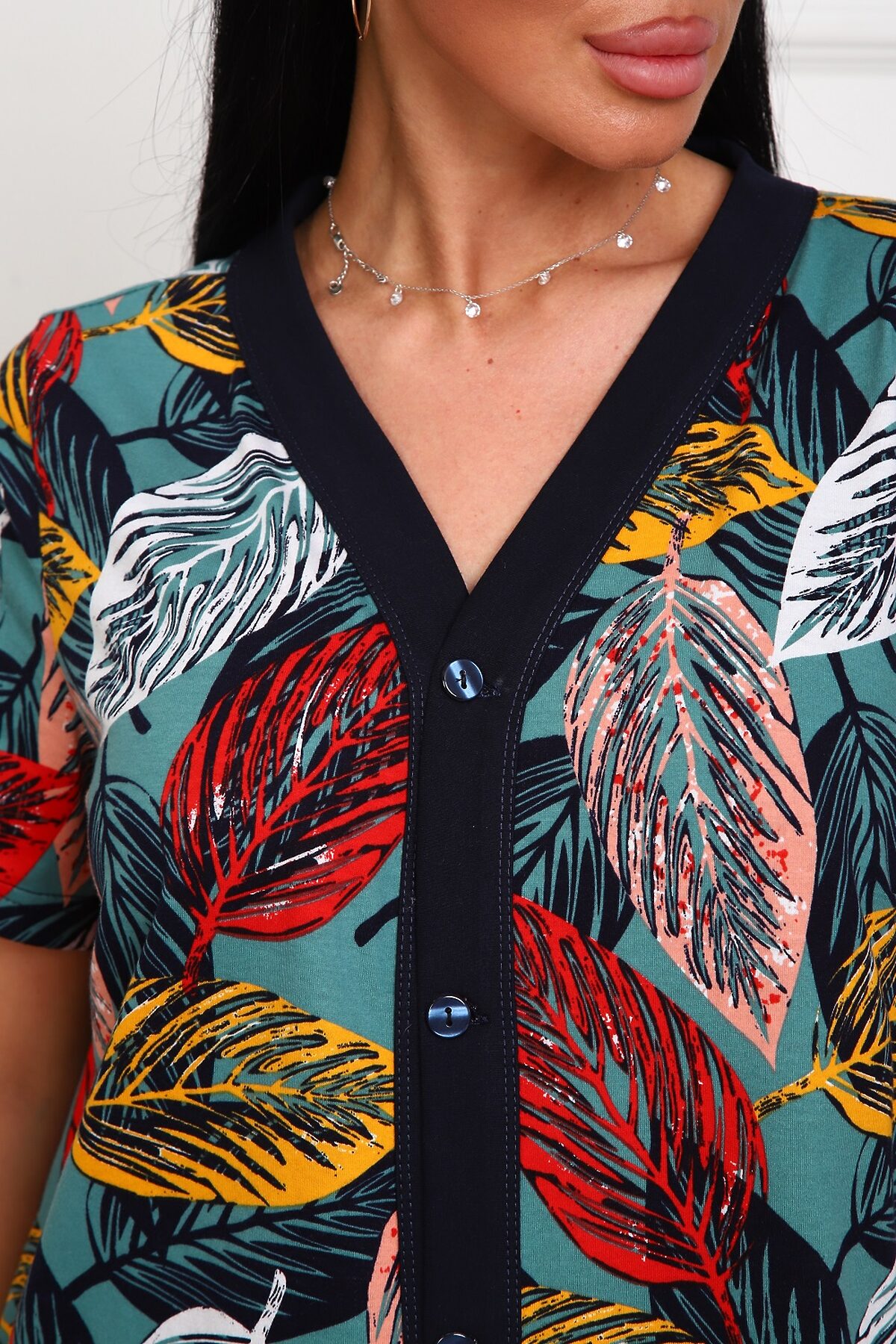 Халат женский на пуговицах, с боковыми карманами, рукава короткие. Удобная посадка, прямой лаконичный силуэт. Комфорт 100% хлопка.