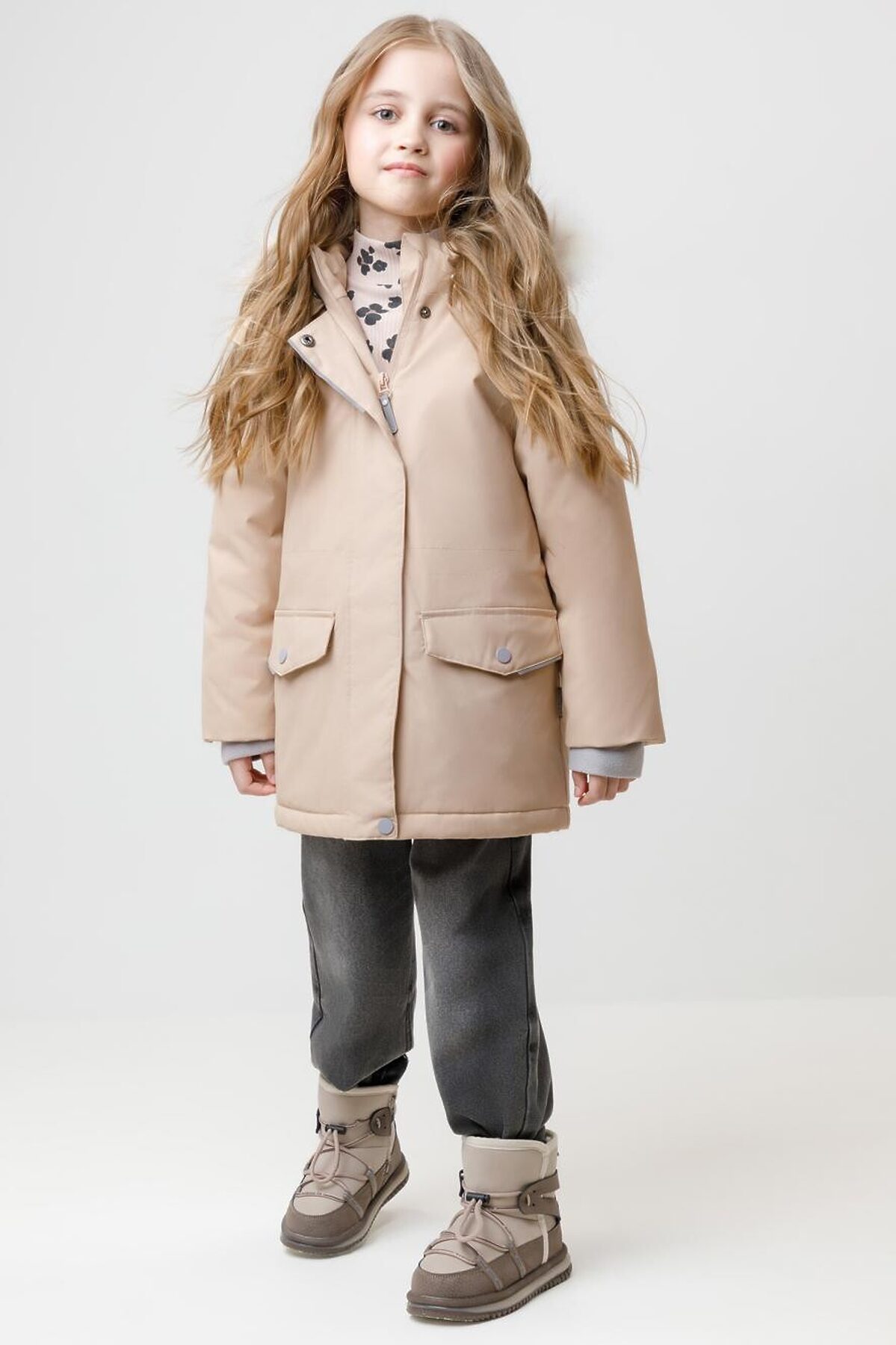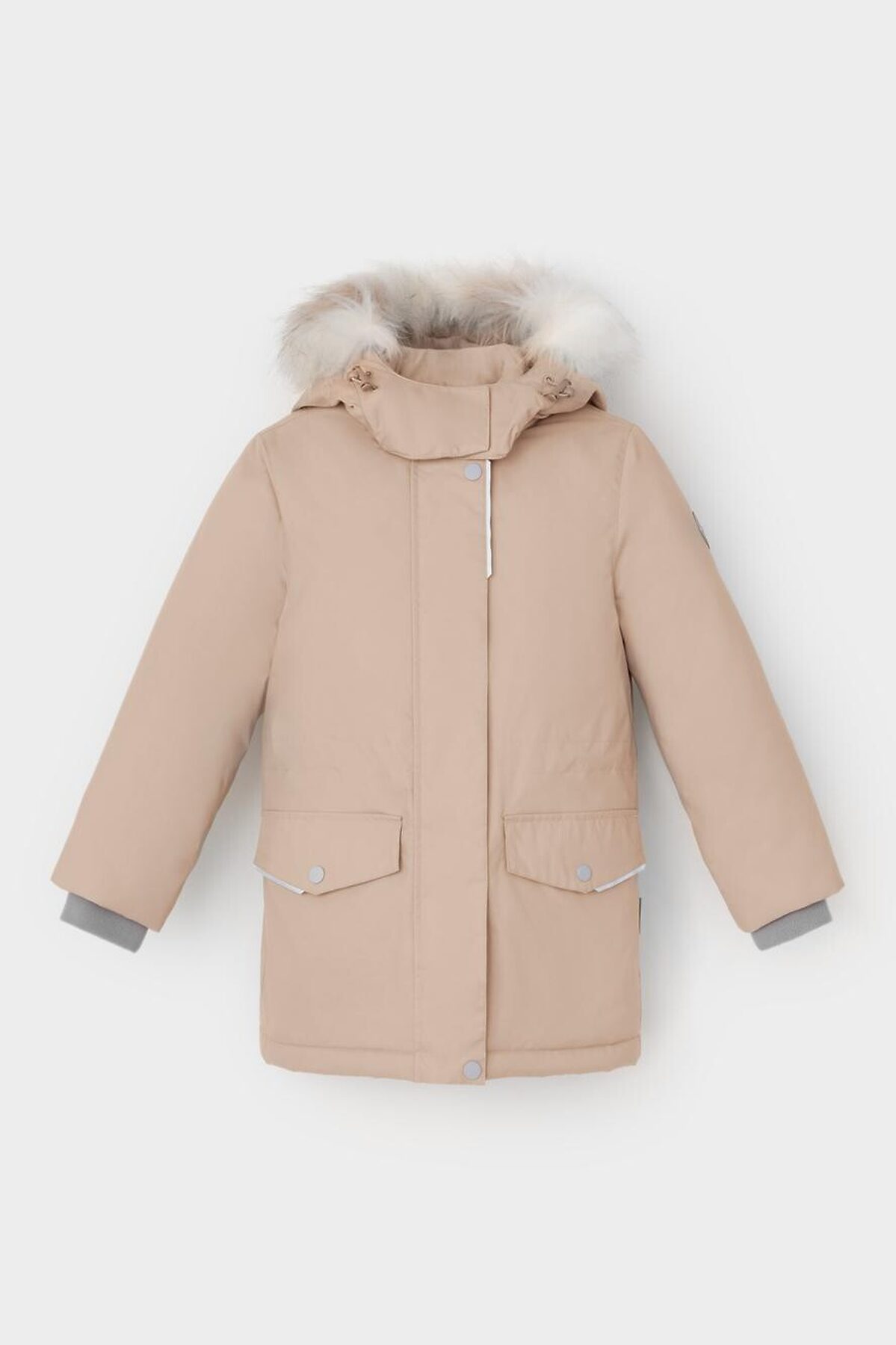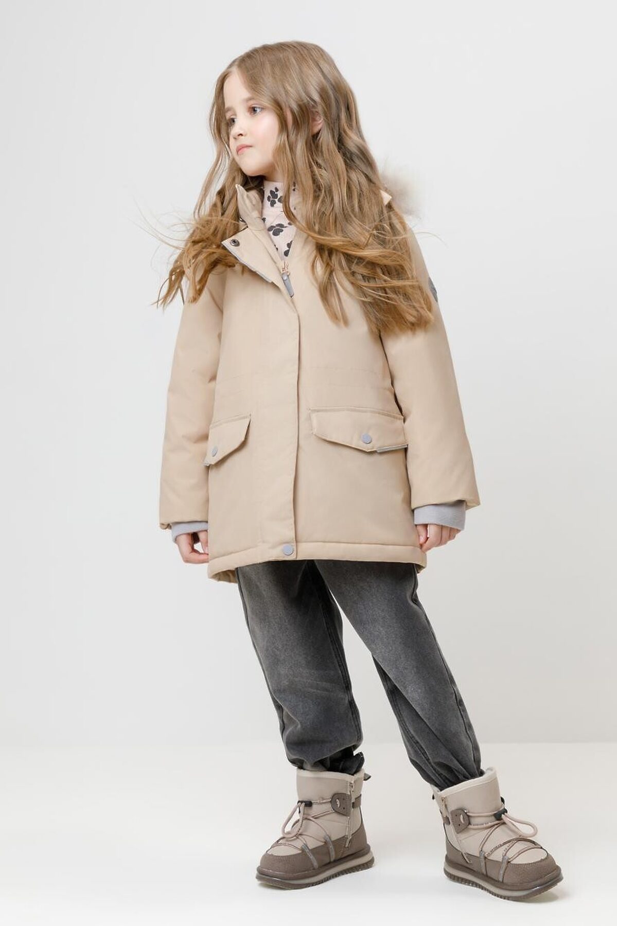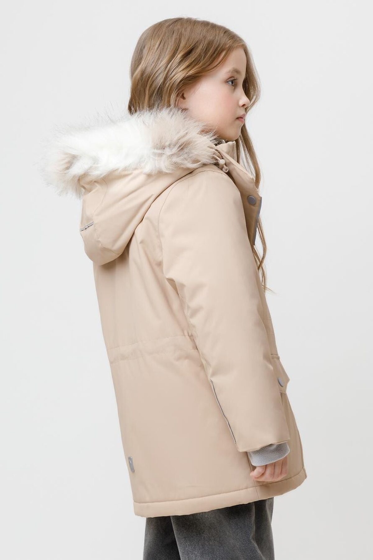 Зимняя куртка для девочки с утеплителем SEE®: 250 г/м2. Выполнена из мембранной ткани с дополнительной тефлоновой обработкой, которая предохраняет изделие от загрязнений и отталкивает влагу. Подклад выполнен из 100% полиэстера Tricot. Куртка застёгивается на молнию, предусмотрена защита подбородка. Съёмный капюшон на кнопках и липучках имеет отстёгивающийся искусственный мех на молнии и эластичную утяжку со стопперами. На рукавах мягкие внутренние манжеты. По бокам два кармана с клапанами на кнопках. Изнутри кулиска по талии для регулировки ширины куртки. Во всех изделиях верхнего ассортимента для безопасности ребёнка предусмотрены светоотражающие элементы.