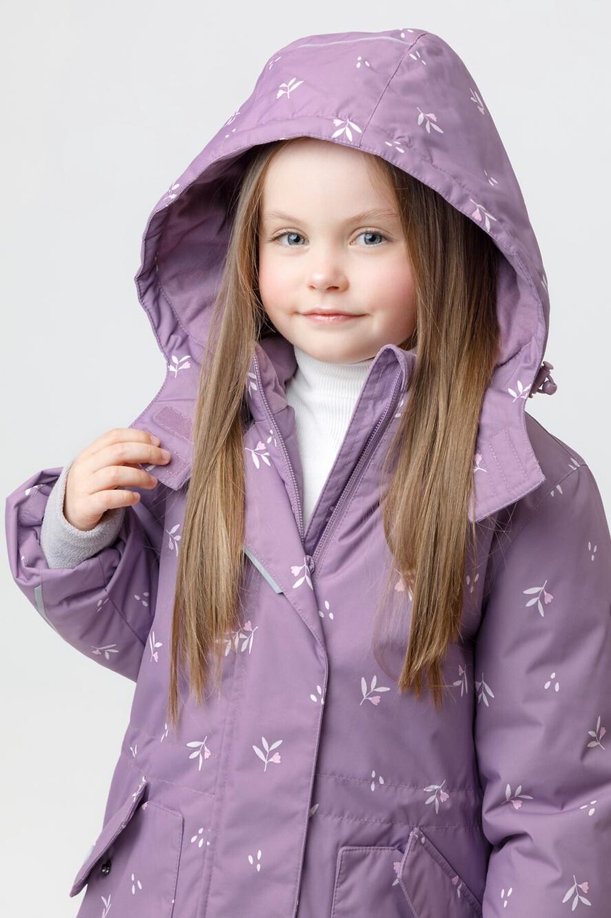 Зимняя куртка для девочки с утеплителем SEE®: 300 г/м2. Выполнена из мембранной ткани с дополнительной тефлоновой обработкой, которая предохраняет изделие от загрязнений и отталкивает влагу. Подклад выполнен из 100% полиэстера Tricot. Куртка застёгивается на молнию, предусмотрена защита подбородка. Съёмный капюшон на кнопках и липучках имеет эластичную утяжку со стопперами. На рукавах мягкие внутренние манжеты. По бокам два кармана с клапанами на кнопках. Изнутри кулиска по талии для регулировки ширины куртки. Во всех изделиях верхнего ассортимента для безопасности ребёнка предусмотрены светоотражающие элементы.