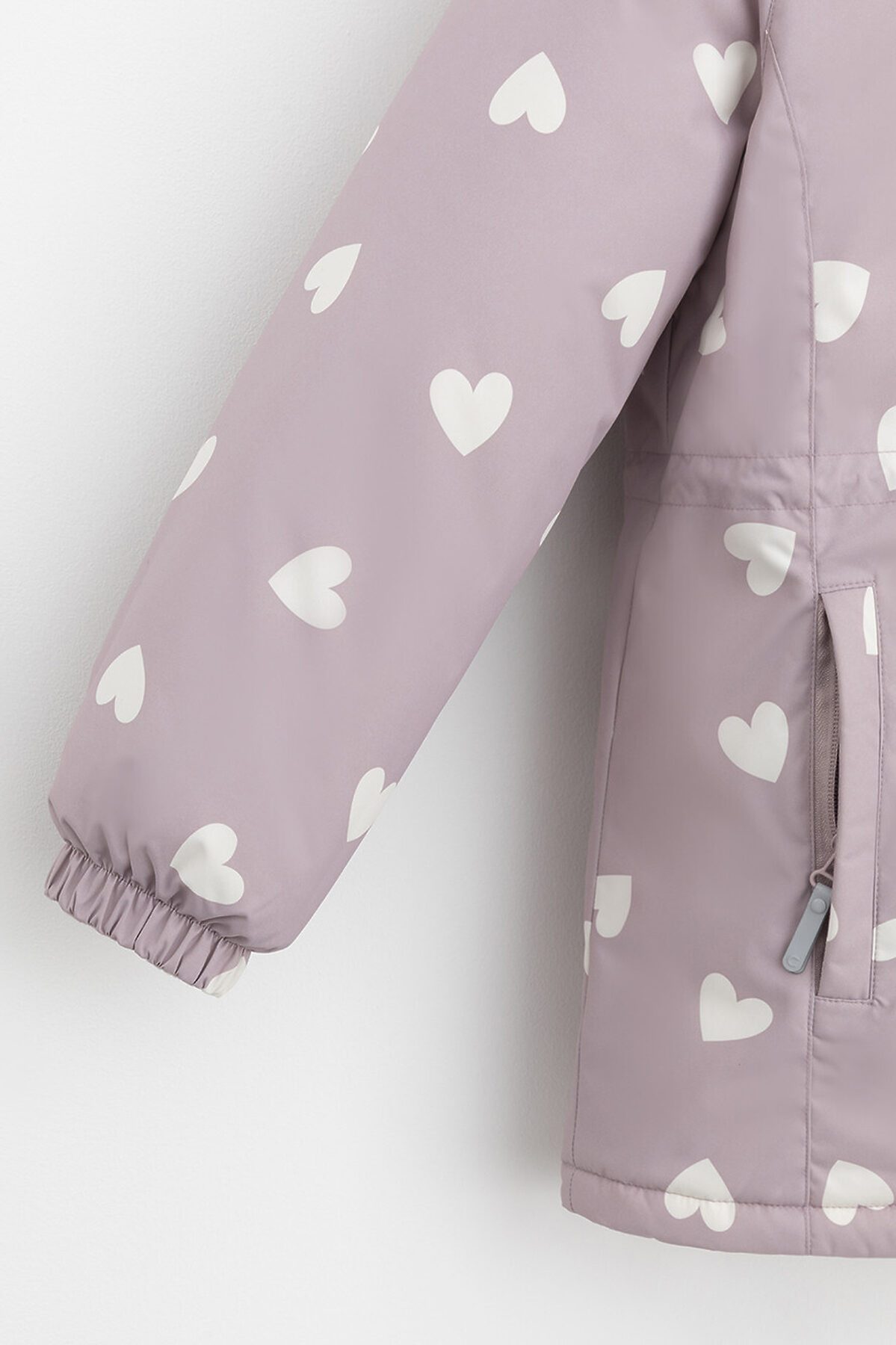 Зимняя куртка для девочки с утеплителем SEE®: 300 г/м2. Выполнена из мембранной ткани с дополнительной тефлоновой обработкой, которая предохраняет изделие от загрязнений и отталкивает влагу. Подклад выполнен из 100% полиэстера Tricot. Куртка застёгивается на молнию, предусмотрена защита подбородка. Съёмный капюшон на кнопках и липучках имеет отстёгивающийся искусственный мех. На рукавах эластичные манжеты на резинке. По бокам два кармана на молниях. По талии эластичная утяжка со стопперами для регулировки ширины куртки. Во всех изделиях верхнего ассортимента для безопасности ребёнка предусмотрены светоотражающие элементы.