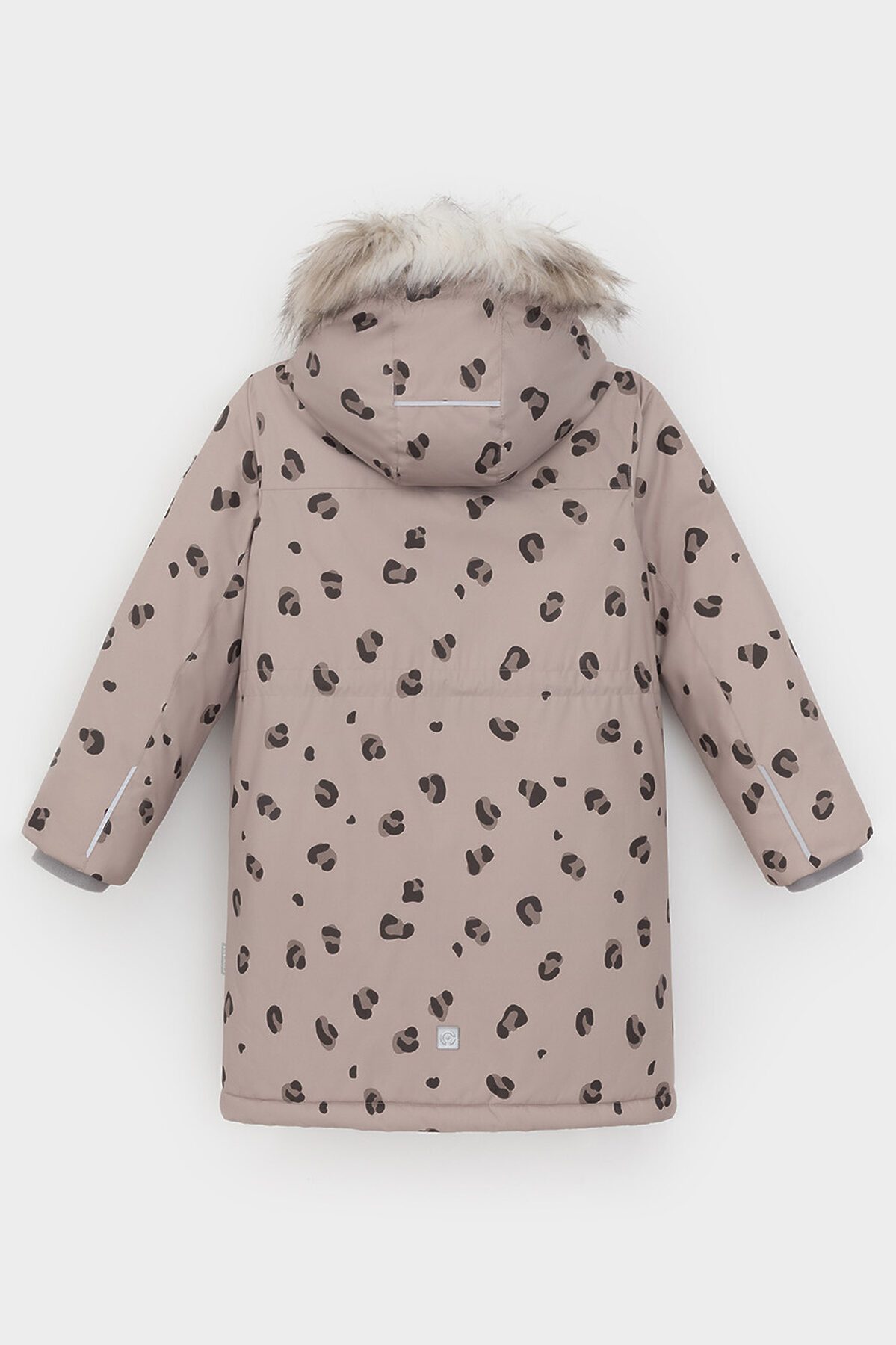 Зимнее пальто для девочки с утеплителем SEE®: 300 г/м2. Выполнено из мембранной ткани с дополнительной тефлоновой обработкой, которая предохраняет изделие от загрязнений и отталкивает влагу. Подклад выполнен из 100% полиэстера Tricot. Пальто застёгивается на молнию, предусмотрена защита подбородка. Съёмный капюшон на кнопках и липучках имеет отстёгивающийся искусственный мех. На рукавах мягкие манжеты. По бокам два кармана с клапанами, внутри карман на молнии. По талии эластичная утяжка со стопперами для регулировки ширины пальто. Во всех изделиях верхнего ассортимента для безопасности ребёнка предусмотрены светоотражающие элементы.