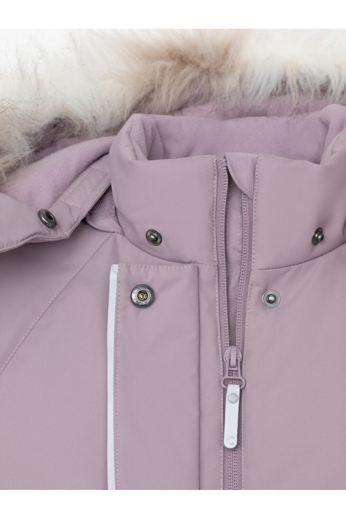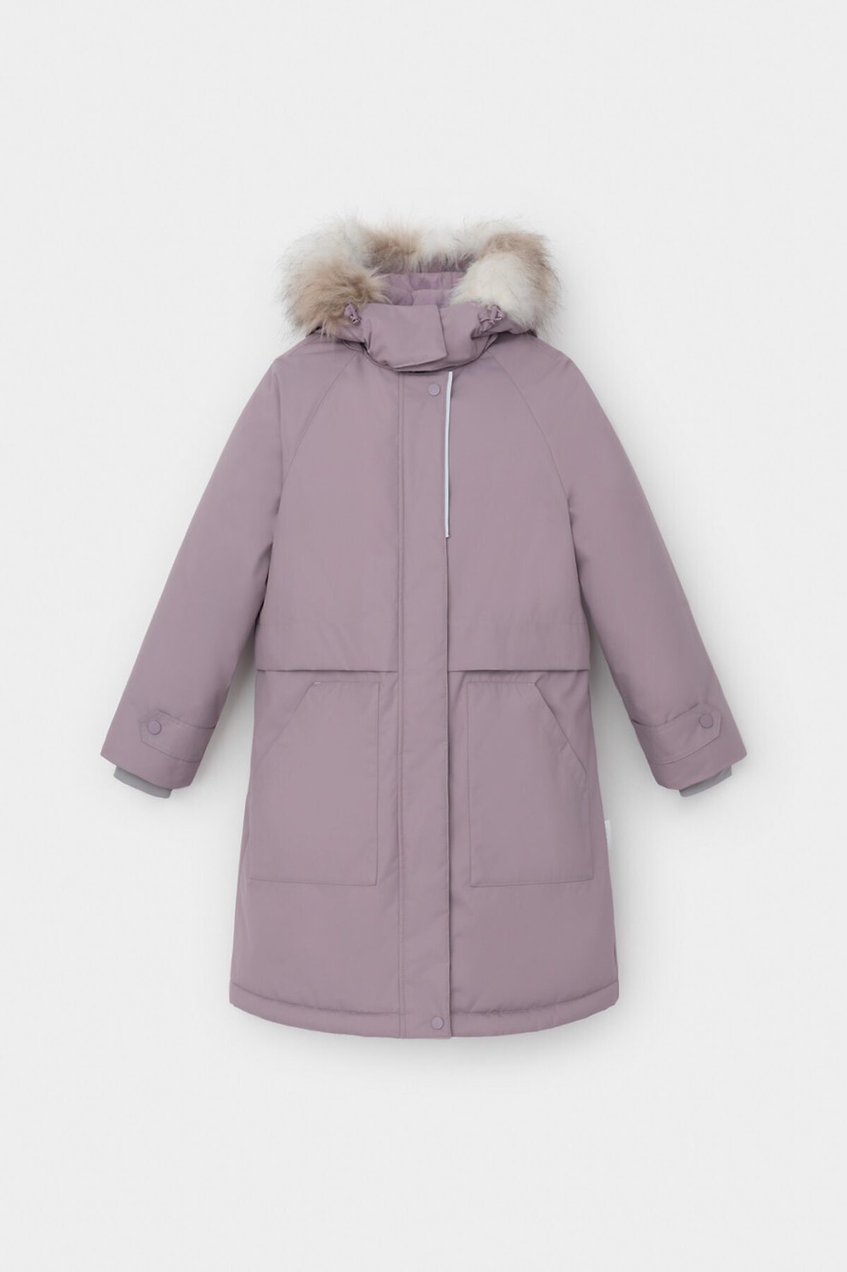Зимняя удлинённая куртка для девочки с утеплителем SEE®: 250 г/м2. Выполнена из мембранной ткани с дополнительной тефлоновой обработкой, которая предохраняет изделие от загрязнений и отталкивает влагу. Подклад выполнен из 100% полиэстера Tricot. Куртка застёгивается на молнию, предусмотрена защита подбородка. Съёмный капюшон на кнопках и липучках имеет отстёгивающийся искусственный мех. На рукавах мягкие манжеты. По бокам два кармана с клапанами, внутри карман на молнии. По талии эластичная утяжка со стопперами для регулировки ширины пальто. Во всех изделиях верхнего ассортимента для безопасности ребёнка предусмотрены светоотражающие элементы.