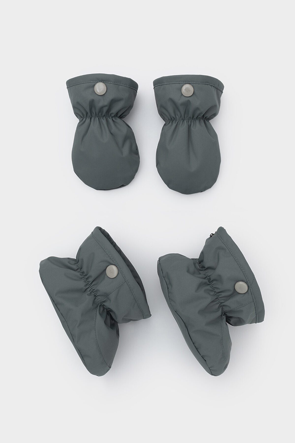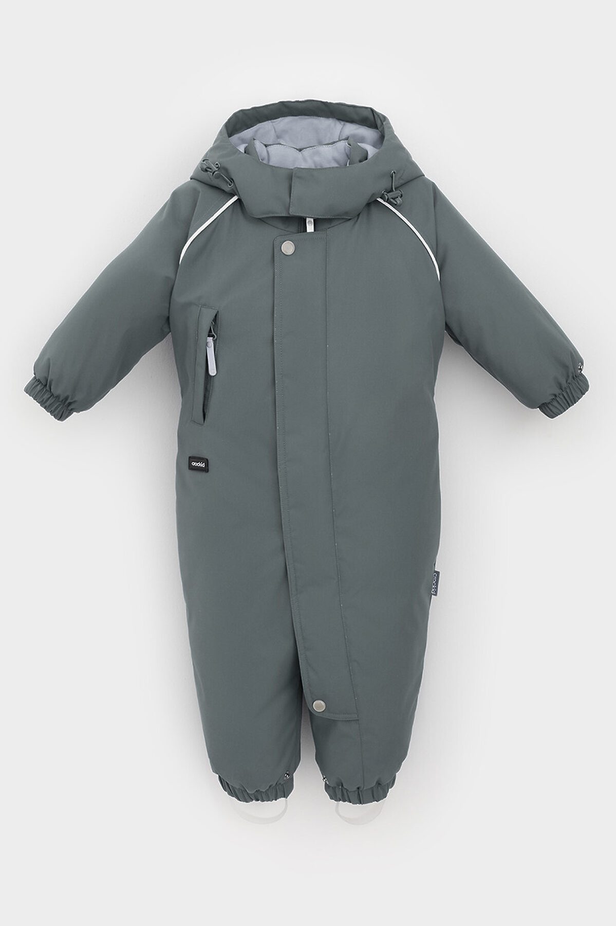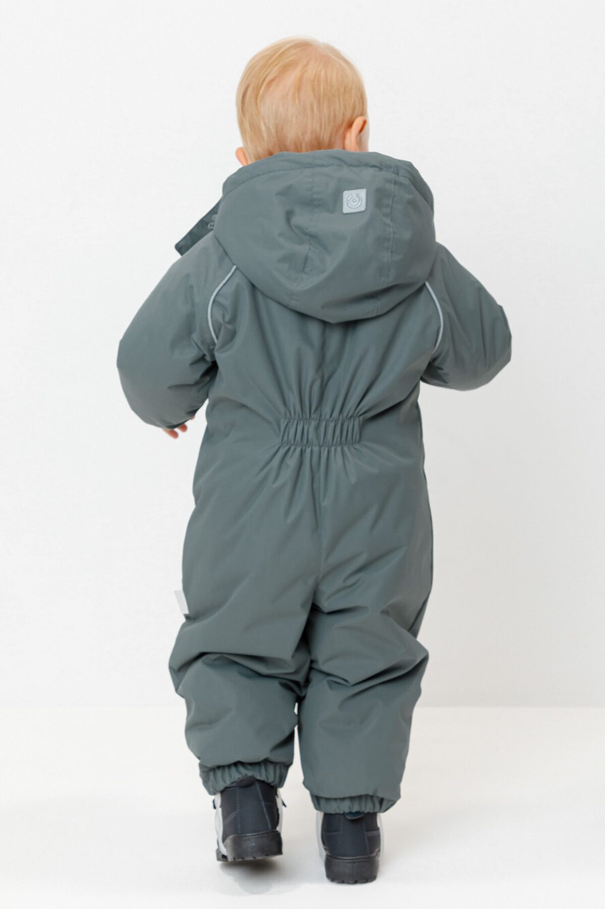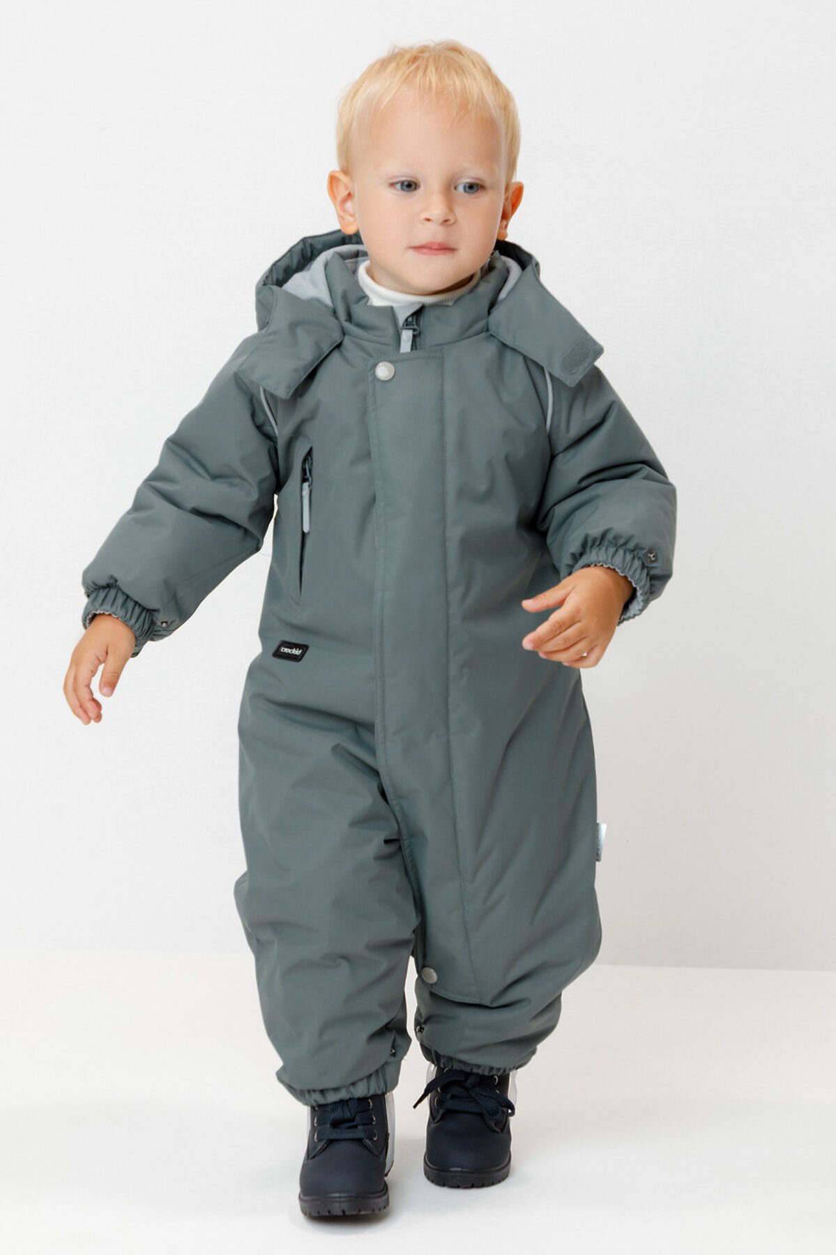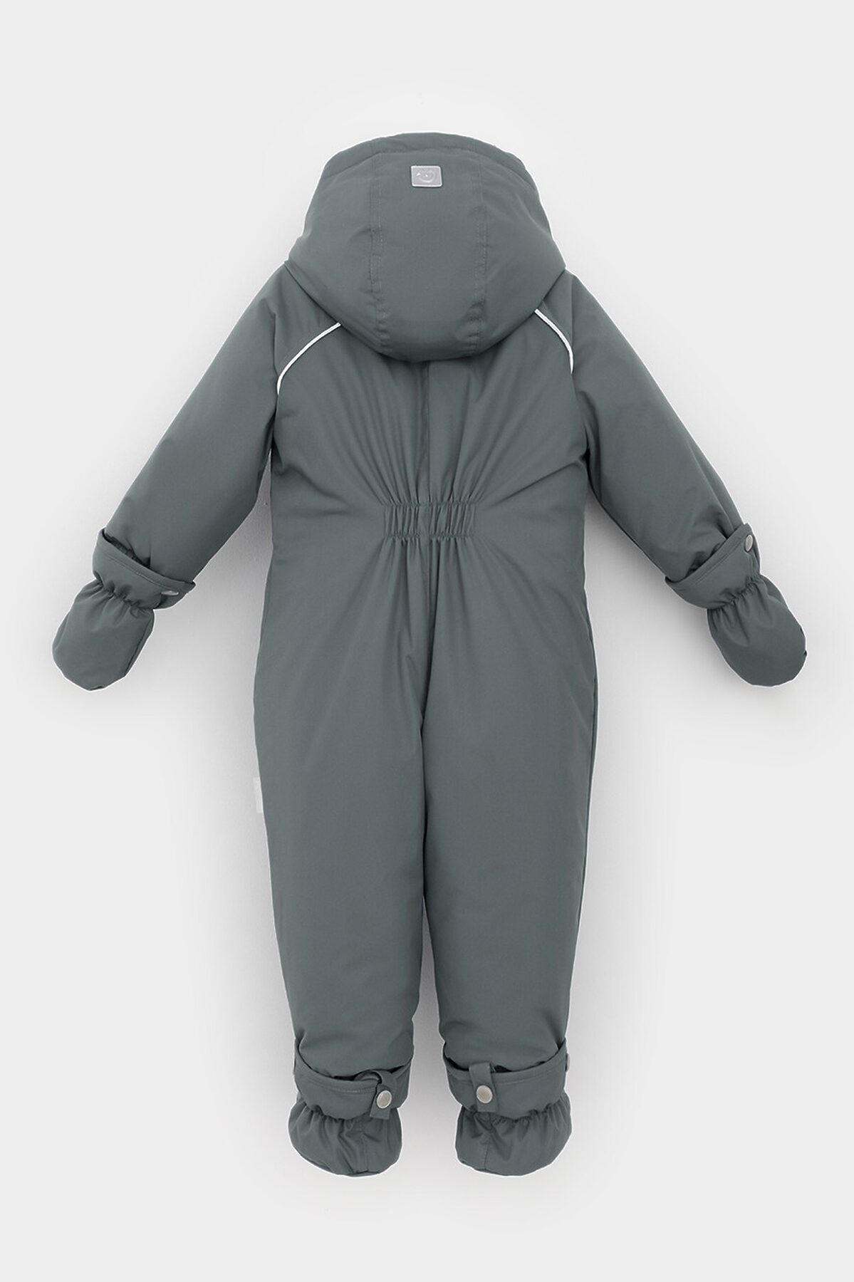 Зимний комбинезон ясельный с утеплителем SEE®: 250 г/м2. Выполнен из мембранной ткани с дополнительной тефлоновой обработкой, которая предохраняет изделие от загрязнений и отталкивает влагу. Подклад выполнен из 100% хлопка. Комбинезон застёгивается на молнию и внешнюю планку на липучках, предусмотрена защита подбородка. Несъёмный капюшон имеет эластичную утяжку со стопперами. Резинка по спинке для лучшего прилегания. На груди карман на молнии. По рукавам и низу изделия эластичные манжеты, на ножках отстёгивающиеся силиконовые штрипки. В размерах 74-80 и 80-86 в комплекте идут рукавицы и пинетки. Во всех изделиях верхнего ассортимента для безопасности ребёнка предусмотрены светоотражающие элементы.