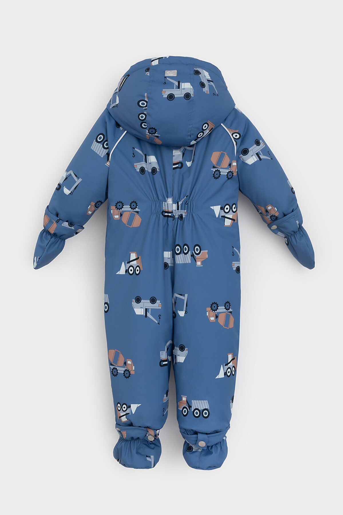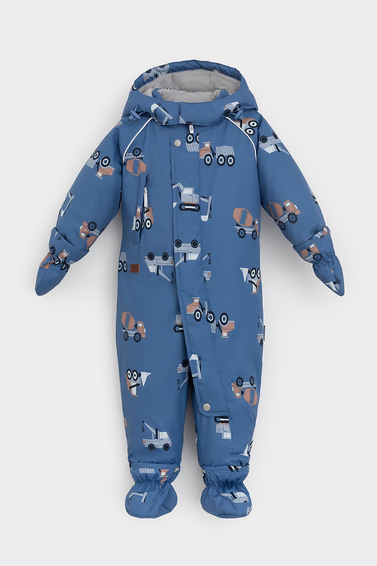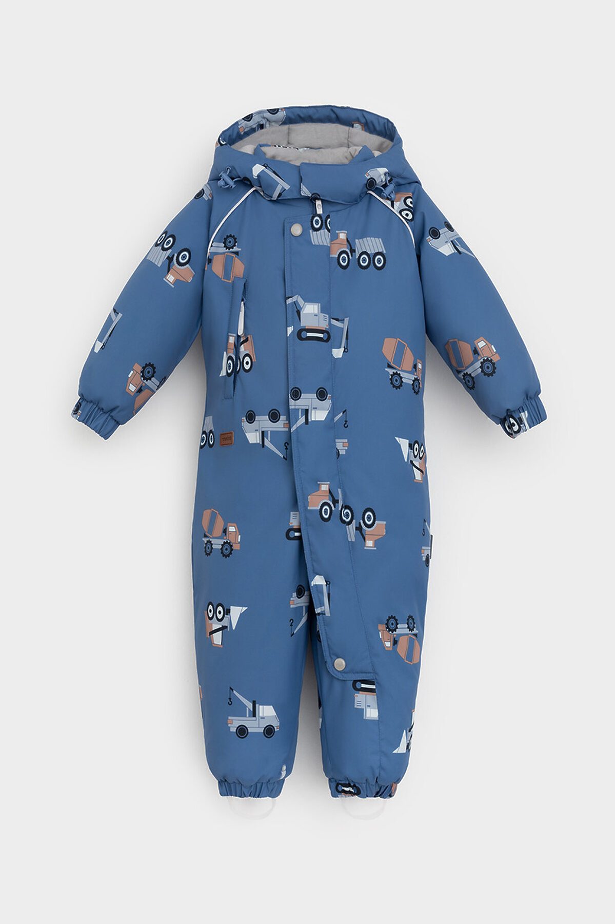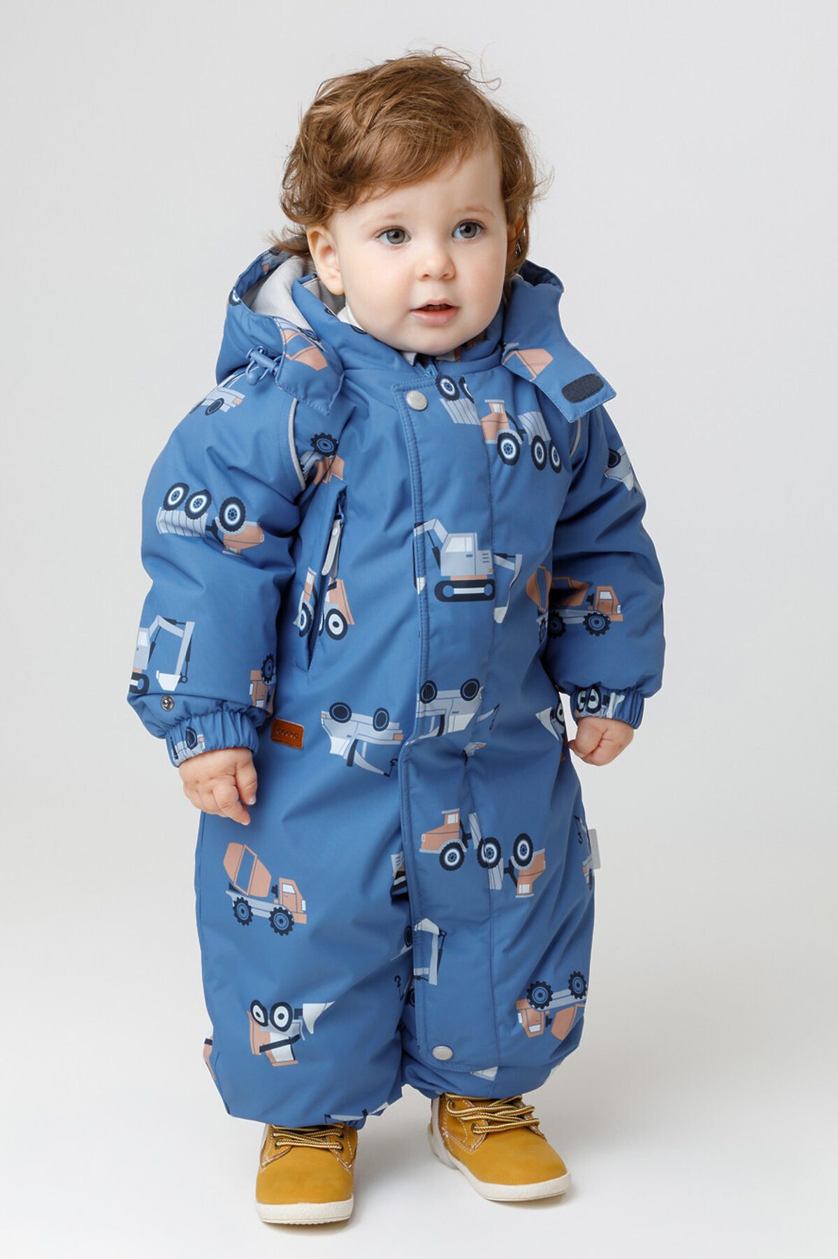 Зимний комбинезон ясельный с утеплителем SEE®: 250 г/м2. Выполнен из мембранной ткани с дополнительной тефлоновой обработкой, которая предохраняет изделие от загрязнений и отталкивает влагу. Подклад выполнен из 100% хлопка. Комбинезон застёгивается на молнию и внешнюю планку на липучках, предусмотрена защита подбородка. Несъёмный капюшон имеет эластичную утяжку со стопперами. Резинка по спинке для лучшего прилегания. На груди карман на молнии. По рукавам и низу изделия эластичные манжеты, на ножках отстёгивающиеся силиконовые штрипки. В размерах 74-80 и 80-86 в комплекте идут рукавицы и пинетки. Во всех изделиях верхнего ассортимента для безопасности ребёнка предусмотрены светоотражающие элементы.