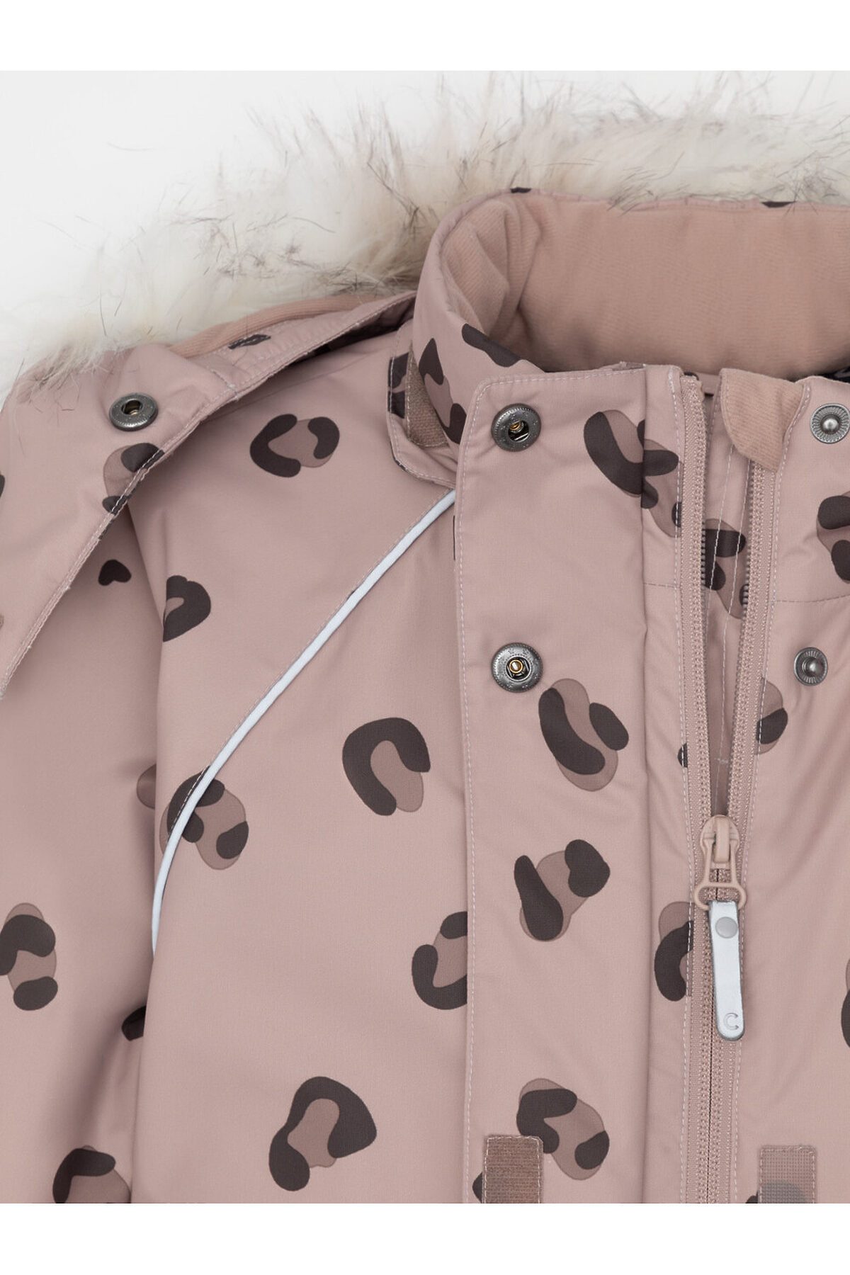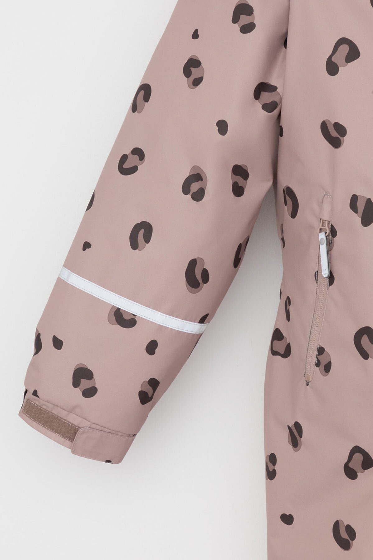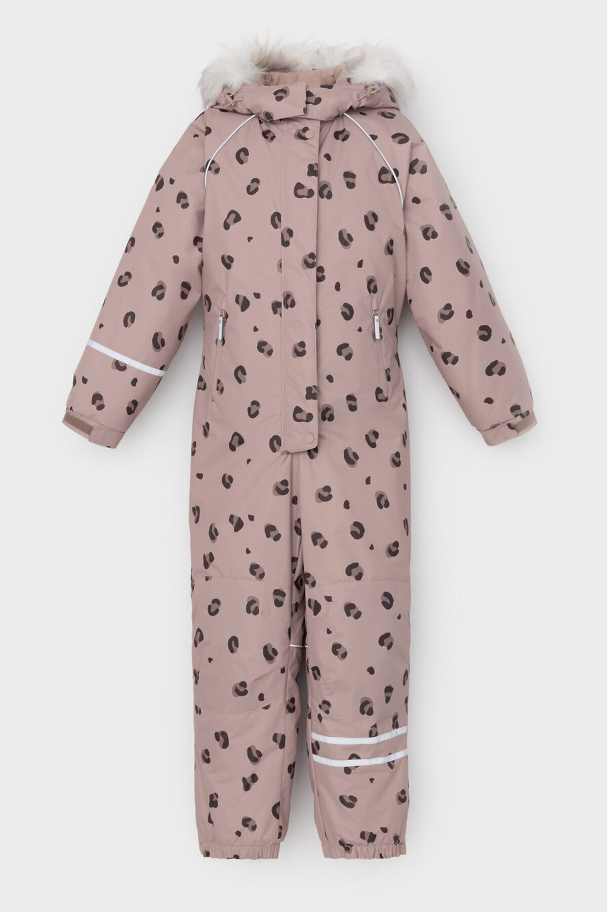 Зимний комбинезон для девочки с утеплителем Fellex®: 250 г/м2 . Выполнен из мембранной ткани с дополнительной тефлоновой обработкой, которая предохраняет изделие от загрязнений и отталкивает влагу. Подклад выполнен из 100% полиэстера Tricot. Комбинезон застёгивается на молнию и внешнюю планку на липучках и кнопках, предусмотрена защита подбородка. Съёмный капюшон имеет эластичную утяжку со стопперами и отстёгивающийся искусственный мех. Резинка по спинке обеспечивает лучшее прилегание. По бокам два кармана на молнии. Эластичные манжеты на рукавах регулируются по ширине с помощью липучки, по низу изделия - с помощью кнопки. Внутренняя противоснежная юбка защищает обувь от попадания снега и удерживает комбинезон в закреплённом положении, предусмотрены отстёгивающиеся штрипки. Во всех изделиях верхнего ассортимента для безопасности ребёнка предусмотрены светоотражающие элементы.