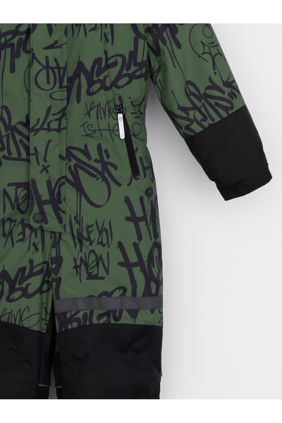 Зимний комбинезон для мальчика с утеплителем Fellex®: 250 г/м2 . Выполнен из мембранной ткани с дополнительной тефлоновой обработкой, которая предохраняет изделие от загрязнений и отталкивает влагу. Подклад выполнен из 100% полиэстера Tricot. Комбинезон застёгивается на молнию и внешнюю планку на липучках и кнопках, предусмотрена защита подбородка. Съёмный капюшон имеет эластичную утяжку со стопперами. Резинка по спинке обеспечивает лучшее прилегание. По бокам два кармана на молнии. Эластичные манжеты на рукавах регулируются по ширине с помощью липучки, по низу изделия - с помощью кнопки. Внутренняя противоснежная юбка защищает обувь от попадания снега и удерживает комбинезон в закреплённом положении, предусмотрены отстёгивающиеся штрипки. Во всех изделиях верхнего ассортимента для безопасности ребёнка предусмотрены светоотражающие элементы.